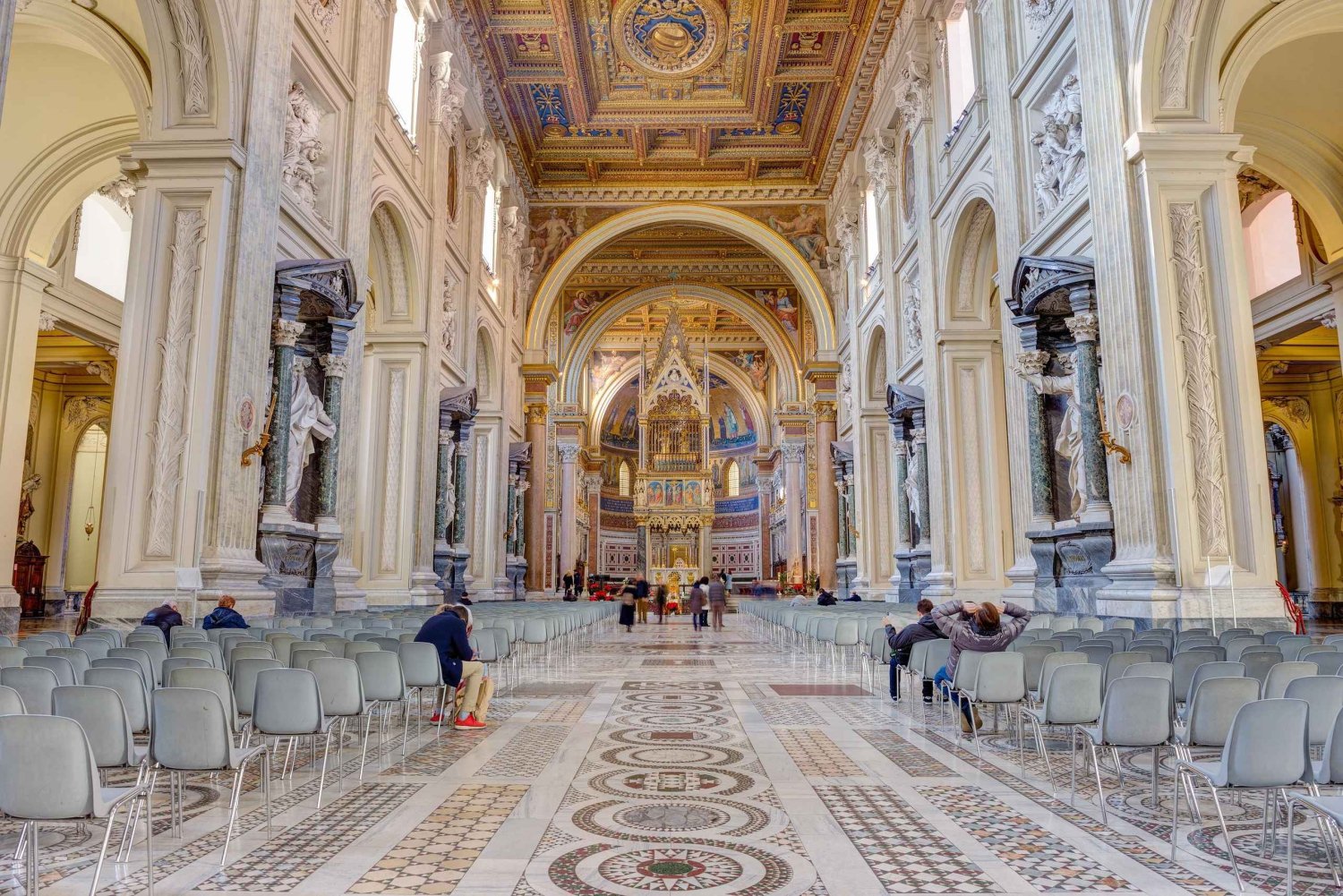 Denne specielle billet giver dig nem adgang til Lateran og mulighed for at besøge basilikaen og klosteret på ca. 1 time med en digital audioguide. Du starter din tur med at besøge Basilica di San Giovanni in Laterano i Rom, der er kendt som 'alle kirkers moder' og er den ældste og højeste af de fire store pavelige basilikaer. Det er også Roms katedral og den første offentlige kirke, der blev bygget i byen. Derefter kan du besøge klostergangen, et mesterværk inden for middelalderlig romersk kunst, der er særlig kendt for sin cosmateske stil. Den blev bygget i det 13. århundrede af familien Vassalletto og er en af de største og smukkeste klostergange i Rom. Den er kendetegnet ved intrikate mosaikker, snoede marmorsøjler og en fredfyldt atmosfære, der gør den til et fredeligt sted for refleksion.Includes