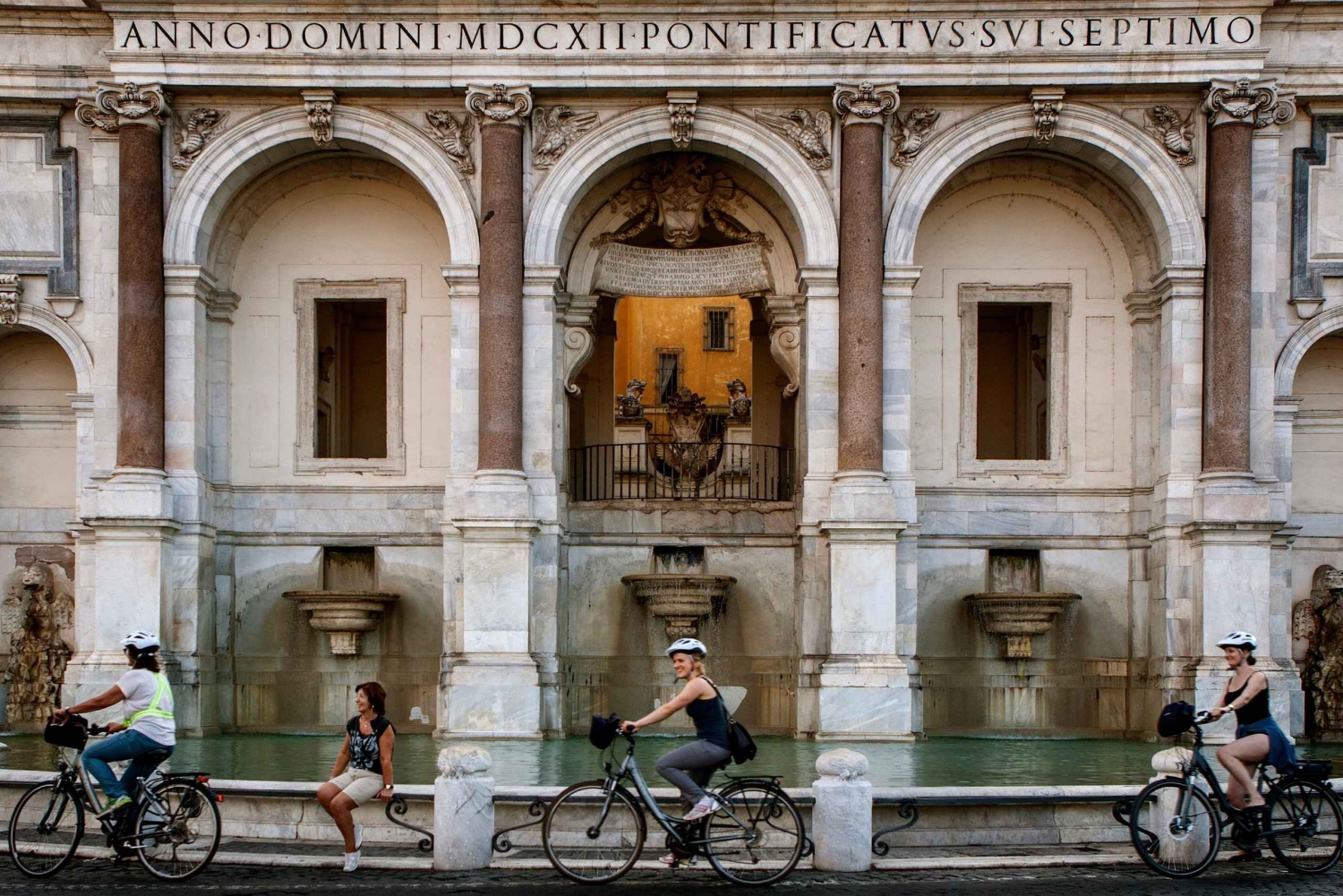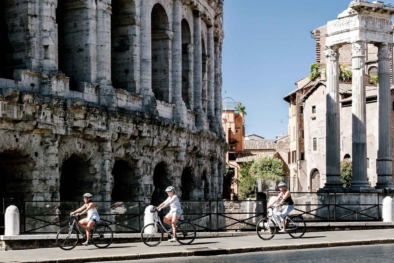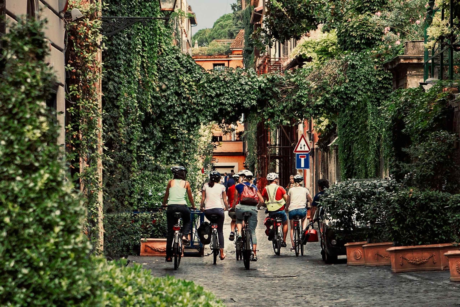 Tag med på en cykeltur, der er designet til Rom-entusiaster, som vil ud over den evige stads mest kendte højdepunkter. Berig din oplevelse og hukommelse af Rom med charmen ved sjælden skønhed, der er gemt væk fra det almindelige syn. Du starter denne tur med en tur over Caelian-bakken, som fører dig ned til Circus Maximus med en majestætisk udsigt over Palatinen. Derefter fortsætter du til Aventinerhøjen og besøger appelsintræernes have, før du krydser Tiberen og kører gennem nogle af Trasteveres mest farverige gyder. Derfra cykler du op ad en snoet sti på Janiculum-højen for at få en utrolig smuk udsigt over Roms vidtstrakte centrum, hvorfra du kan beundre de mange kupler, tårne og berømte vartegn på afstand. Derefter cykler du ned til Peterskirken og Castel Sant'Angelo, inden du krydser floden igen. På den sidste del af turen kører du gennem det livlige kvarter omkring Campo de' Fiori og den jødiske ghetto, før du ser det lidet kendte Marcellus-teater. Som prikken over i'et får du i slutningen af turen en panoramaudsigt over Forum Romanum og Colosseum.Includes