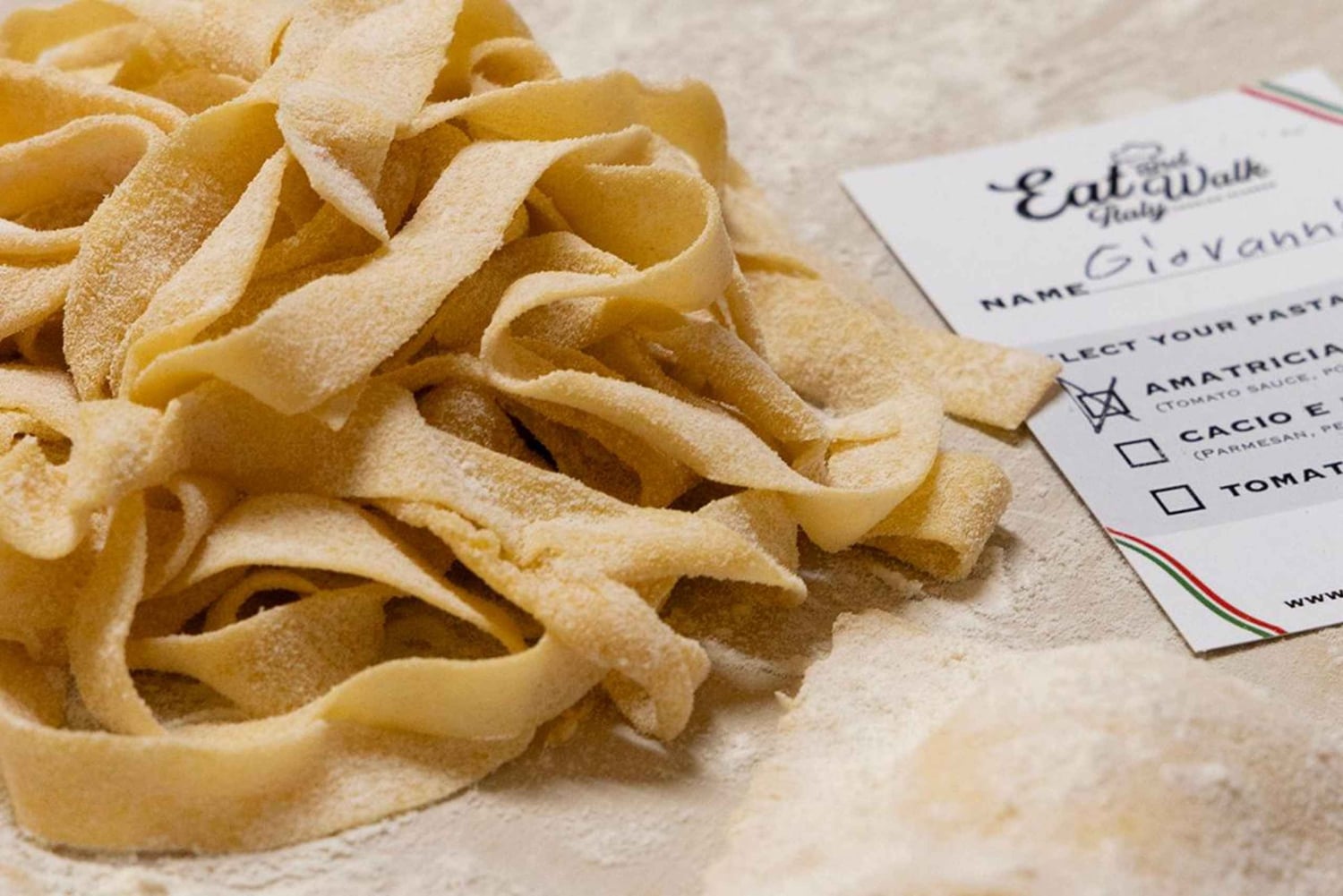 Fettuccine med sauce efter eget valg (tomat og basilikum, cacio e pepe eller amatriciana) Ravioli med smør og salvie Tiramisù Et glas vin eller en alkoholfri drik Et glas Limoncello eller kaffe VandEasy cancellation