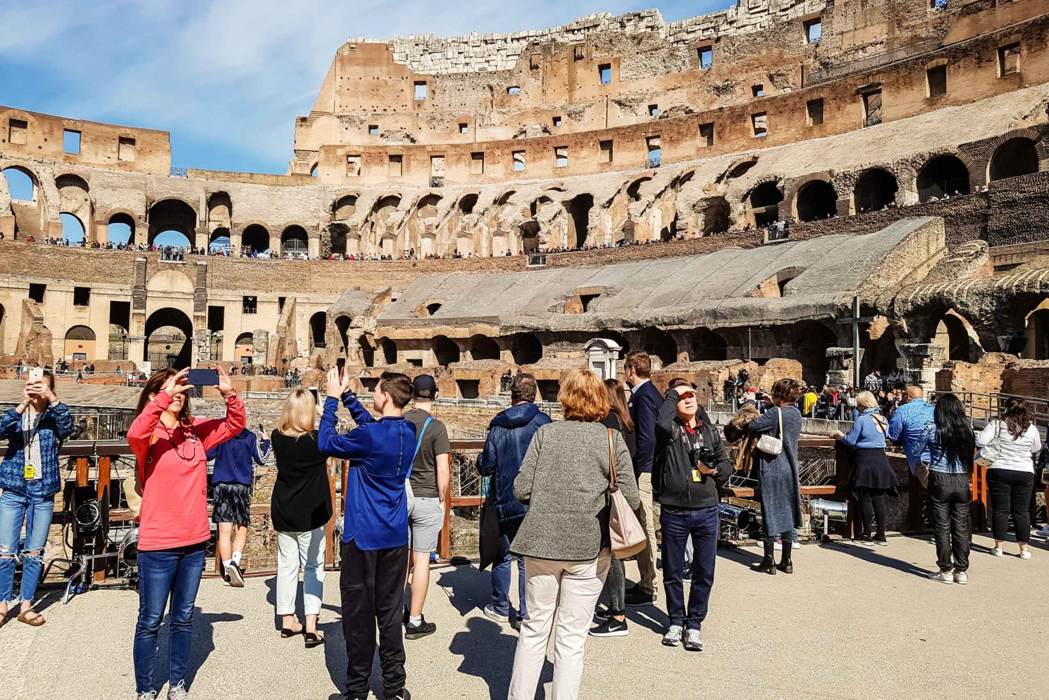 Træd ind i verdens mest berømte amfiteater, Colosseum. Se en delvis rekonstrueret del af arenagulvet (hvis du har valgt muligheden med arenagulvet), og forestil dig, hvordan bygningen så ud under det romerske imperium. Følg din guide på en spændende rejse gennem monumentets historie, og kom tæt på senatorernes sæder og den faldlem, hvor vilde dyr blev sluppet løs til blodtørstig underholdning. Fra kanten af arenaens gulv kan du kigge ned i det underjordiske område for at se kammeret, der holdt disse vilde dyr, og de stier, som gladiatorerne tog. Gå ind gennem gladiatorporten, stå på arenaens gulv, og se Konstantinbuen. Lær, hvordan bygningen blev bragt til live. Hør om de kampe, der fandt sted der over tid. Genoplev gladiatorernes oplevelse fra et eksklusivt perspektiv. Derefter kan du tage til Forum Romanum for at opdage centrummet for det politiske og sociale liv i det antikke Rom.Includes