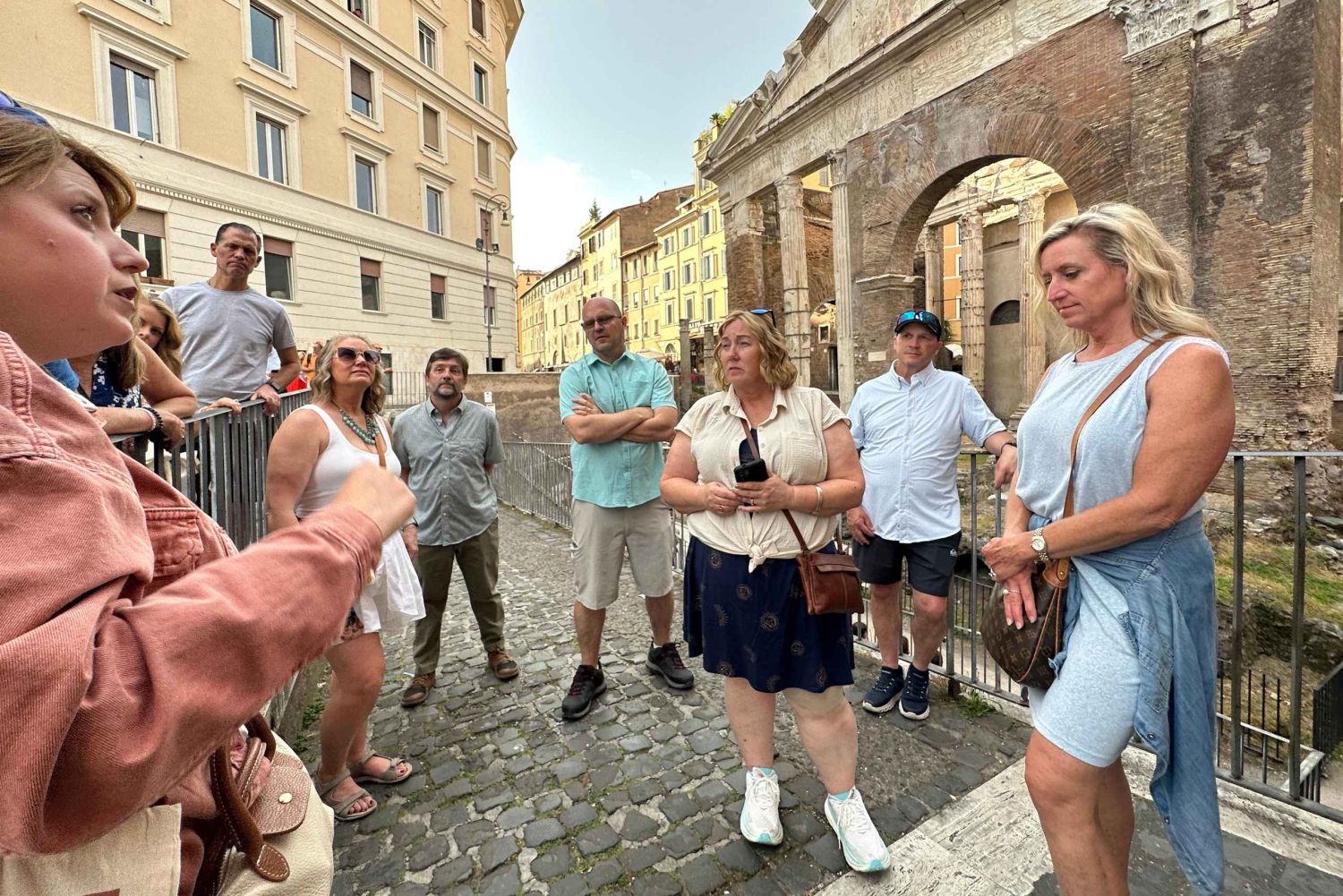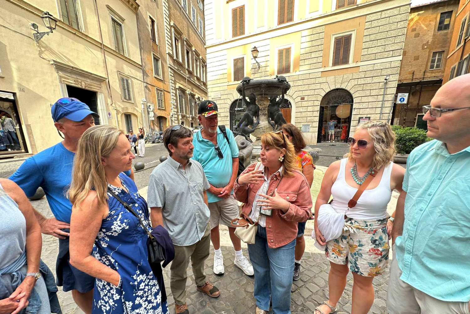 Nyd en intim mad- og kulturtur i Rom om aftenen, og se de største seværdigheder i 'den evige stad', mens du nyder hjemmelavet pasta, kager og mere. Mød din guide på Piazza Mattei i den jødiske ghetto, og slentre afsted for at opdage gamle pladser, der summer af restauranter og markedsliv. Se barokke springvand og statuer, der slår poser, før du imponerer arkitektur. Stop ved 7 forskellige smagssteder undervejs, herunder restauranter, delikatesseforretninger og andre bemærkelsesværdige steder. Gå til Piazza Navona, bygget på stedet for Domitian Stadium og stedet for et bymarked i slutningen af det 15. århundrede. Se noget af Roms fineste barokarkitektur og Berninis Fontana dei Quattro Fiumi (fontænen med de fire floder). Besøg stedet for et middelaldermarked ved Campo de' Fiori og beundre den lokale atmosfære. Lær om Julius Cæsars død ved Pompey Theatre, og gå forbi nogle af de mest betydningsfulde rester af det antikke Rom, herunder Marcellus Theatre, Apollo-templet og Portico of Octavia. Udsøgt vin og lokale retter er i centrum hele vejen igennem, med smagninger på steder, der er elsket af lokalbefolkningen. Oplev steder, guidebøgerne ikke nævner, og lyt til historier om lokal viden. Mød mennesker, der sætter en stor ære i kvaliteten af deres produkter, uanset om det er pizza, pasta eller friske grøntsager tilberedt, som de har været i generationer.Includes