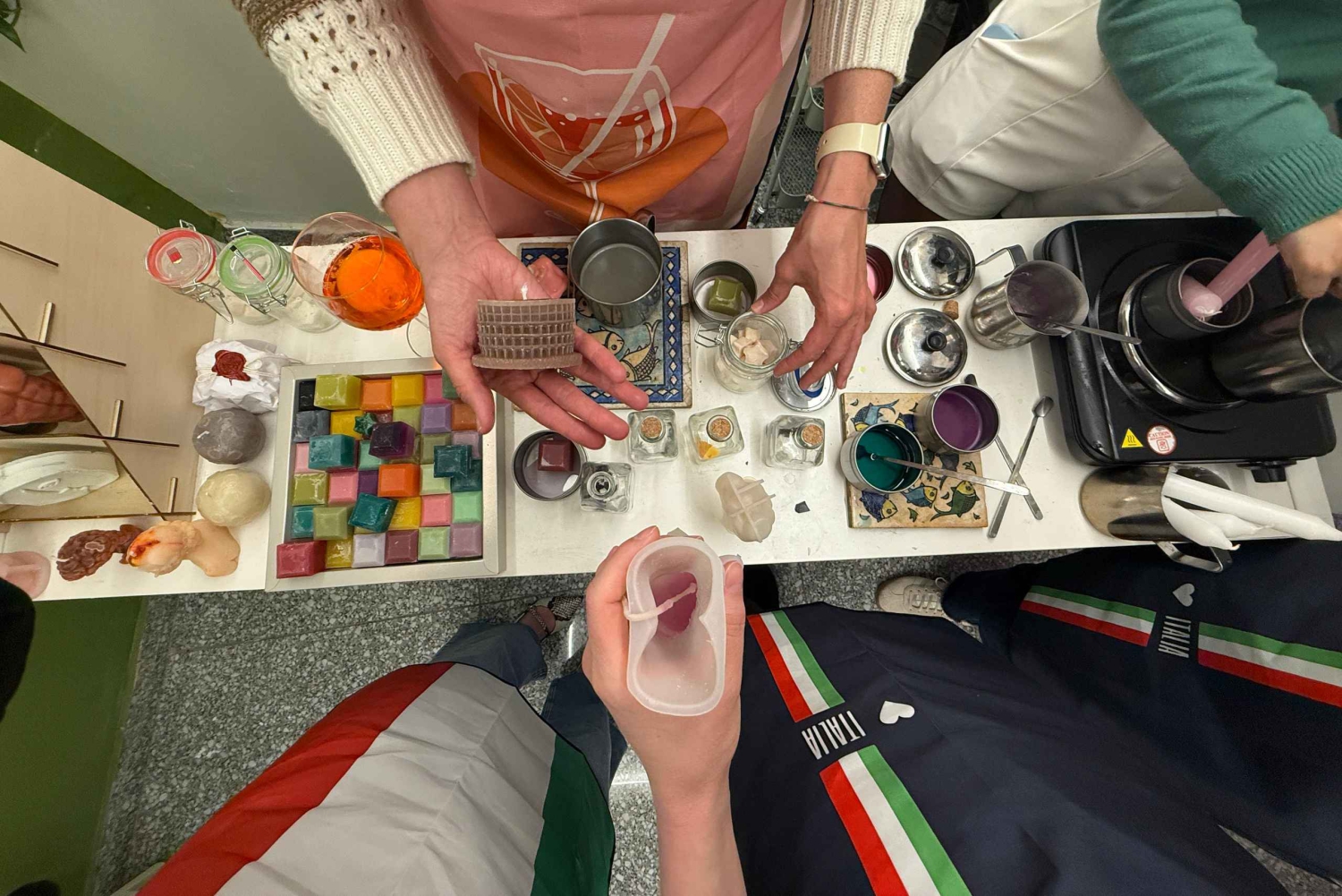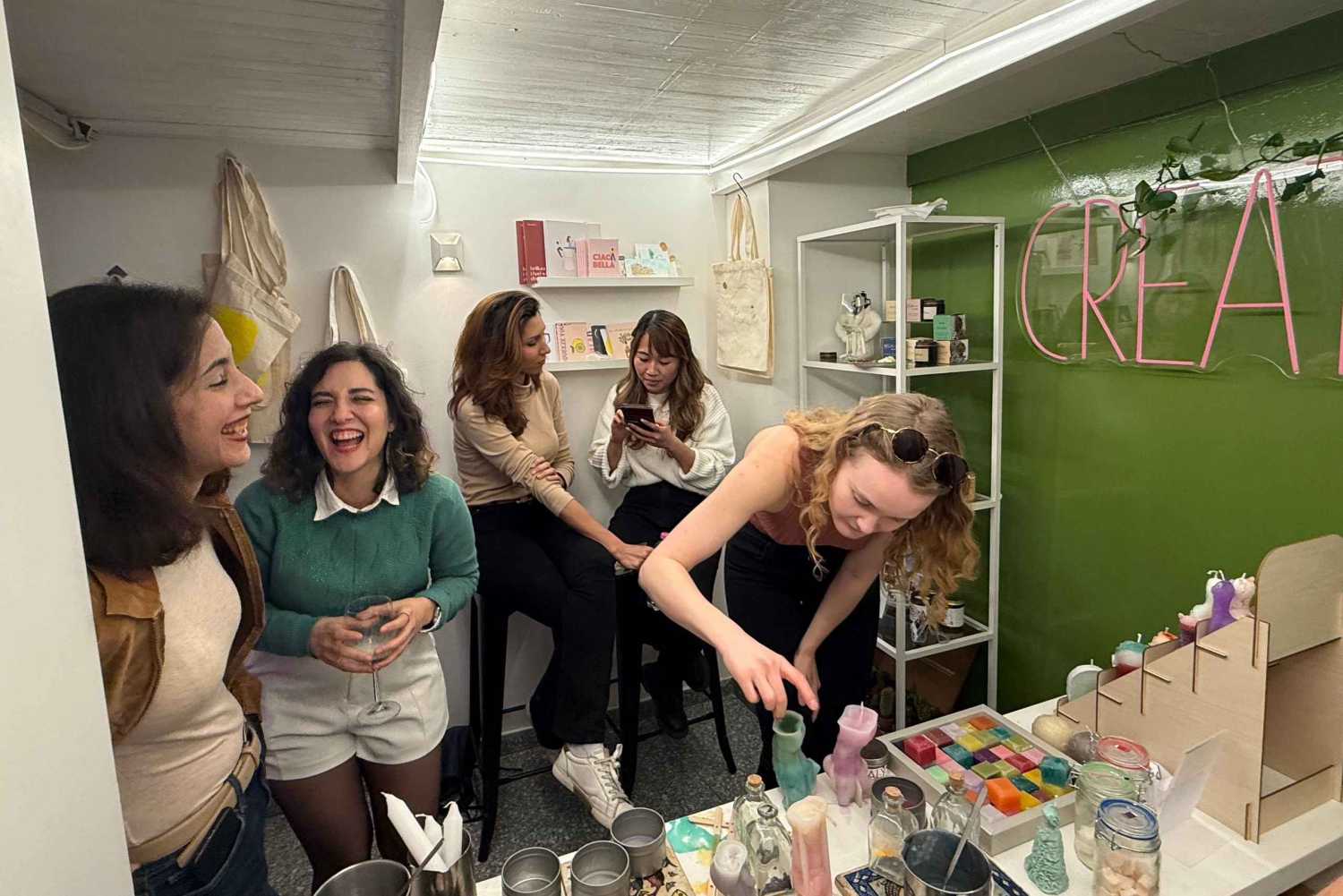 ️Kreativ lysestøbning i hjertet af Rom – en praktisk oplevelse for alle aldre Tag en pause fra sightseeing og træd ind i et lyst og indbydende værksted kun få minutter fra Colosseum. I denne sjove og afslappende oplevelse skaber du din helt egen romerske souvenir – et lys med din egen duft, som du kan tage med hjem og værdsætte. Uanset om du rejser med børn, en partner eller alene, er denne aktivitet designet til at være nem, sjov og inspirerende. Du vil blive guidet af lokale kunsthåndværkere, der elsker at dele deres passion for dufte, farver og håndværk. Vælg din duft, vælg en farvepalet, og hæld dit lys ved hjælp af sikre, enkle teknikker, der er velegnede for alle aldre. Børn vil elske den praktiske kreativitet, mens voksne kan slappe af med en forfriskende italiensk drink i en charmerende, fredelig omgivelse. Mens dit lys hærder, kan du nyde den hyggelige atmosfære, snakke med dine værter eller bare slappe af og nyde en langsommere, mere sanselig side af Rom. Efter ca. 30 minutter er dit færdige lys klar til at tage med hjem – pakket og klar til at bringe lidt romersk skønhed med dig hjem. Dette er mere end bare en workshop – det er et mindeværdigt øjeblik, der fanger Roms ånd gennem kreativitet, dufte og fælles glæde.Includes