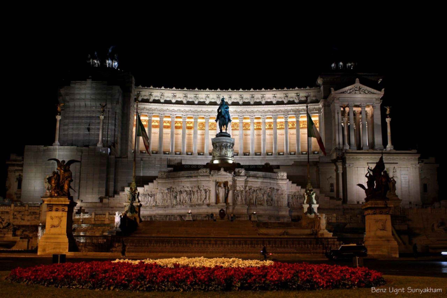 Oplev den evige stad Rom om natten på en privat tur med en lokal guide. Se byens mest ikoniske vartegn, herunder Trevi-fontænen, Den Spanske Trappe og Pantheon, og nyd panoramaudsigten over Rom fra Janiculum-højen. Efter afhentning fra dit overnatningssted kan du begynde din rejse gennem Roms højdepunkter i nattens romantiske omgivelser. Lad din personlige chauffør/guide vise dig den evige stad og beundre dens oplyste vartegn. Se den ikoniske Trevi-fontæne, Den Spanske Trappe og Piazza della Repubblica, en dejlig plads på toppen af Viminal-højen, hvor det verdensberømte Pantheon ligger. Fortsæt til Via Nazionale, en af hovedgaderne i Rom, og følg den for at udforske mere af den gamle bydel. Gå derefter til Peterspladsen og se den berømte 'bryllupskage'. Dette sejrsmonument til ære for Vittorio Emanuele II har fået sit navn på grund af sit uberørte, snehvide marmor, og det er bestemt et syn, man skal nyde om natten. Mens du er i Roms antikke område, kan du se det antikke Forum, Circus Maximus og Palatinerhøjen. Gå langs Via Giulia, en af de vigtigste gader i renæssancens Rom, og kom ind på den smukt oplyste Piazza Farnese, hvor du kan høre de søde lyde fra lokale gademusikanter, der spiller til langt ud på natten. Efter denne kulturelle affære bliver du ført over Tiberen til Peterskirken og pladsen, hvor du kan beundre det varme gule skær, som denne normalt imponerende bygning kaster ud over Tiberens vand. Til sidst, som den store finale på din magiske aften med vidundere, bliver du kørt til Janiculum-højen, Roms højeste udsigtspunkt, hvor du kan beundre den ærefrygtindgydende panoramaudsigt over den evige stad i al dens funklende pragt. Efter en aften, hvor du har udforsket det bedste, Rom har at byde på, vender du tilbage til dit overnatningssted.Includes