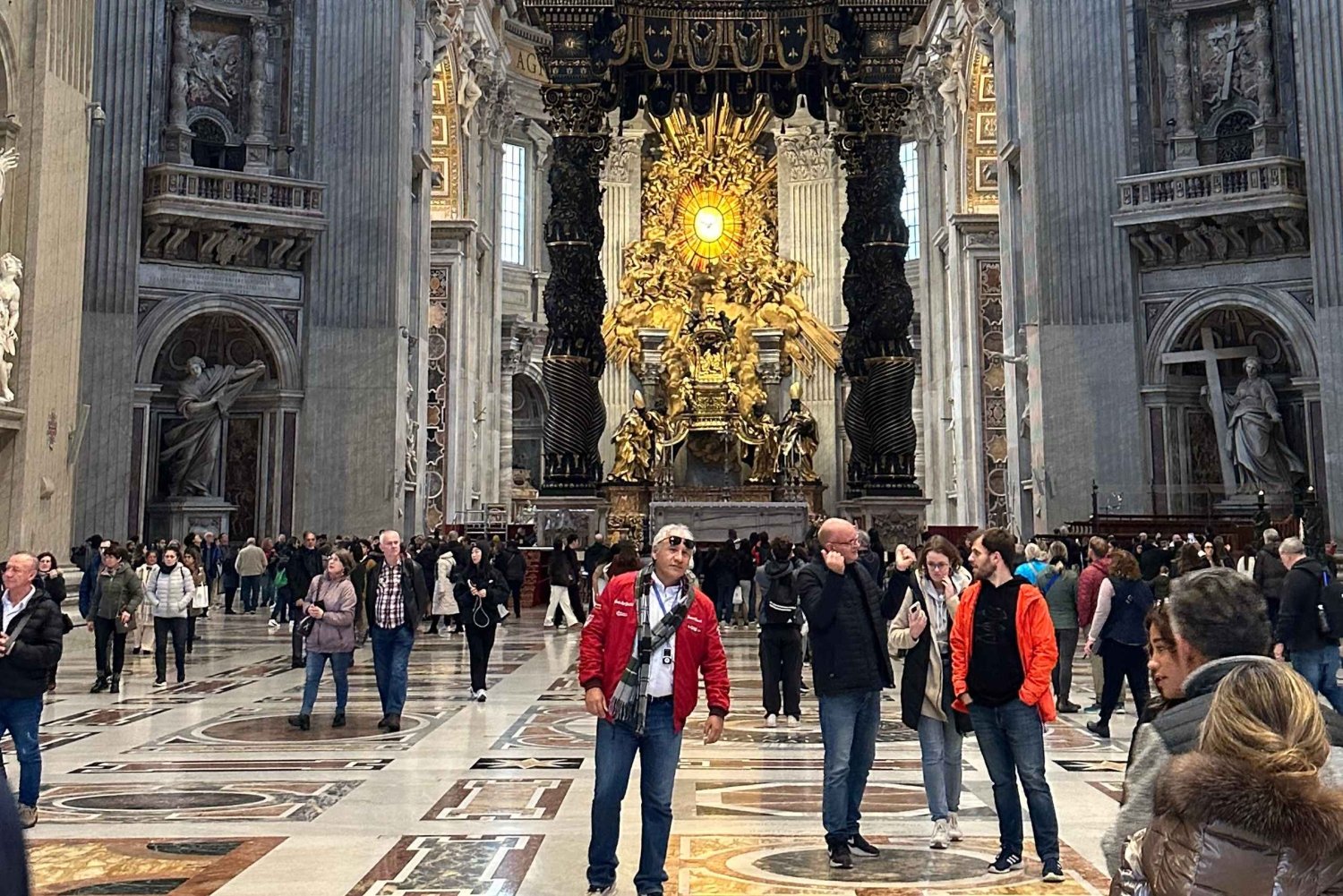 Oplev vidundere i Vatikanmuseerne, der huser en af verdens mest ikoniske kunstsamlinger. Din rejse begynder med adgang uden kø, så du får mere tid til at udforske museets skatte. Under ledelse af en ekspertguide kan du dykke ned i museets store gallerier fyldt med mesterværker fra renæssancen og videre. Besøg Kortgalleriet, Gobelingalleriet og Rafaelværelserne, hvor levende farver og intrikate detaljer bringer århundreders historie til live. Mens du udforsker, vil din guide dele fascinerende historier om kunstnerne og betydningen bag deres værker. Højdepunktet på turen er Det Sixtinske Kapel, hvor du vil stå i ærefrygt under Michelangelos fantastiske freskomalerier, herunder den berømte Skabelsen af Adam. Din oplevelse afsluttes i Peterskirken, et vidunder af arkitektur og tro, hvor du vil se Michelangelos Pietà og Berninis majestætiske alter. Uanset om du er kunstelsker, historieinteresseret eller nysgerrig rejsende, tilbyder denne tur en uforglemmelig rejse gennem hjertet af Vatikanet.Includes