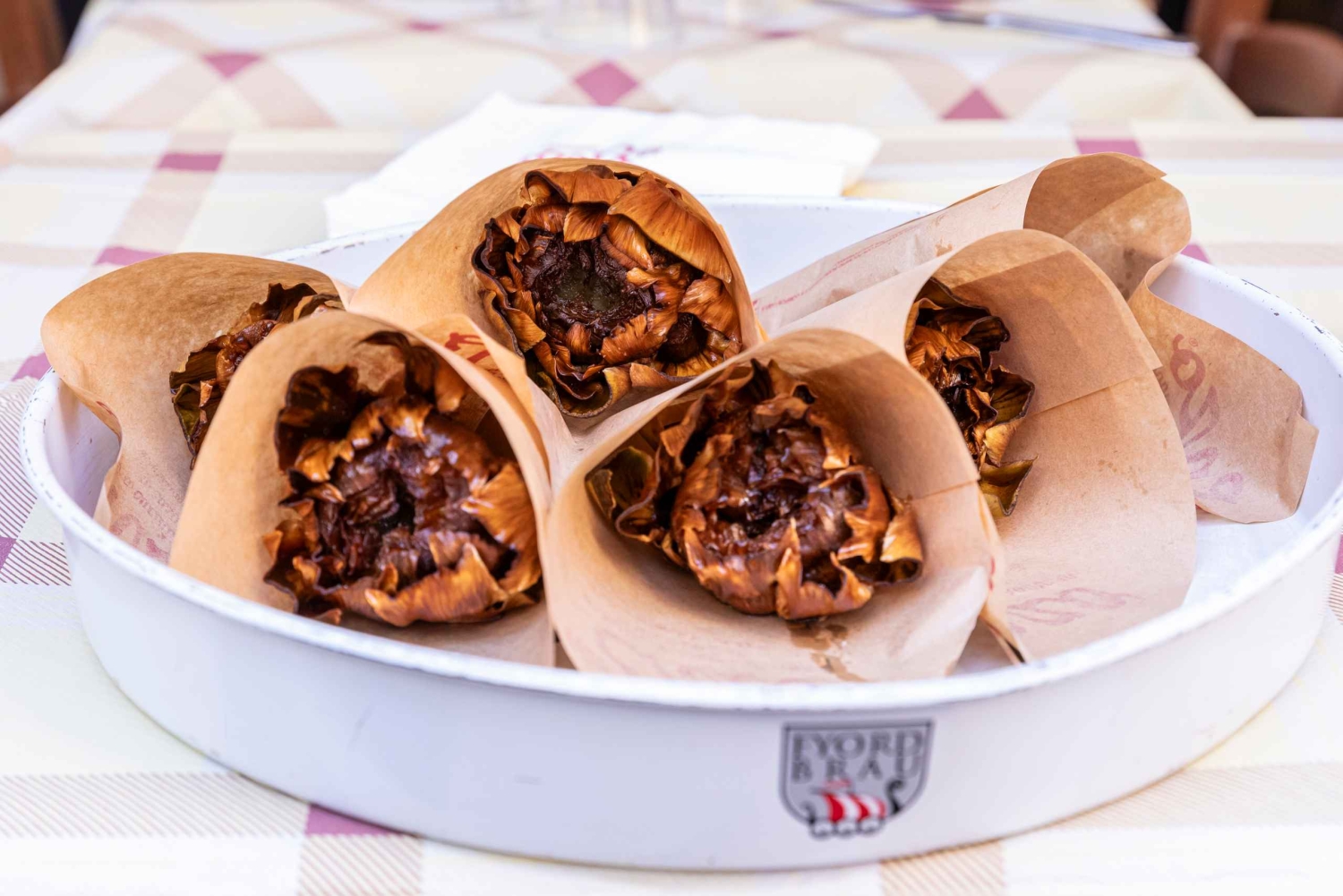 Gebratene Artischocken nach jüdischer Art, Pasta und Porchetta
