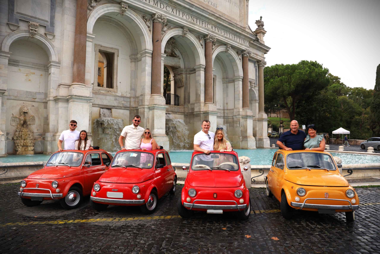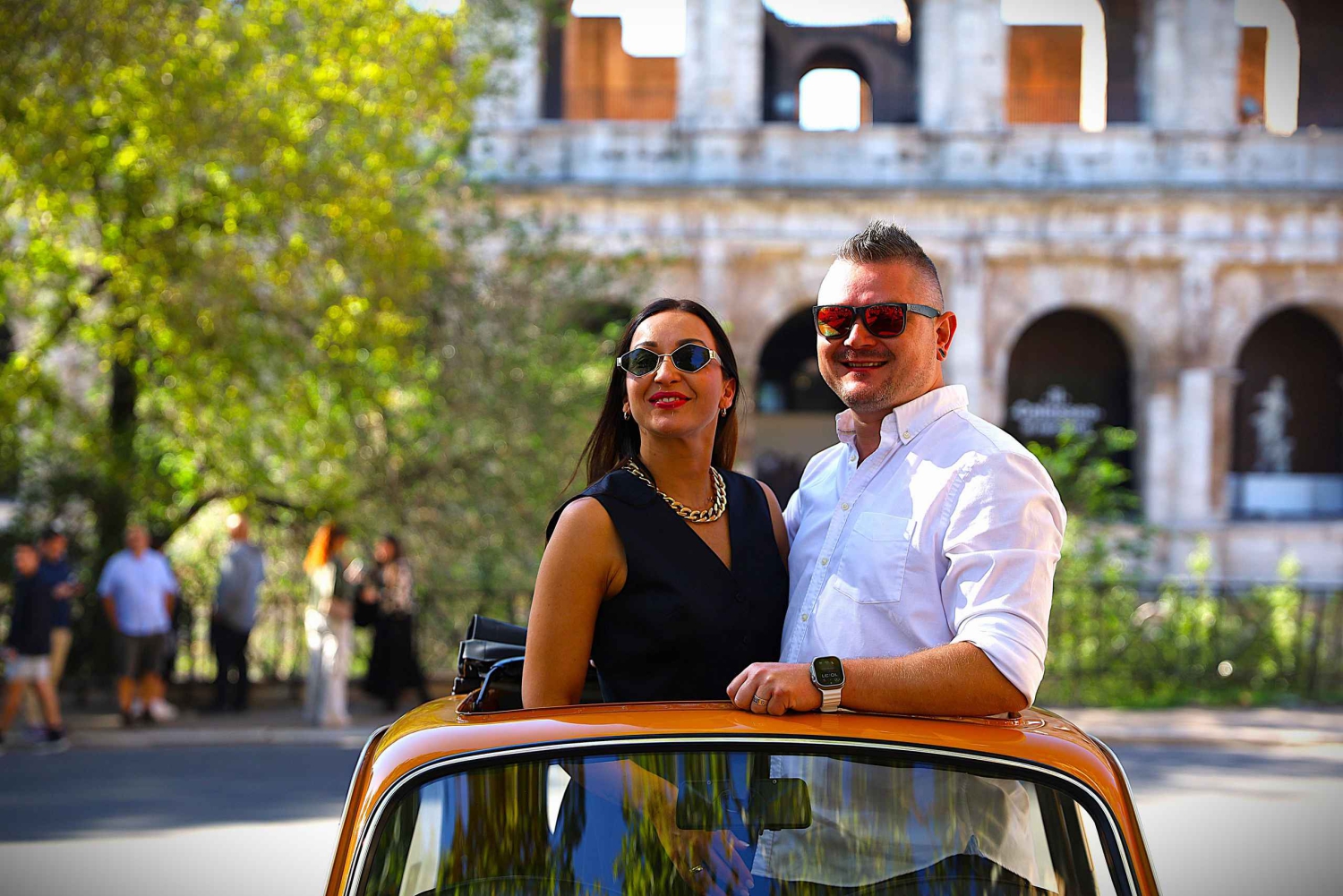 Fotoservice mit Gastgebern, die in Rom leben und die Stadt gut kennen. Wir bieten einen professionellen Fotoservice mit einem Retro-Vintage-Fiat Cinquecento. Die Entdeckung ist nur als private Entdeckung möglich, keine Gruppen. Die Fahrzeuge sind über 60 Jahre alte, legendäre Fiat Cinquecento, in den Farben Giallo Positano, Blauschwarz oder Rubinrot. Wir bieten eine KOSTENLOSE Fahrt zwischen den angegebenen Orten mit unserem Oldtimer Fiat Cinquecento an. Im Fahrzeug ist normalerweise Platz für 2 erwachsene Passagiere und den Fahrer. Familien mit einem Kind passen auch problemlos ins Auto. Wir haben insgesamt 5 verschiedene Fiats und Leute, die größere Gruppen buchen möchten, können auch problemlos Entdeckungen buchen und wir können mit mehreren Fahrzeugen Gastgeber sein. Während des Fotoshootings bieten wir eine KOSTENLOSE Fahrt zwischen dem Kolosseum, den Orangenhainen, der Fontana Acqua Paula und der Gianicolo-Terrasse. Wir machen professionelle Fotoshootings an den folgenden Orten. Während der Entdeckung fahren wir mit dem Fiat Cinquecento zwischen den angegebenen Orten für unseren professionellen Fotoservice völlig kostenlos hin und her. HINWEIS: Dies ist ein professioneller Fotoservice, ein Fotoerlebnis, wir sind keine Autovermietung. Wir fahren kostenlos mit dem Fiat Cinquecento zwischen den Standorten, um den Fotoservice zu nutzen und Fotos zu machen, keine Selbstfahrer. Wir verwenden gelbe, rote oder schwarze Fiats für unsere Touren und alle auf der Entdeckungsseite veröffentlichten Bilder gehören uns, echte Fotos. Wir verwenden keine weißen Fiats und veröffentlichen keine Fotos von anderen, wie alle anderen Accounts mit gefälschten, gestohlenen Fotos. Wenn du Fotos unserer gelben, roten oder schwarzen Fiats auf anderen Konten siehst, sind das keine Gastgeber mit diesen farbigen Fiats.Includes