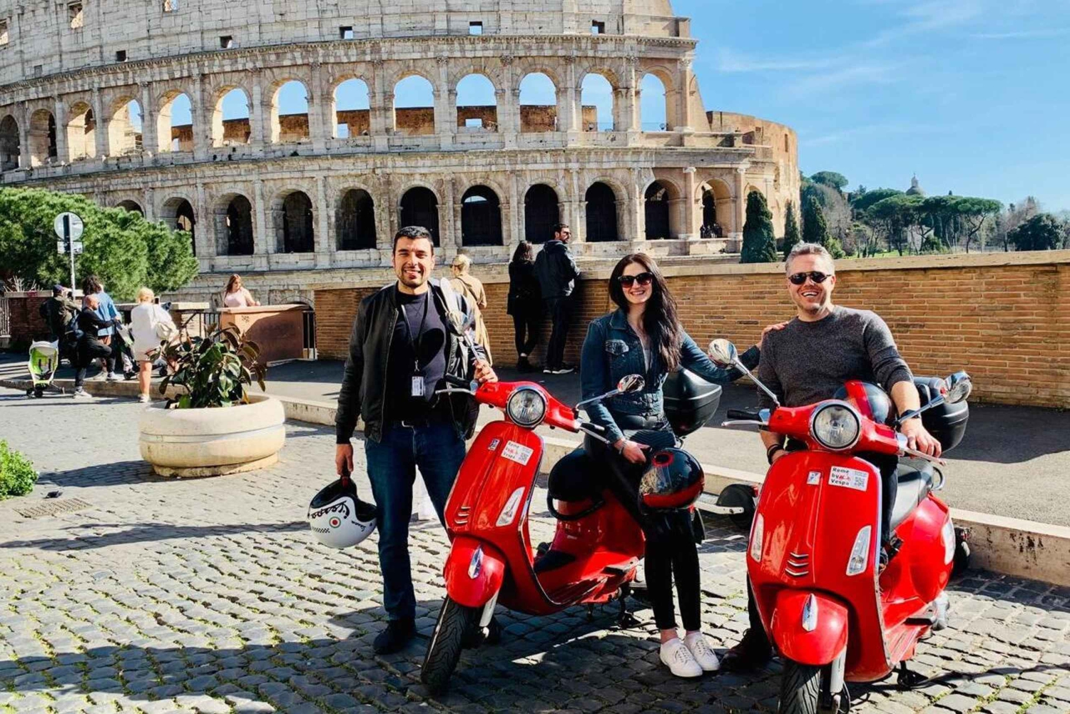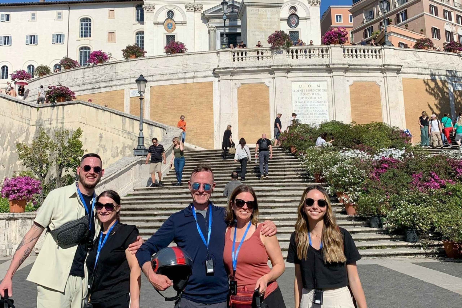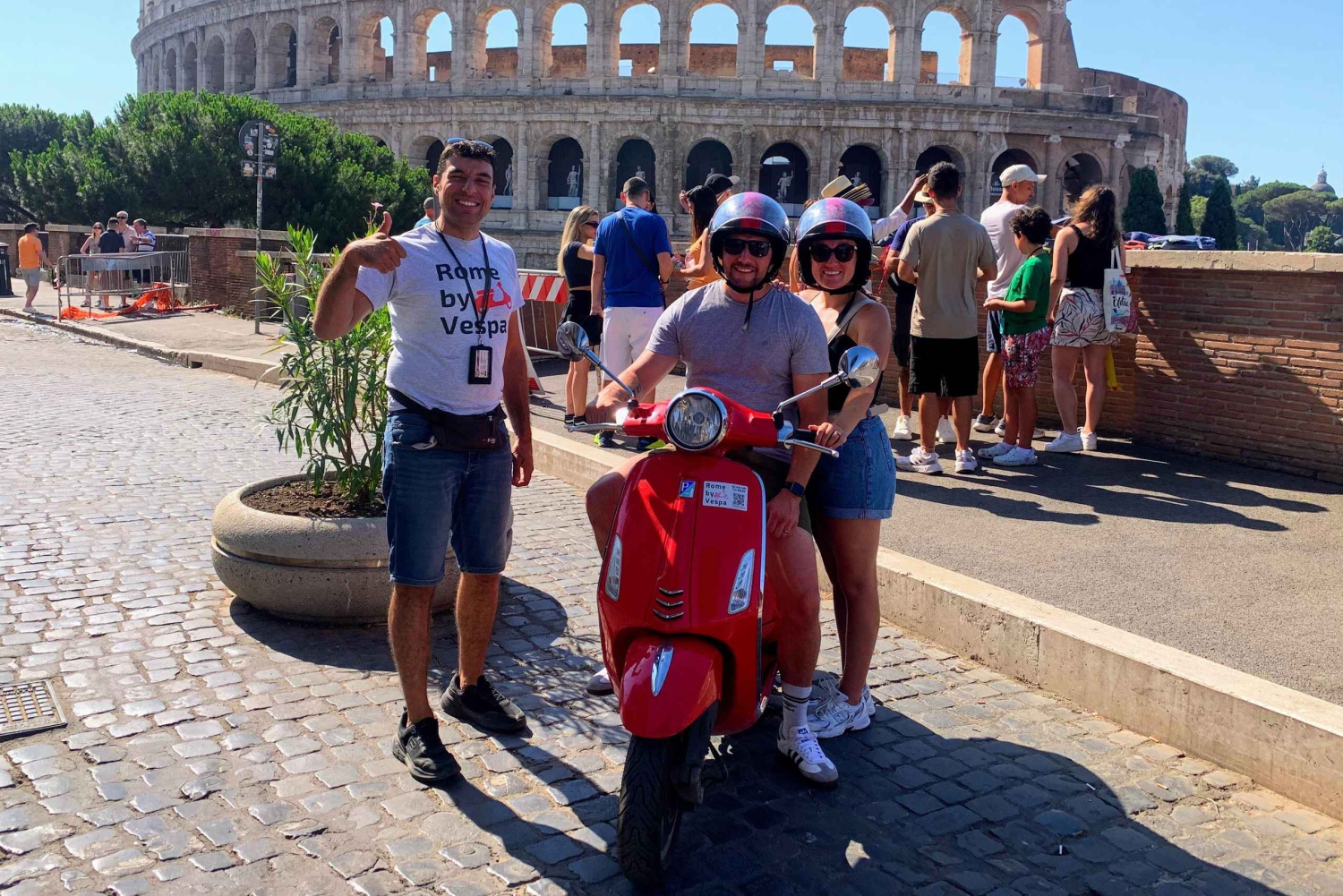 Entdecke das Stadtzentrum von Rom auf unvergessliche Weise mit Francesco, einem super kompetenten Guide mit einem Abschluss in Geschichte und Archäologie. Fahre auf einem legendären Vespa-Roller und genieße an jedem Halt spannende Erläuterungen. Fahre die Vespa selbst oder wähle unseren professionellen Fahrer (du nimmst dann als Beifahrer an der Tour teil). Tauche ein in die aufschlussreichen und informativen Erläuterungen deines erfahrenen Guides, während du Sehenswürdigkeiten wie das Kolosseum, den Trevi-Brunnen, die Spanische Treppe, die Piazza Navona, die Engelsburg, den Janiculum und Trastevere erkundest. Erhalte wertvolle Einblicke in die reiche Geschichte und die lebendige zeitgenössische Kultur der Stadt, die von der Architektur des antiken Roms bis zu den bedeutenden Sehenswürdigkeiten der modernen Stadt reicht. Die Aktivität beginnt und endet in der Nähe des Kolosseums, im Stadtteil Monti.Includes