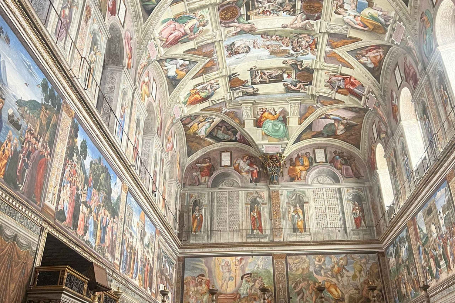 Überspring die langen Warteschlangen und betritt die Vatikanischen Museen ganz ohne Stress. Triff deinen Begleiter und gehe an den Menschenmengen vorbei, um entspannt in die Vatikanischen Museen zu gelangen. Mach das Beste aus deiner Zeit, denn der Eingang zum Museum ist den ganzen Tag gültig. Mit der selbstgeführten Tour kannst du die Vatikanischen Museen bis zur Schließung erkunden. Du kannst bei Bedarf einen Audioguide im Vatikanischen Museum kaufen und deinen Besuch mit uns angenehm gestalten. Unser Gastgeber am Treffpunkt hilft dir. Ein stressfreier Besuch der Vatikanischen Museen und der Sixtinischen Kapelle.Includes