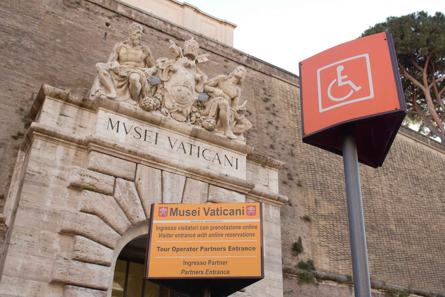 Beginne deine Tour, indem du deinen lizenzierten, erfahrenen Guide triffst, der an deiner Seite sein wird, sich um jedes Detail des Eingangsprozesses kümmert und dich nach Möglichkeit durch stufenlose Zugänge und mit Aufzügen ausgestattete Strecken begleitet. Diese Tour ist für Rollstuhlfahrer und ihre Mobilitätsassistenten oder Begleiter.