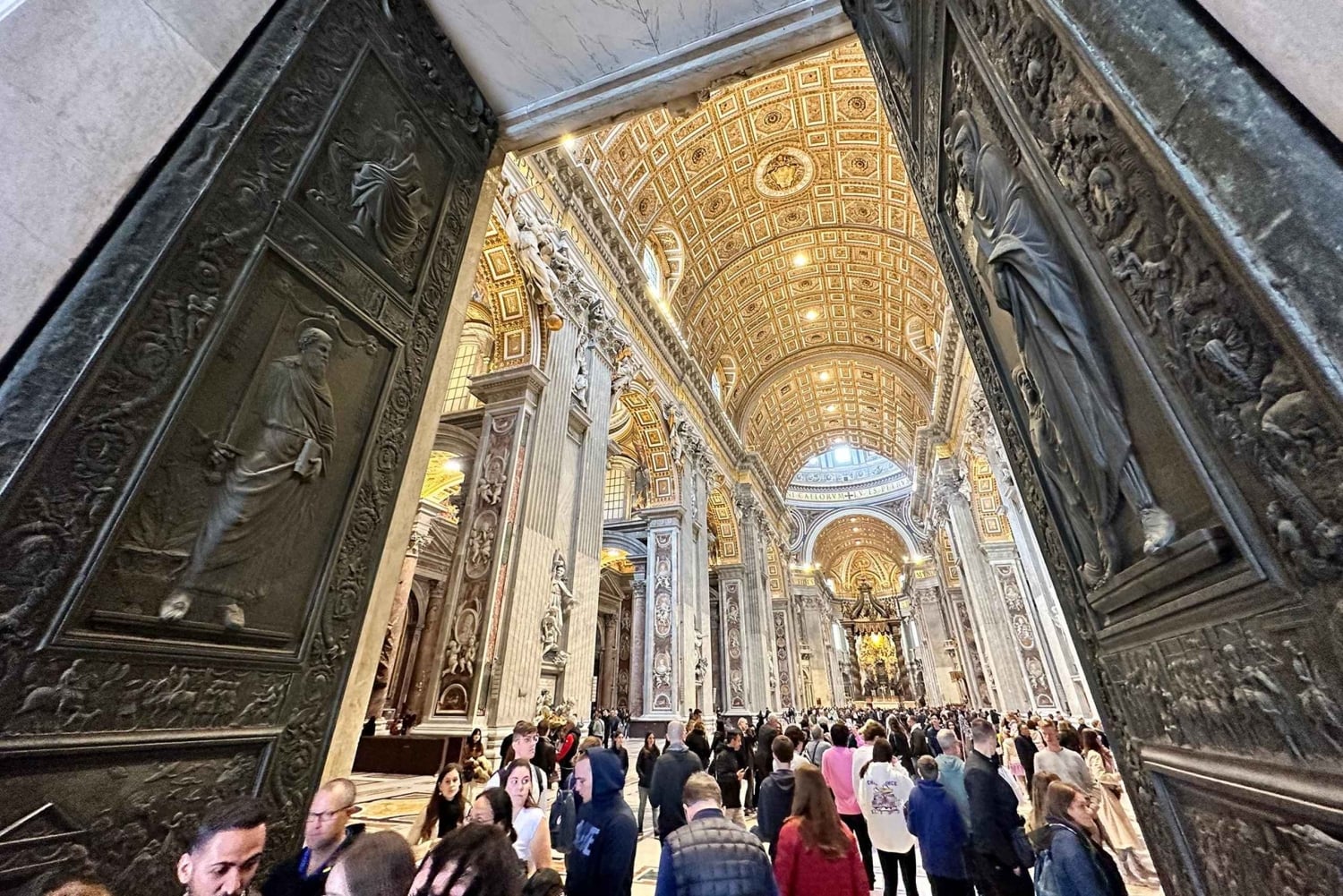 Das emotionale Herzstück des Besuchs ist die Sixtinische Kapelle. Vor dem Betreten erklärt dir dein Guide Michelangelos monumentales Projekt, von der Erschaffung der Decke bis zum dramatischen Jüngsten Gericht, und weist auf Symbole und Details hin, damit du den Raum in respektvoller Stille vollständig in dich aufnehmen kannst. Der Blick auf diesen legendären Freskenzyklus ist ein Moment, der den Besuchern für immer in Erinnerung bleibt, und wenn man ihn mit Kontext und Sorgfalt erlebt, wird er noch eindringlicher.