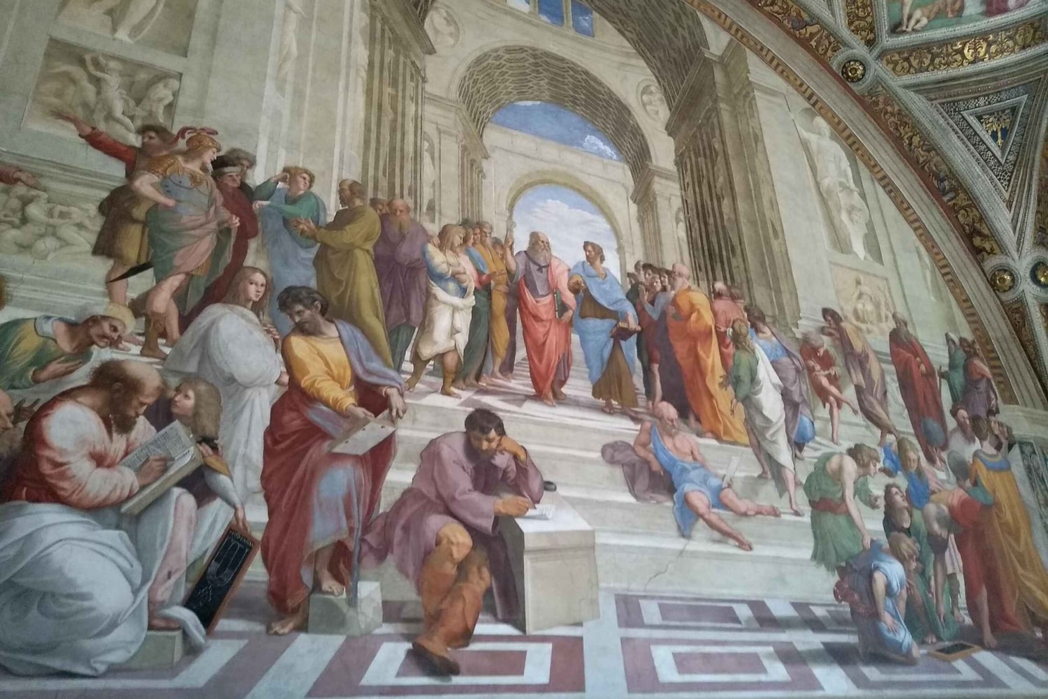 Während du durch die Galerien gehst, triffst du auf einige der außergewöhnlichsten Highlights des Vatikans, von eleganten Innenhöfen und klassischen Skulpturen bis hin zu reich verzierten Renaissance-Korridoren. Die Galerie der Landkarten bietet ein schillerndes Panorama Italiens, wie es sich die Menschen vor Jahrhunderten vorgestellt haben, während die Stanzen des Raffael einige der einflussreichsten Fresken zeigen, die jemals gemalt wurden, darunter die berühmte Schule von Athen.