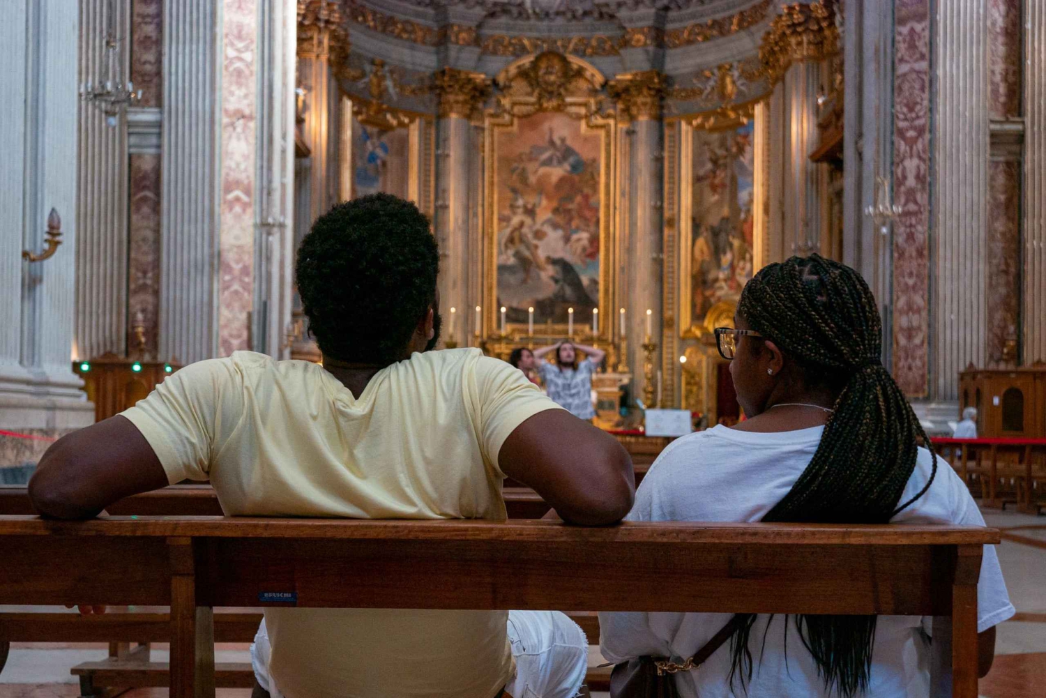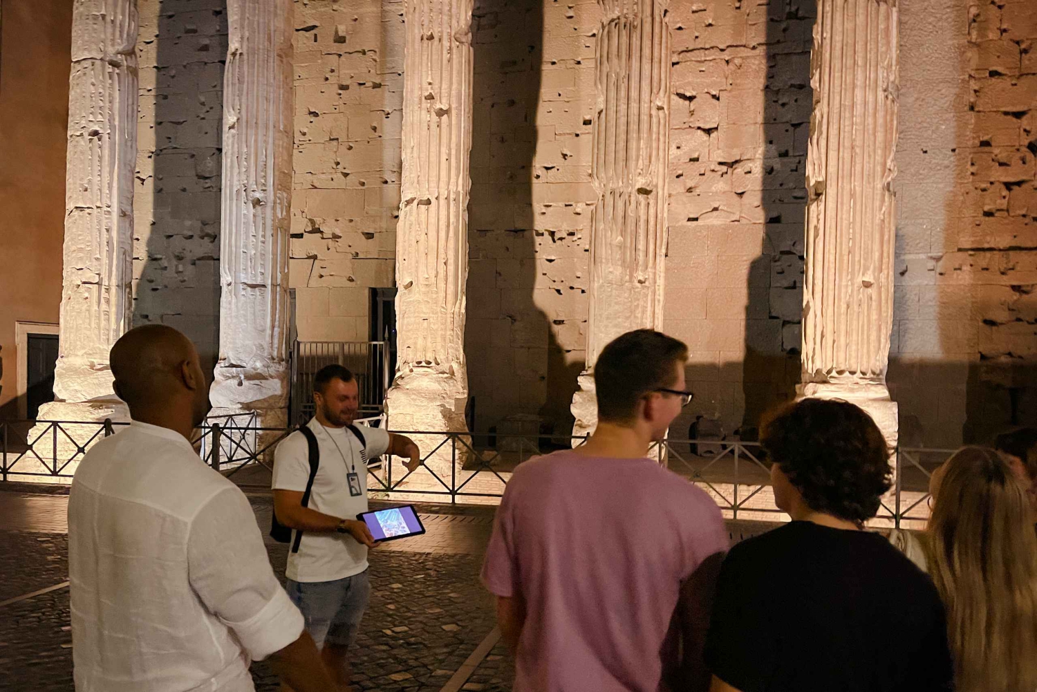 Explora la histórica ciudad de Roma con un tour a pie por las calles iluminadas por la luna al atardecer. Sumérgete en la atmósfera de la Plaza Navona y contempla monumentos emblemáticos como el Panteón y el Coliseo iluminados por la noche. Dirígete a la Plaza Navona para reunirte con tu guía y el grupo de la noche. Escucha las tranquilizadoras aguas de la Fontana dei Quattro Fiumi, en el centro de la plaza, antes de salir por las encantadoras calles de Roma. Prepárate para tu primera parada en el Panteón, construido por el emperador Adriano como monumento a los dioses. Continúa hasta la Fontana de Trevi para lanzar una moneda y pedir un deseo o tomar algunas fotos atmosféricas. Pasa junto a las columnas, estatuas y templos que bordean el foro imperial y llega al legendario Coliseo. Recorre el recinto mientras brilla bajo la luz de la luna y admira su antigua arquitectura antes de terminar tu visita en la Plaza Venecia.