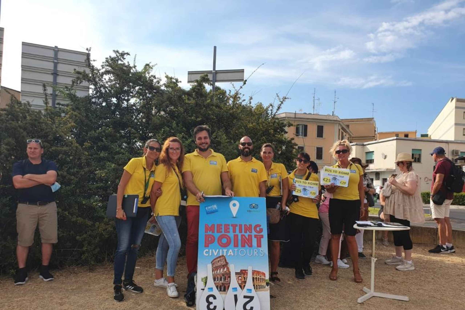 ¿Tu crucero hace escala en el puerto de Civitavecchia y quieres llegar a la estación de tren Termini de Roma o a tu hotel cercano? Viaja en cómodos autobuses con aire acondicionado y personal profesional y cualificado, reserva con antelación nuestro servicio de traslado a la estación Termini de Roma y llegarás a tiempo para coger tu tren o para llegar a tu hotel cercano. Encuéntrate en el punto donde te deja el autobús lanzadera de cruceros en la Terminal de Cruceros Largo della Pace. Los cruceristas deben tomar el servicio gratuito de lanzadera del puerto desde el muelle directamente hasta la Terminal para llegar a ella. El personal te estará esperando para la salida diaria a las 9:40 h. Enséñales el cupón y te ayudarán a subir a bordo. Relájate y disfruta del viaje de aproximadamente una hora y media. El autobús puede hacer una primera parada cerca del Vaticano (parada de 5 minutos).Includes
