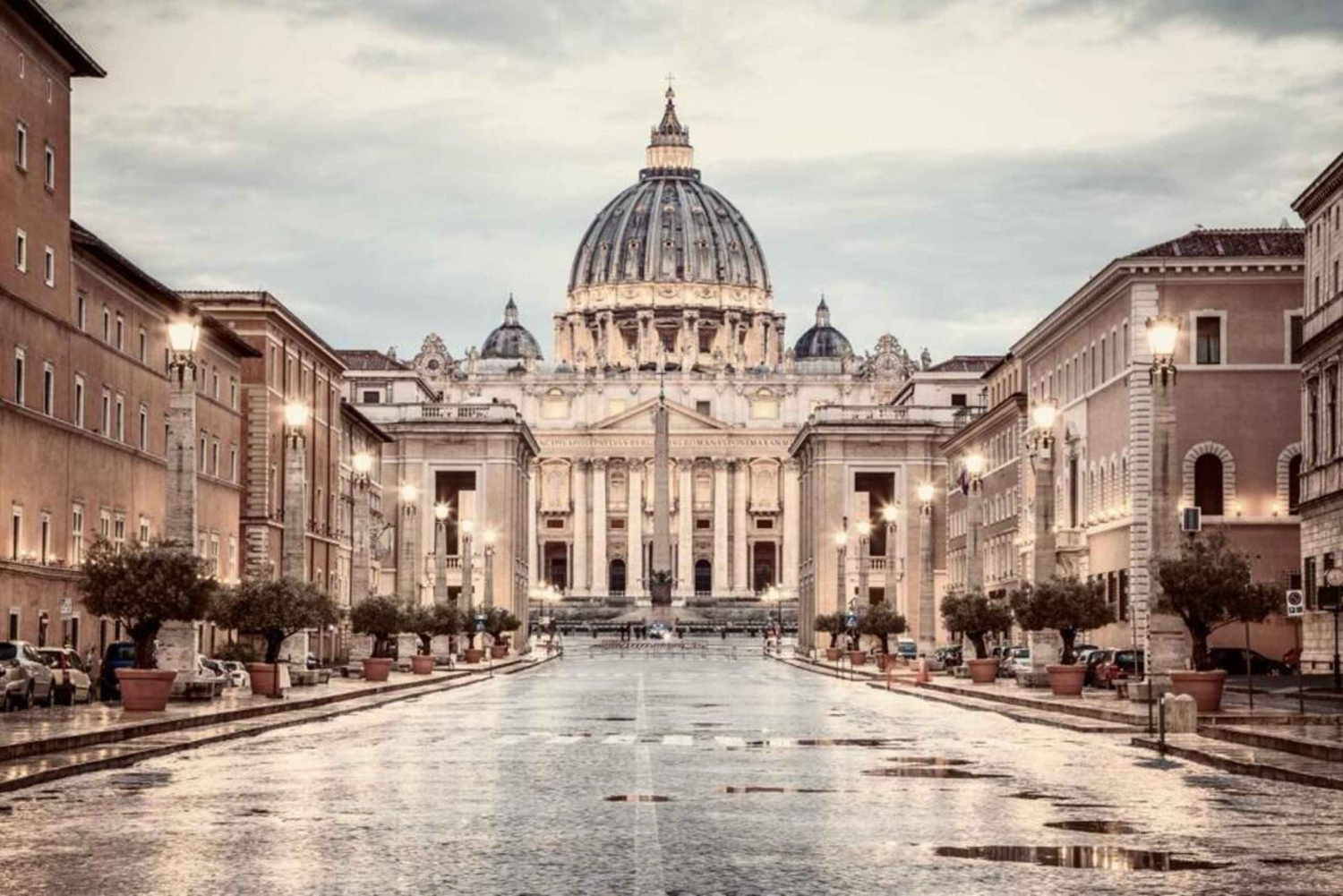 DÍA 1 Con tu chófer, el día comienza con un tour guiado privado al Museo Vaticano y a la Capilla Sixtina, que dura unas 2,5 horas y en el que el guía compartirá datos interesantes sobre los papas, el arte, la arquitectura y mucho más. tras la pausa para comer, el conductor te llevará por el centro de la ciudad Sightseen tour DÍA 2 Sumérgete en la historia de la Antigua Roma, mientras tu guía te entretiene en el enorme Coliseo y te enseña todo sobre la historia, la arquitectura y los hechos arqueológicos romanos. Tómate tu tiempo para explorar el monumento de casi 2000 años de antigüedad a tu propio ritmo. Visita la Colina Palatina, una de las partes más antiguas de la ciudad de Roma, donde se cree que se encuentra la cueva en la que la loba encontró a Rómulo y Remo. Tras la pausa para comer, descubrirás las Catacumbas Apias acompañado por tu chófer. Las increíbles Catacumbas, entre las más grandes e importantes de Roma, se convirtieron en el cementerio oficial de la Iglesia de la ciudad.Includes