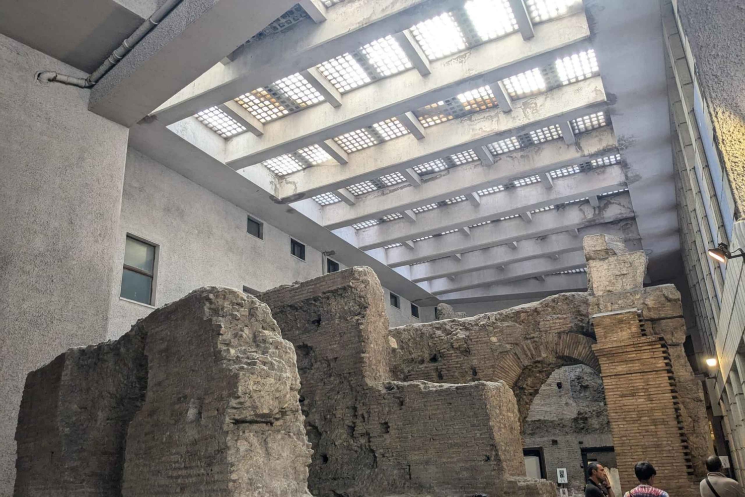 Descubre lo que se esconde bajo la Piazza Navona, en el centro de Roma, en un tour guiado con audioguía, disponible en diferentes idiomas. Viaja en el tiempo y contempla una selección de fotografías inéditas y paneles informativos que cuentan la historia del Estadio de Domiciano. Descubre cómo se convirtió la Piazza Navona en la plaza actual y la evolución de los deportes en la antigua Roma. Desciende 5 metros bajo el nivel de la calle para explorar el antiguo circo en todas sus dimensiones y obtener detalles sobre los bloques de travertino, los ladrillos y las columnas de mármol de las entradas principales. Escucha cómo se dividían hasta 30 000 espectadores en la arena. Completa tu experiencia y reserva la opción que incluye el aperitivo (1 cóctel y aperitivos) en uno de los miradores más fascinantes del centro de Roma. En el punto de encuentro, el personal te reservará una mesa para el aperitivo. Si seleccionas la opción de cata de vinos, también podrás disfrutar de una degustación de dos vinos maridados con una tabla de aperitivos tradicionales en el corazón de Roma.Includes