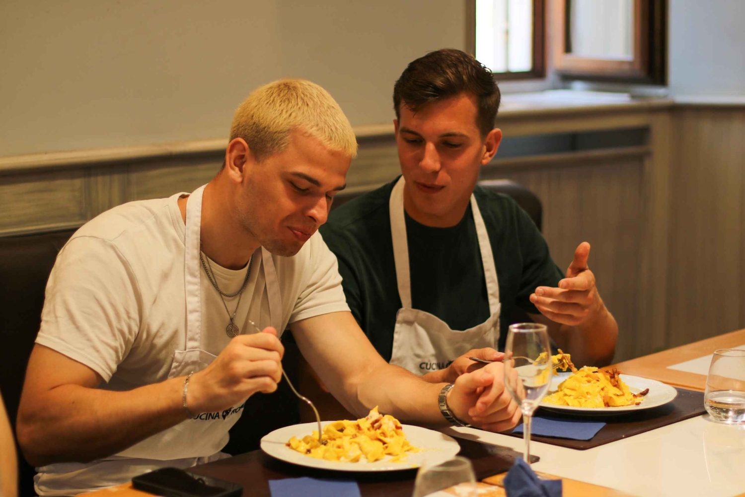 Step into a private Roman kitchen near Piazza Navona and discover the joy of cooking like an Italian. This hands-on class combines fun, flavors, and unforgettable moments in an intimate atmosphere. Begin your experience with a welcome drink of Prosecco or Champagne. Guided by a friendly local chef, you’ll learn how to mix, knead, and shape fresh pasta dough completely from scratch. Traditionally, the pasta will be paired with the iconic Roman sauce, carbonara. For guests who cannot eat carbonara, vegetarian pesto or the rich amatriciana are also available. While the pasta rests, you’ll prepare Italy’s most beloved dessert — tiramisu. Throughout the class, enjoy unlimited Italian wine, and to finish, raise a glass with a refreshing shot of limoncello. Perfect for private groups of friends, families, colleagues, or couples, this experience offers an authentic taste of Italian culture you’ll remember long after the last bite.Includes