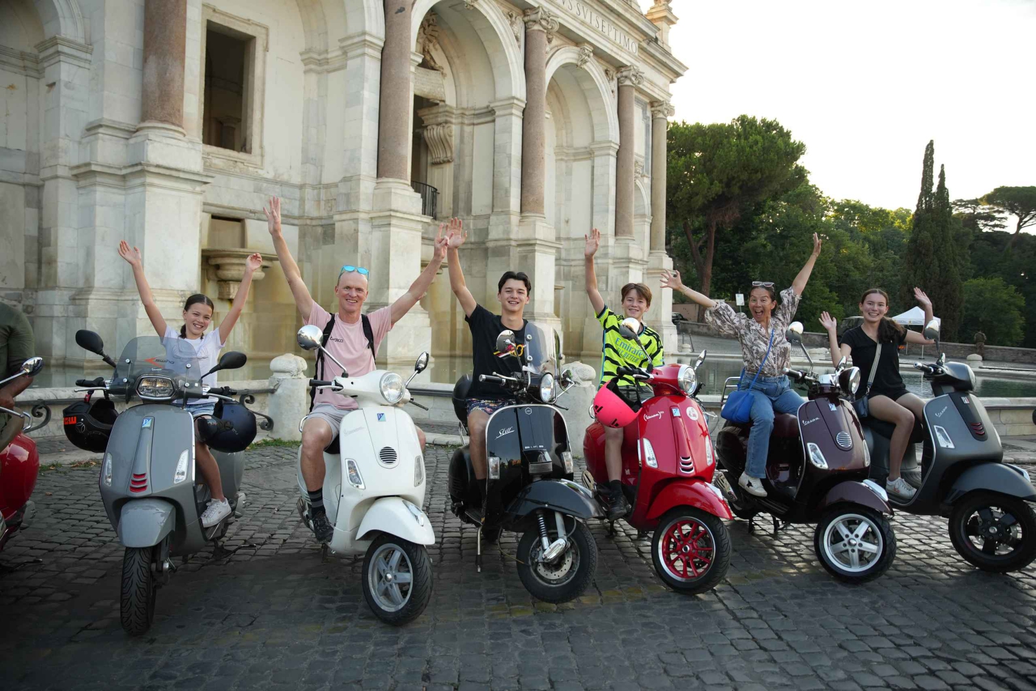 Discover the top sights in Rome and uncover some of its hidden gems while on a Vespa scooter tour. Admire iconic landmarks like the Colosseum and Piazza Venezia and receive photos of your adventure through the city. Meet your guide near the Colosseum and get set up with your helmet and stylish Vespa scooter. Explore the city streets of Rome with your guides, stopping to capture pictures with your scooter at iconic landmarks. Ride around the imposing Colosseum and take in sweeping views of Rome from the Giardino degli Aranci (Orange Garden). Pass the iconic Circus Maximus where chariots once raced. See the Fontana dell'Acqua Paola, a monumental fountain and soak up panoramic city views at Terrazza del Gianicolo. End your tour in the heart of the city in Piazza Venezia at the foot of Capitoline Hill.Includes