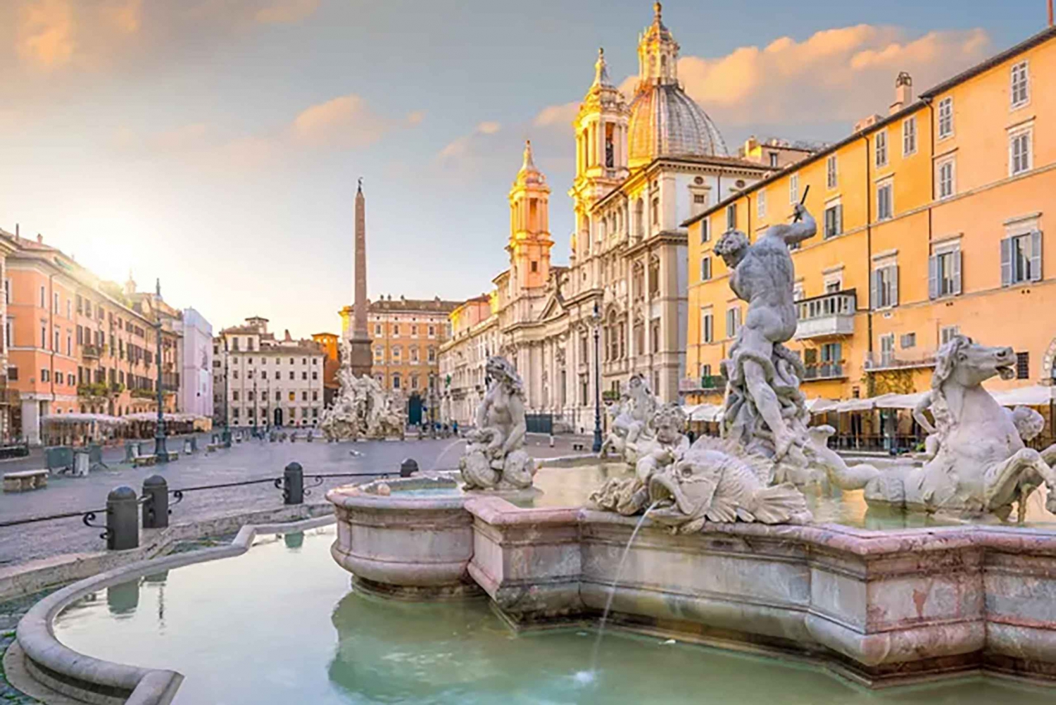 Experience the vibrant heart of Rome on this guided walking tour, taking you through some of the city’s most iconic landmarks and historical sites. Starting from the city center, you’ll begin your journey at the magnificent **Vittoriano**, also known as the Altar of the Fatherland. This grand monument, dedicated to the unification of Italy, stands proudly in Piazza Venezia. Admire its imposing size and intricate decorations as your guide explains the significance of the monument and its role in Italy’s national identity. From there, your guide will take you on a short stroll to **Largo di Torre Argentina**, an important archaeological site where the famous **assassination of Julius Caesar** took place in 44 BC. This area, once a part of the Roman Forum, is now a striking mix of ancient ruins and stray cats, making it an unexpectedly fascinating stop on your journey. Next, you'll visit **Piazza Navona**, one of Rome’s most beautiful squares. Originally built as an ancient **stadium**, Piazza Navona now houses a **Papacy Palace**, the elegant **Church of Sant'Agnese in Agone**, and **Bernini's Fountain of the Four Rivers**. As you marvel at the grandeur of the square, take in the beauty of the Baroque architecture and enjoy the lively atmosphere created by street performers and locals alike. This picturesque square will transport you back to a time when chariot races were held on the same grounds. The next stop on your tour is the **Pantheon**, one of the most remarkable and well-preserved monuments of ancient Rome. Originally built as a temple to all the gods, the Pantheon’s **dome**, with its oculus opening to the sky, is an architectural masterpiece. Your guide will explain the significance of the structure and the religious history behind it, providing fascinating insights into ancient Roman architecture and engineering. Continuing through the narrow, charming cobblestone streets, you’ll pass another ancient temple and make your way to one of the most iconic landmarks of Rome—the **Trevi Fountain**. Here, you’ll have the chance to toss a coin into the water, ensuring your return to the Eternal City. The Trevi Fountain, with its dynamic sculptures and stunning design, is a true symbol of Rome’s Baroque period and one of the most photographed spots in the world. To complete your walking tour of Rome’s historic center, you’ll head to the **Piazza di Spagna** (Spanish Steps), one of the most famous squares in the city. At the foot of the **Spanish Steps**, your guide will share the fascinating history of the area, which was once the hub of Rome’s literary scene. It was home to many famous British writers, including **Keats** and **Shelley**, and is now known for its upscale shopping district. From the top of the Spanish Steps, enjoy panoramic views of Rome’s rooftops and streets, and perhaps take a moment to relax before continuing your journey.Includes