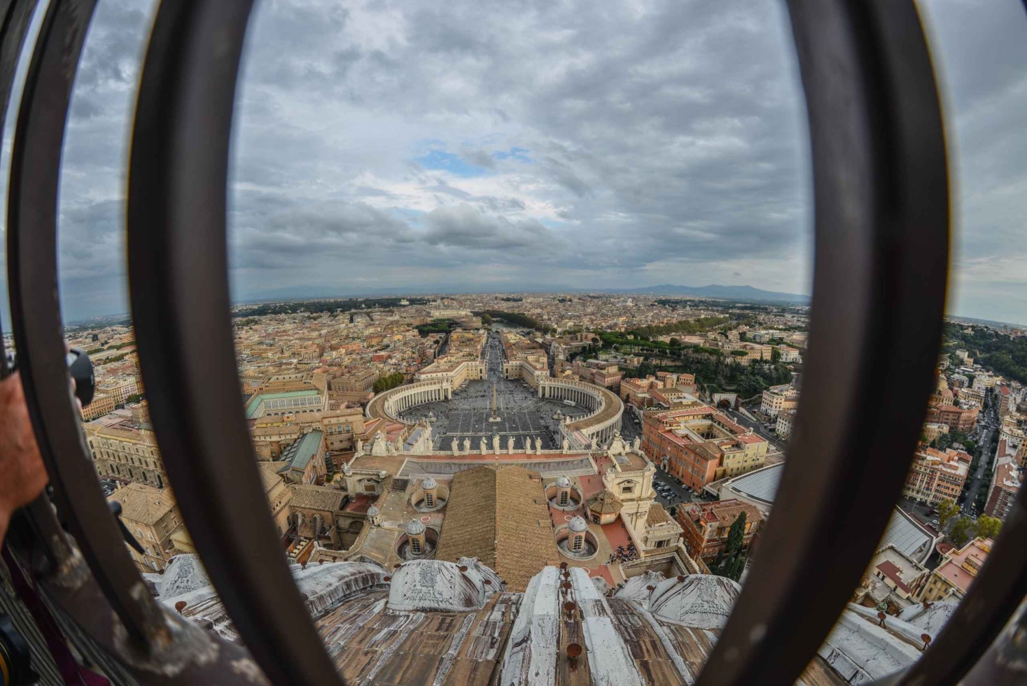 Näe Rooma Michelangelon upean kupolin korkeimmilta korkeuksilta tällä upealla taiteen, arkkitehtuurin ja seikkailun opastetulla kierroksella. Aloita nauttimalla näkymistä Vatikaaniin, mukaan lukien paavin yksityiset puutarhat, paavin helikopterikenttä ja paavin yksityinen rautatieasema. Seuraavaksi avautuvat näkymät Rooman valtavaan kaupunkiin, joka ulottuu köynnösmäisesti siniselle Tyrrhenanmerelle ja vihreille Castelli Romanin kukkuloille. Harva turisti pääsee kiipeämään näin korkealle ja näkemään näin kauas, ja kupoliin kiipeäminen ja basilikakierros päättyvät molemmat myöhään aamulla. Käy myöhemmin iltapäivällä Vatikaanin museoissa tai rentoudu läheisessä historiallisessa keskustassa. Sen jälkeen aloitat ruoanmaistelukierroksen roomalaisen ruokaoppaan kanssa, joka on valinnut suosikkiruokapaikkansa, joihin sinut viedään. Syömäsi ruoat ovat alueellisesti yhtä erilaisia kuin runsaitakin, ja niihin kuuluvat suppli, panzerotto (calzone), pasta, salumi ja viini, pizza, ciambellina al vino, tiramisù, limoncello ja kahvi.Includes