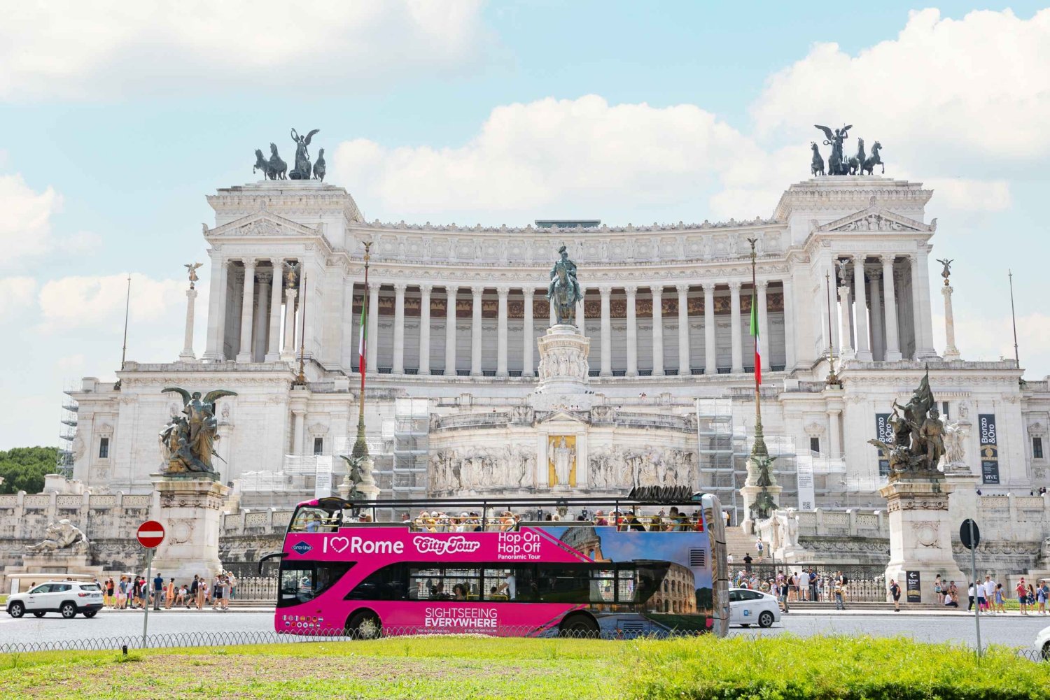 4724 ReviewsTutustu Roomaan omaan tahtiisi hop-on hop-off-bussikierroksella. Opi kaupungin historiasta audio-oppaan johdolla ja tutustu sen ikonisimpien nähtävyyksien ulkoasuun useilla pysähdyksillä reitin varrella.