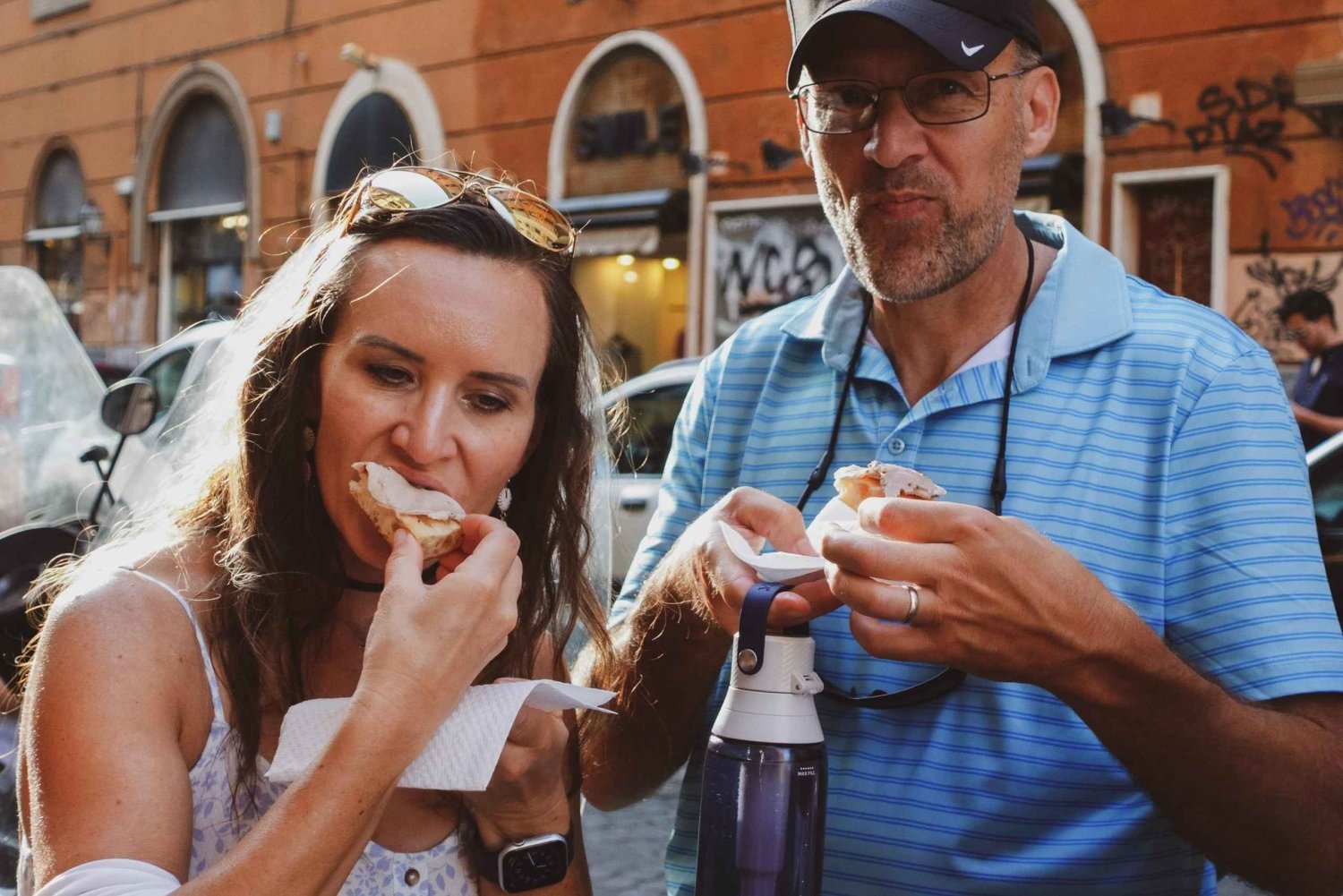 Koe sujuva, etuoikeutetulla pääsyllä varustettu ruokaseikkailu Rome Food Tourilla Trasteveren viehättävillä kaduilla. Kun kaikki varaukset on hoidettu ja kaikki yksityiskohdat ammattitaitoisesti järjestetty, ohitat tyypilliset turistinähtävyydet ja sukelat suoraan Rooman parhaiten varjeltuihin kulinaarisiin salaisuuksiin – ilman stressiä, ilman odottelua, vain puhdasta nautintoa. Innostuneen paikallisen ruokaharrastajan opastamana löydät roomalaisen keittiön sydämen vain sisäpiiriläisten tuntemissa piilopaikoissa. Kiertokierroksen aikana voit maistella vähintään 10 herkullista aitoa italialaista ruokaa, kuten tyypillistä roomalaista pastaa, artesaanijuustoja, klassista roomalaista pizzaa, maukkaita katuruokia ja kermaista gelatoa, jotka kaikki on yhdistetty täydellisesti valikoituihin paikallisiin viineihin. Viihtyisistä trattorioista vilkkaisiin viinibaareihin, jokainen pysähdyspaikka on valittu huolella tarjoamaan aito roomalainen ruokailukokemus, jota rikastuttavat kiehtovat tarinat ja eksklusiiviset kurkistukset kulissien taakse jokaisen ruokalajin taustalla oleviin perinteisiin ja ihmisiin. Tärkeää: Gluteeniyliherkkyydestä kärsiville vieraille suosittelemme yksityisen kiertueen varaamista, jotta voimme räätälöidä täysin gluteenittoman kulinaarisen matkan juuri sinulle.Includes