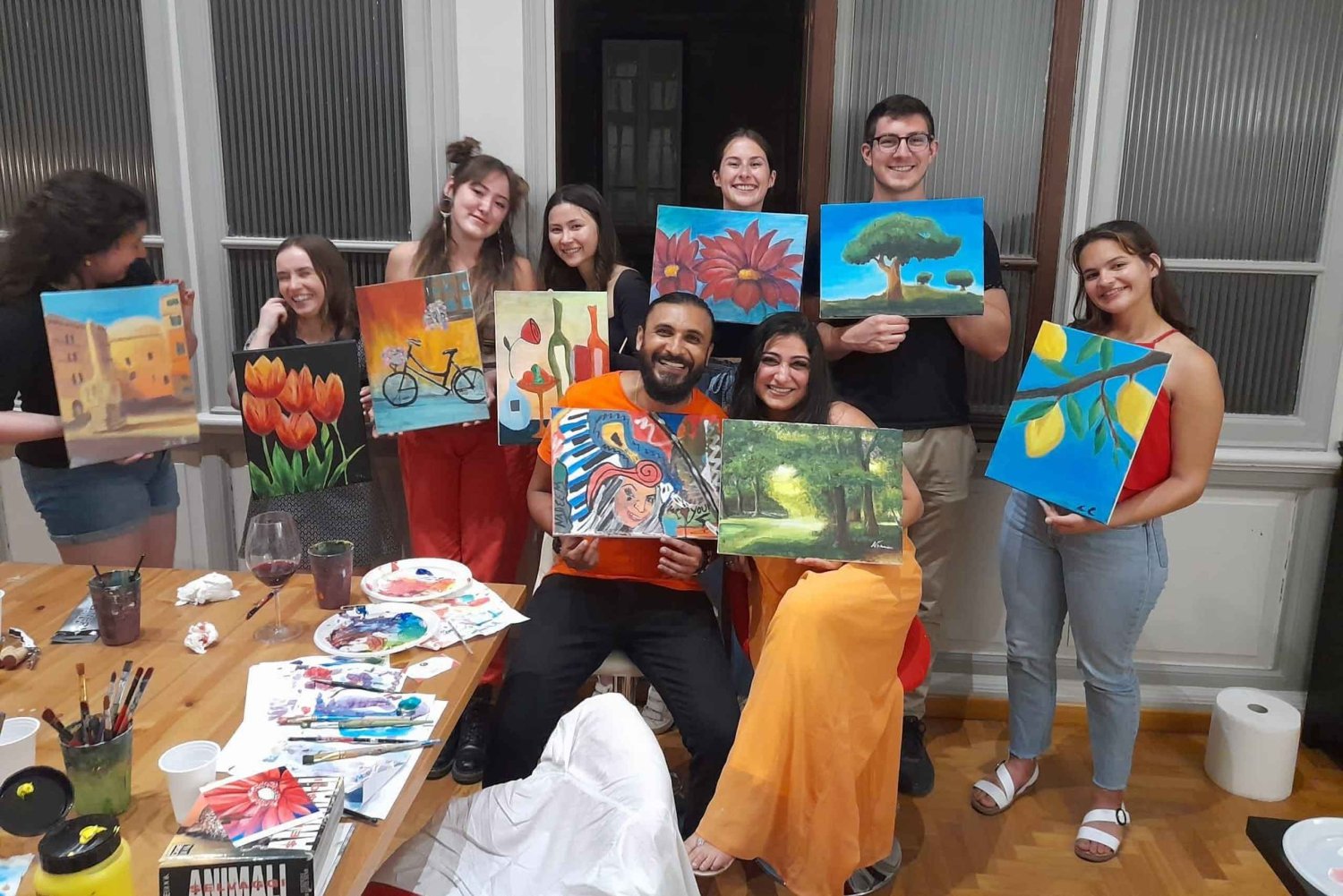 Etsitkö ainutlaatuista ja rentouttavaa aktiviteettia Roomassa? Liity mukaan maalaamisen ja viinin nauttimisen elämykseen viehättävässä 1600-luvun taideateljeessa, vain muutaman askeleen päässä Piazza Navonalta, historiallisen kaupungin keskustan sydämessä. Tämä maalaa ja siemaile -kokemus ei ole taidetta – se on hauskaa, vapaata ja yhdistävää Kun lasissasi on rajoittamattomasti italialaista viiniä, pöydällä on aitoa roomalaista pizzaa ja edessäsi on tyhjä kangas, ilta muuttuu pakopaikaksi luovuuteen. Paikallinen ammattitaiteilija opastaa istuntoa helpoilla vinkeillä, mutta todellinen painopiste on rentoutumisessa, nauramisessa ja nautinnossa. Olitpa sitten yksin, kumppanin kanssa tai ystäväporukassa, tämä elämys on suunniteltu yhdistämään ihmisiä. Siveltimenvedon, viinilasillisen ja pizzapalan välissä huomaat, miten ihanaa on hidastaa vauhtia ja vain pitää hauskaa ikuisessa kaupungissa Illan päätteeksi et lähde vain värikkään mestariteoksesi kanssa, vaan myös unohtumattomien muistojen ja ehkä muutaman uuden ystävän kanssaIncludes