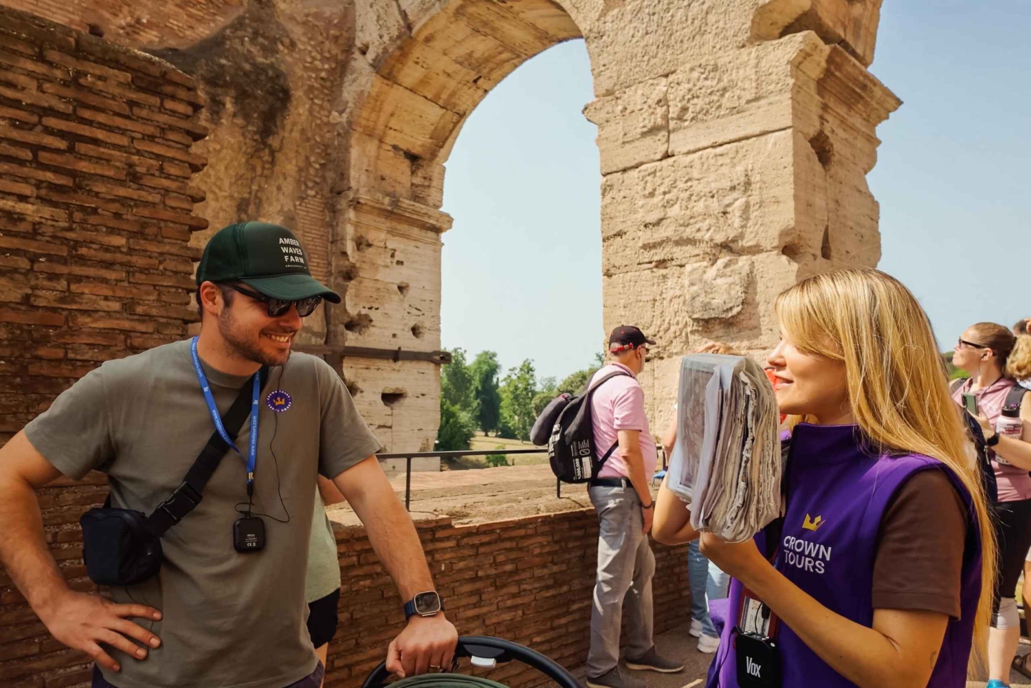 Matkaopas Radiot ja kuulokkeet, jotta opas kuulisi paremmin. Sisäänkäynti Colosseumiin Palatinuksen kukkulalla ja Forum Romanumilla vierailuImportant Information