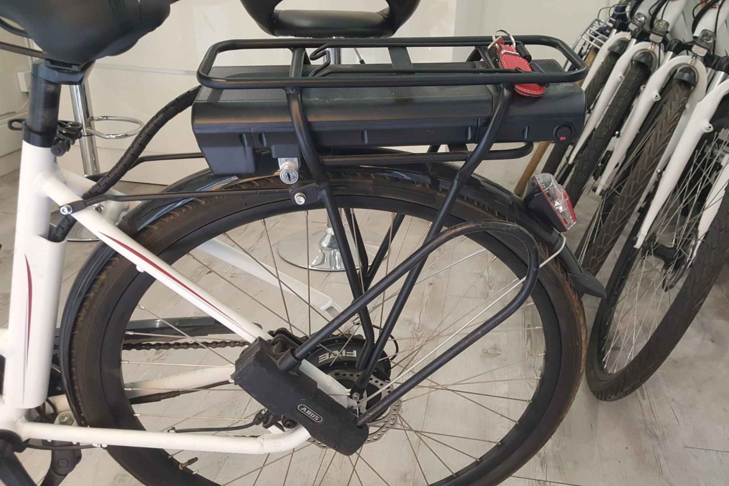 Tutustu Roomaan omin ehdoin tämän sähköpyörävuokrauspalvelun avulla. Kuuntele vinkkejä parhaista reiteistä kaupungin kohokohtien läpi ja hanki kätevä kartta. Valitse vuokravuokra klo 9.00-19.00, 24 tunnin tai 48 tunnin vuokra. Nouda Italwin e-citypyöräsi vuokratoimistosta. Nauti 36 voltin Samsungin litiumioniakun pitkäkestoisesta tehosta. Aja Rooman läpi ominaisuuksilla, kuten LCD-näytöllä, pehmeällä käynnistyslaitteella, 5 eri avustustasolla sekä etu- ja takalevyjarruilla. Säädä pyörä mittojesi mukaan ja kuuntele ohjeistusta pyörän käytöstä. Kuuntele vinkkejä siitä, kuinka pääset tärkeimpiin nähtävyyksiin mahdollisimman lyhyessä ajassa. Aloita pyöräilyseikkailuusi. Palauta pyörä vuokraamolle vuokra-ajan päätyttyä.Includes