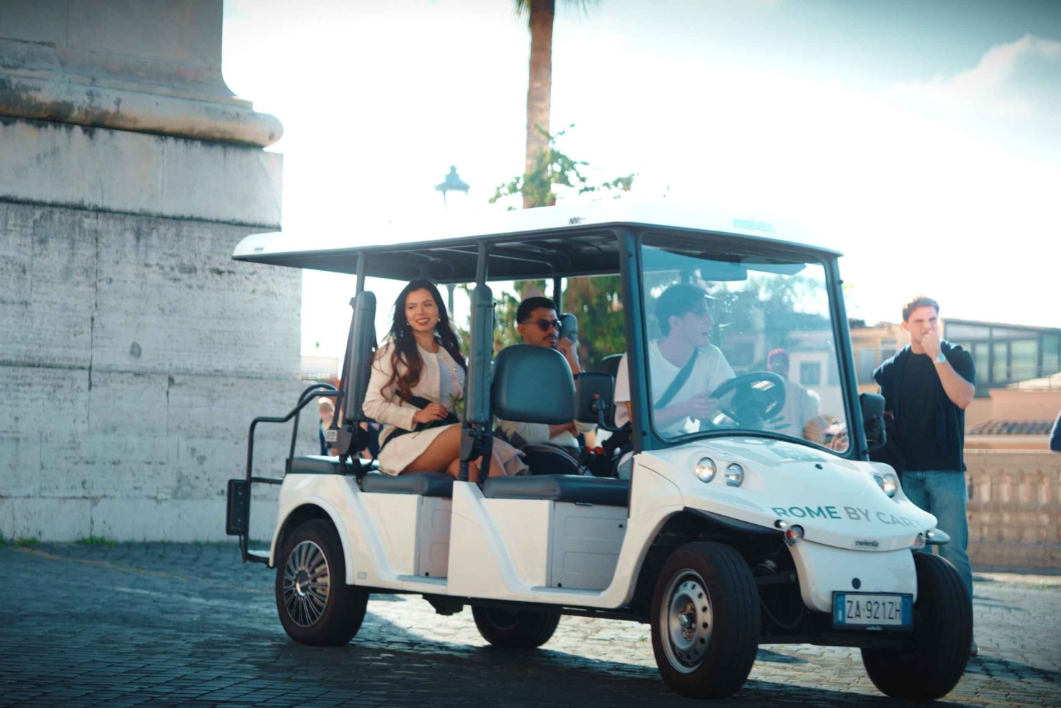 Koe Rooma täysin ainutlaatuisesti: yksityinen golfauto, räätälöity reitti ja pysähdykset valintasi mukaan. Ylellinen, stressitön ja täysin muokattava kokemus