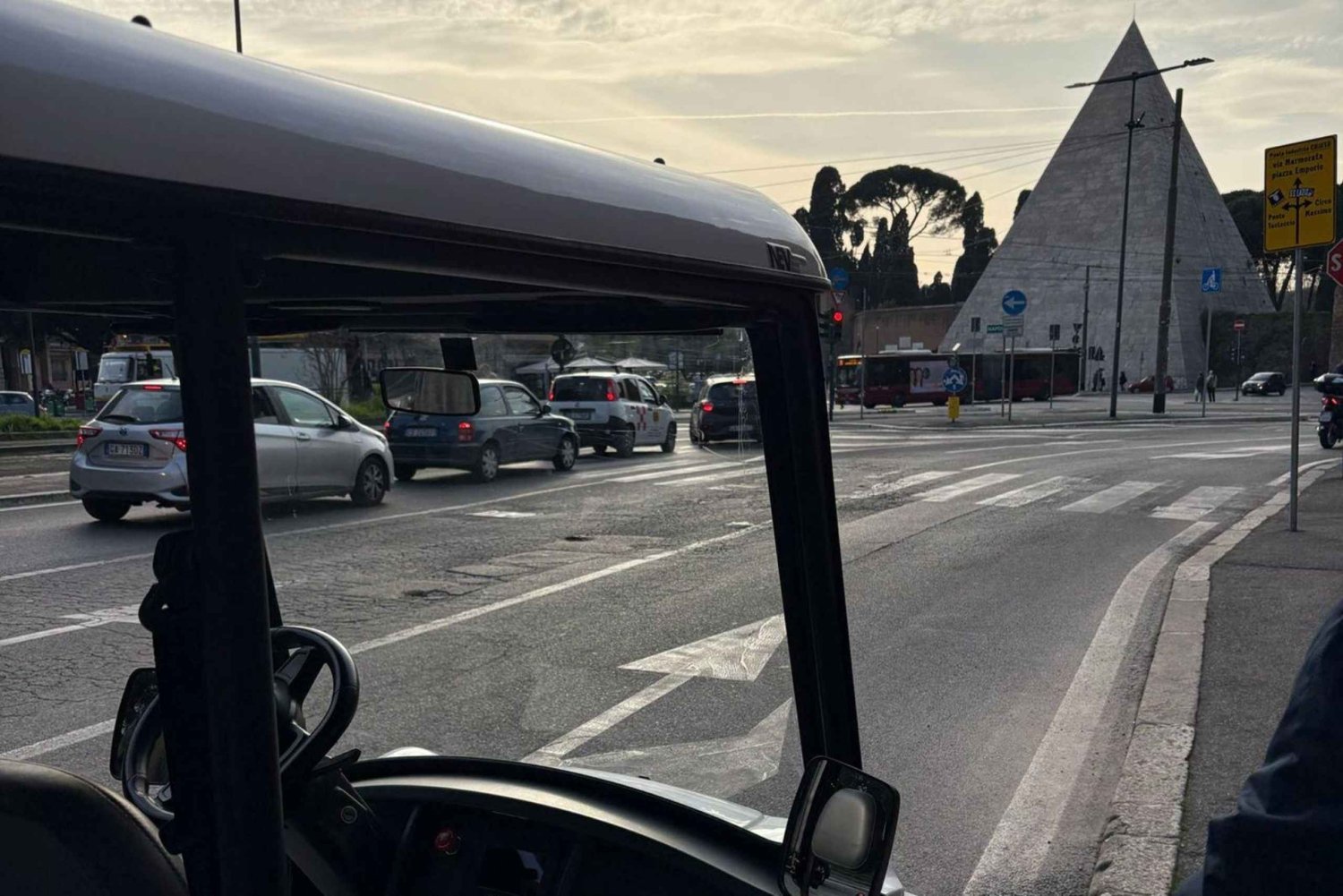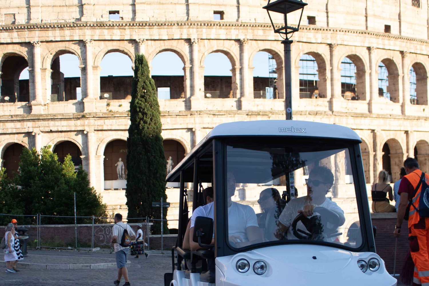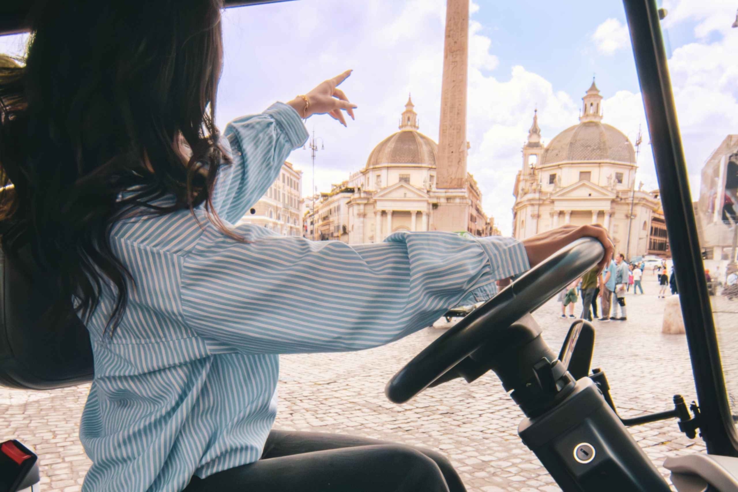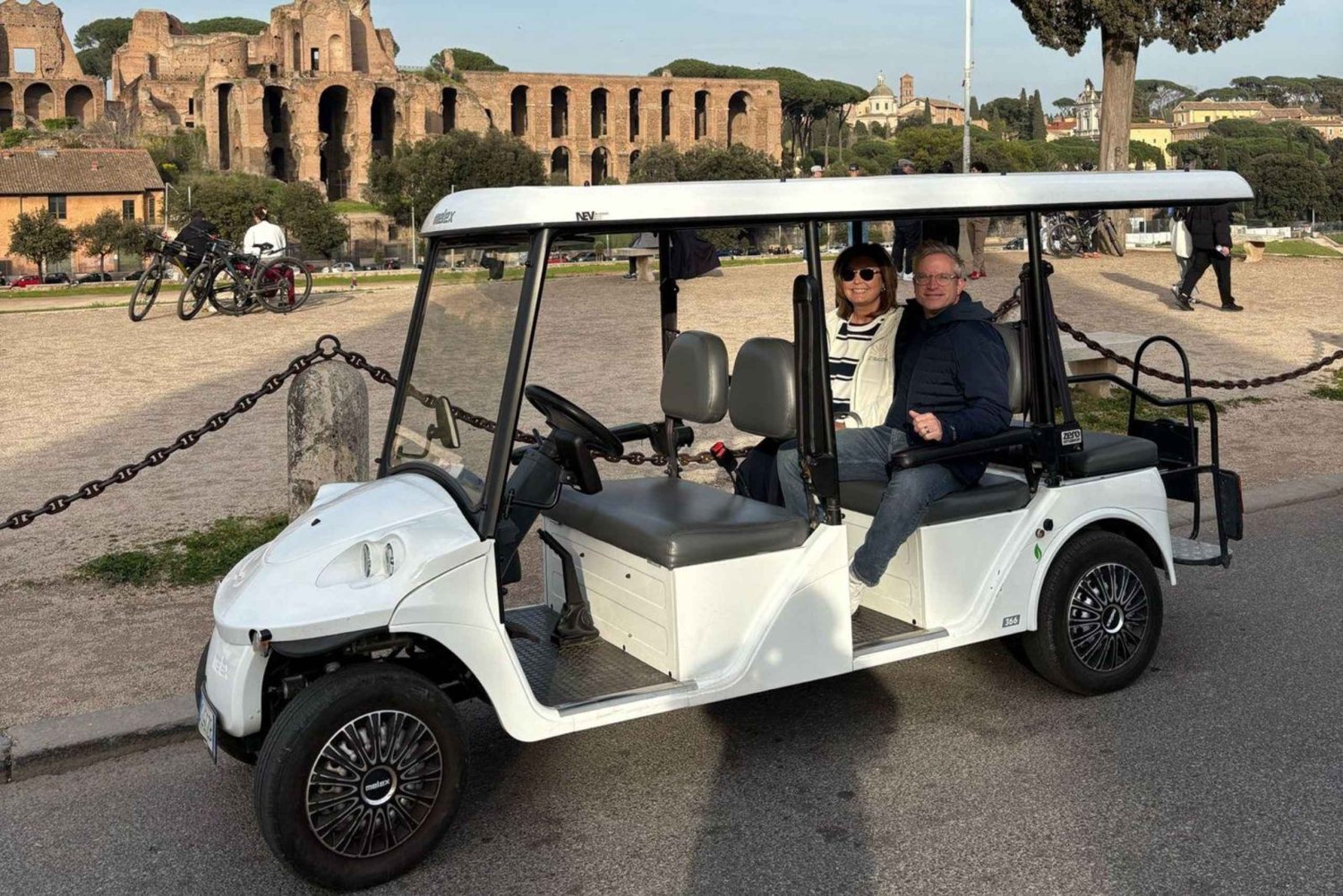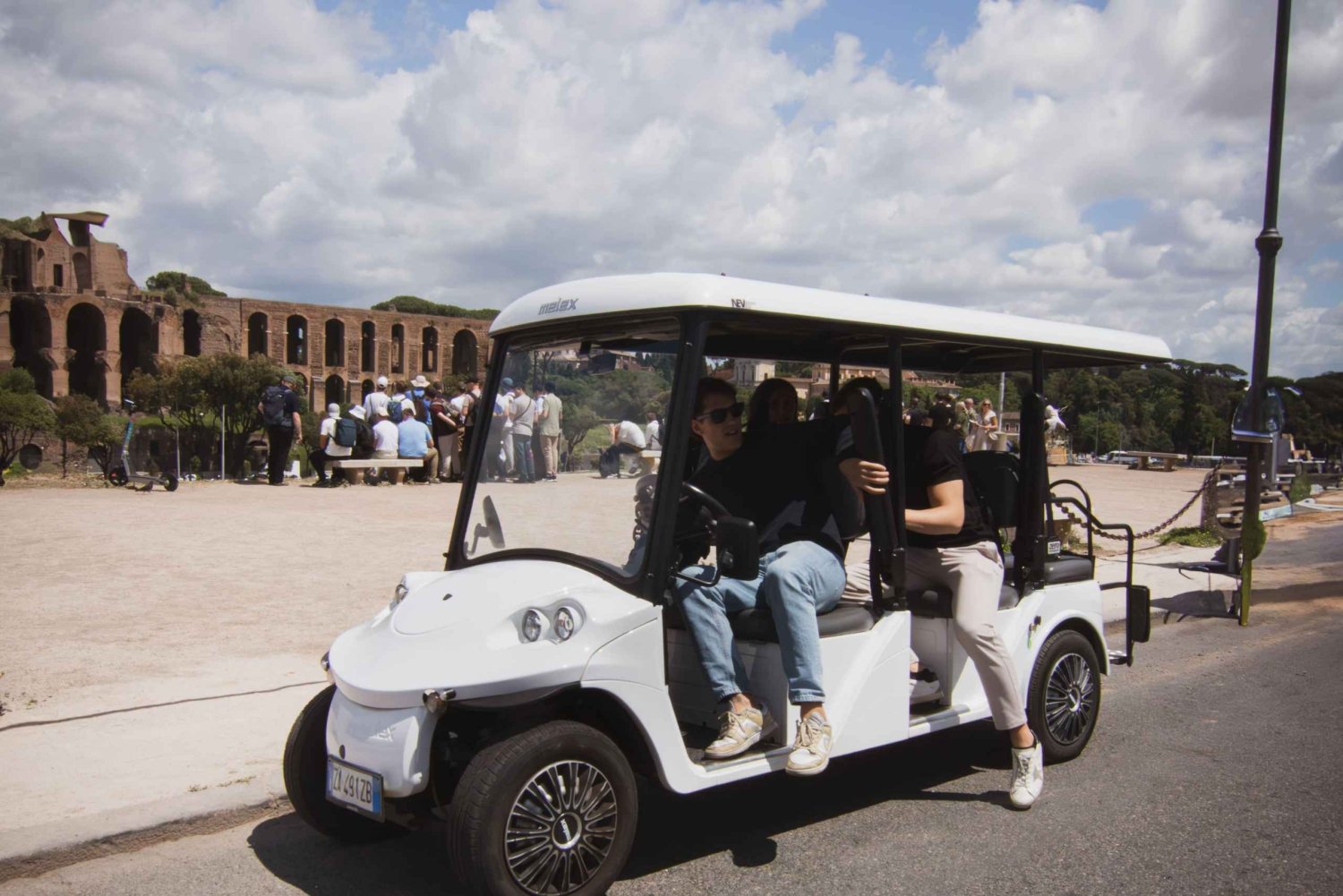 Tutustu ikuiseen kaupunkiin mukavasti ja tyylikkäästi yksityisellä golfkärrykierrosella Rooman sydämessä. Tämä elämys tarjoaa täydellisen tasapainon tutkimisen ja rentoutumisen välillä, jolloin voit ihailla kaupungin kuuluisimpia maamerkkejä ja piilossa olevia kulmia ilman pitkien kävelymatkojen aiheuttamaa väsymystä. Asiantuntevan paikallisen oppaan kanssa liu'ut Rooman historiallisten katujen ja vilkkaiden aukioiden läpi ja kuulet kiehtovia tarinoita ja mielenkiintoisia faktoja, jotka herättävät kaupungin historian eloon. Jokainen nurkka paljastaa jotain poikkeuksellista, aina muinaisista raunioista barokkityylisiin mestariteoksiin. Golfkärryn kompaktin koon ansiosta pääset alueille, joihin ei pääse busseilla tai autoilla, mikä tekee siitä ihanteellisen ja ympäristöystävällisen tavan kokea kaupunki. Tämä kierros sopii täydellisesti pariskunnille, perheille tai pienille ryhmille, ja se yhdistää mukavuuden, joustavuuden ja persoonallisen kosketuksen. Vain kolmessa tunnissa näet enemmän kuin voisit kävellä koko päivän, ja samalla nautit Rooman tunnelmasta, viehätyksestä ja ajattomasta kauneudesta.Includes
