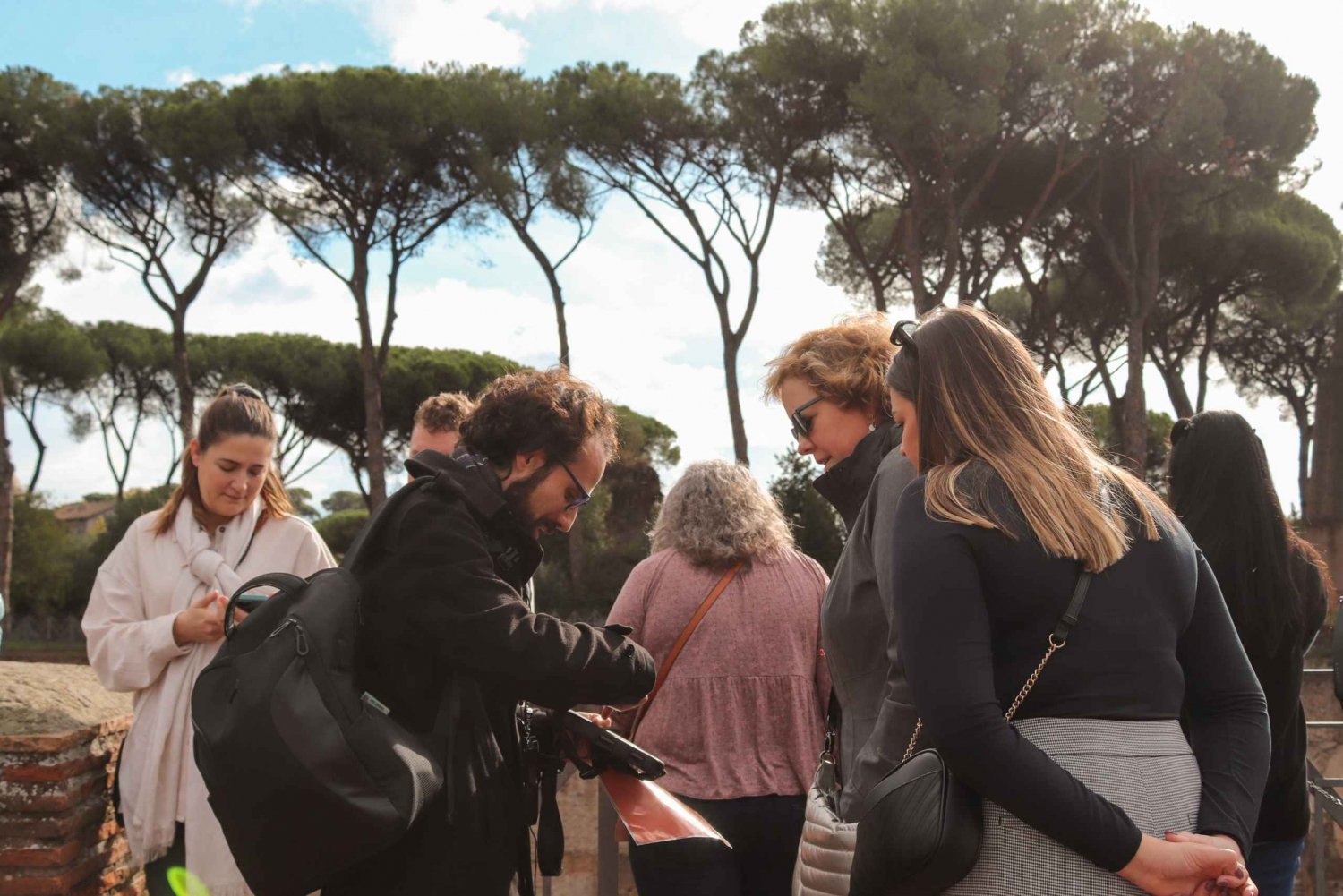 Plongez dans les merveilles de la Rome antique grâce à notre visite guidée du Colisée, du Palatin et du Forum romain ! Nos visites comprennent des billets conçus pour améliorer votre visite, garantissant une entrée fluide et bien organisée. Guidée par des guides région certifiés, y compris des historiens de l'art et des archéologues, notre visite vous garantit une expérience inoubliable ! Découvrez le Colisée comme jamais auparavant, sur les traces des gladiateurs, des empereurs et des Romains ordinaires. Plongez dans ce monument emblématique, où vous attendent des récits de batailles féroces et de spectacles ! Promenez-vous dans les rues enchanteresses du Forum romain, admirez les ruines majestueuses et découvrez les secrets de la vie antique. Enfin, montez sur la colline du Palatin pour découvrir les résidences opulentes de l'élite romaine et profiter d'une vue à couper le souffle ! Optez pour la visite express si vous manquez de temps et profitez simplement d'une visite guidée du Colisée. -- NOTEZ QUE : - Langue anglaise SEULEMENT. - Petits groupes de 25 personnes. - Les noms et âges complets des visiteurs sont requis au moment de la réservation pour les billets nominaux. - Une pièce d'identité officielle ou un permis de conduire est exigé pour l'entrée ; tout manquement à cette règle peut entraîner un refus. - La visite peut commencer au Colisée ou au Palatin et au Forum romain. - Certaines zones des monuments peuvent être fermées en raison d'événements ou de jours fériés indépendants de notre volonté. - Les poussettes, les fauteuils roulants, les valises et les grands sacs à dos ne sont pas autorisés. - AUCUN REMBOURSEMENT pour les personnes qui n'ont pas fourni leur nom/âge à temps, qui ne se sont pas présentées ou qui sont arrivées en retard. - Aucune modification ne peut être apportée dans les 4 jours précédant la date prévue de la visite.Includes