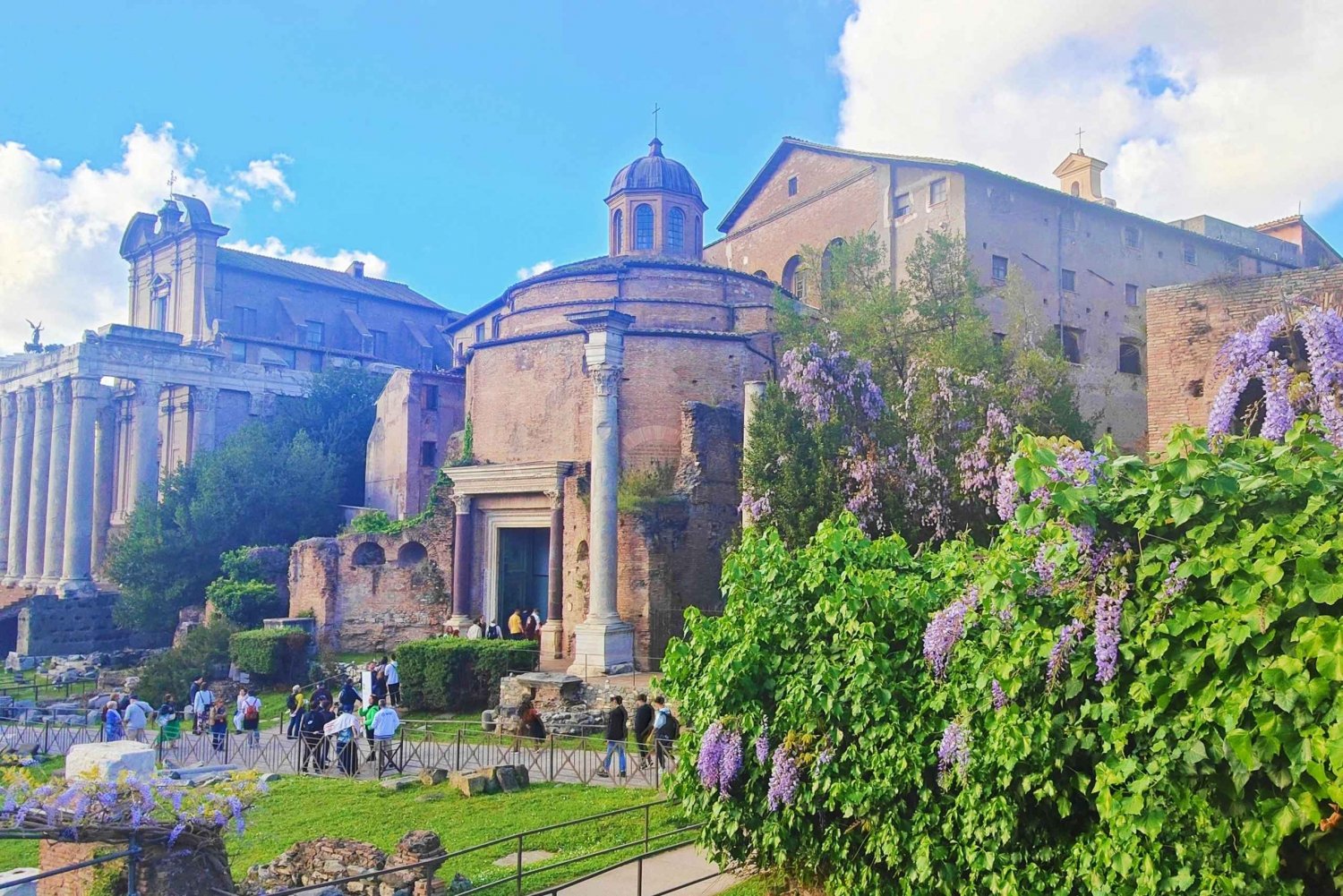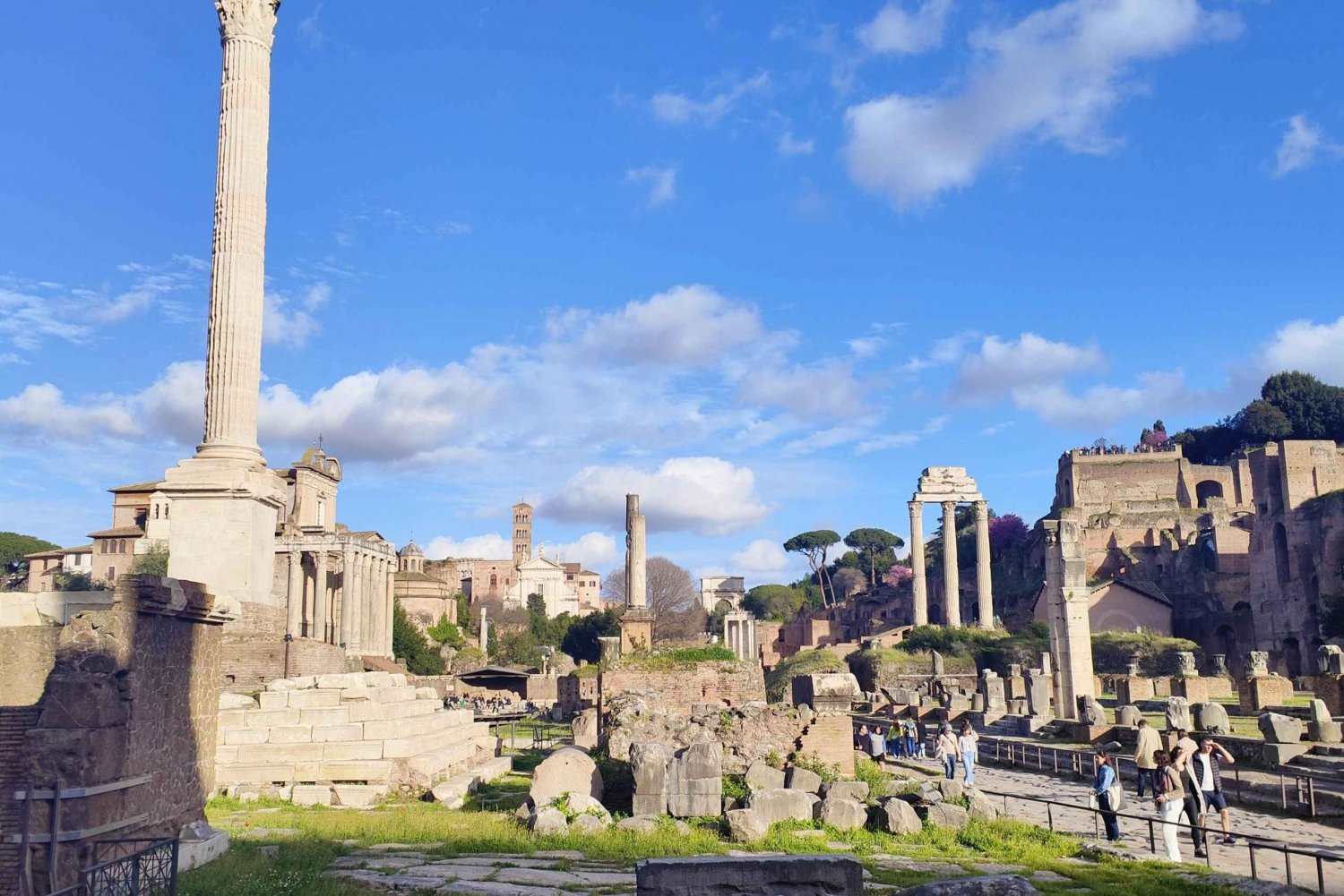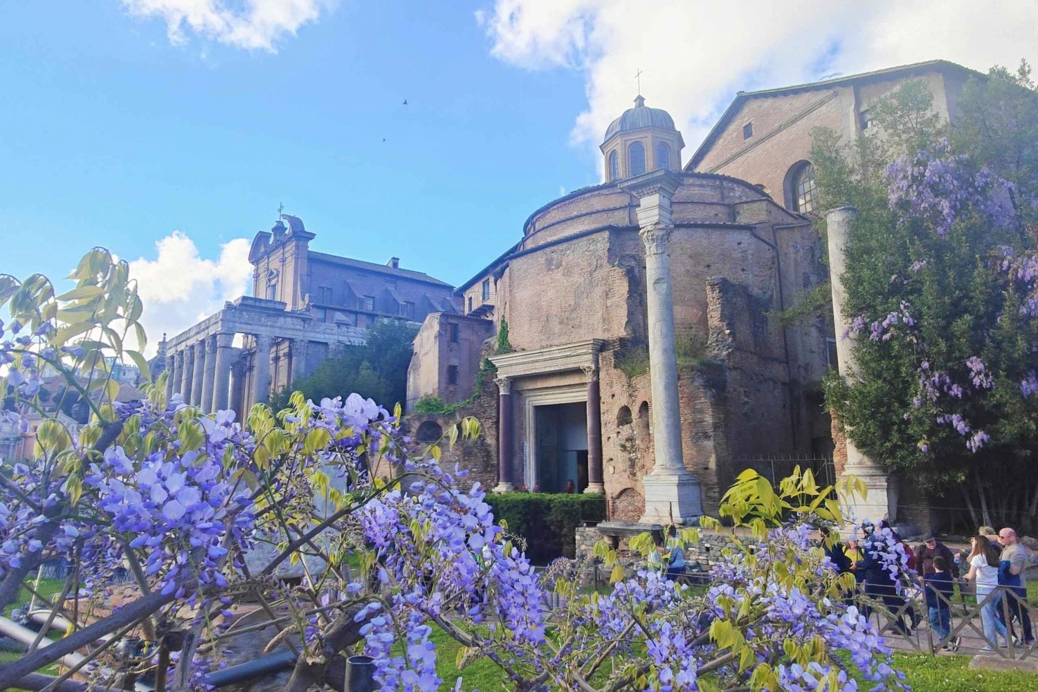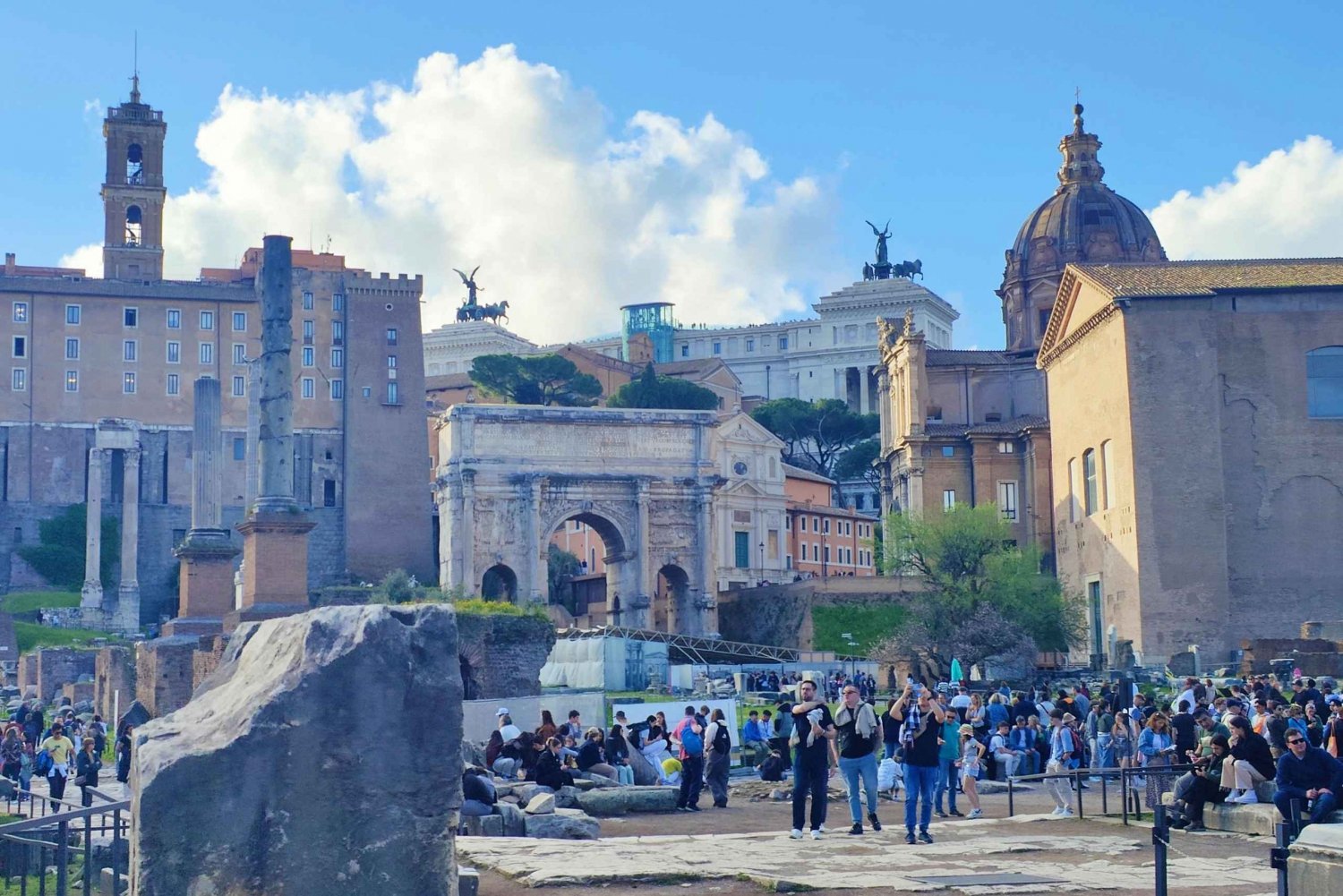 Rejoignez notre visite pour découvrir le Forum romain, qui était autrefois le lieu des processions triomphales et des élections, ainsi que le lieu des discours publics dans la Rome antique. Découvrez le temple de Romulus, une merveille architecturale située dans le Forum romain. Montez jusqu'au Palatin et admirez la vue imprenable sur les ruines depuis la colline. En entrant dans le Palatin, vous profiterez d'une vue imprenable sur les ruines des maisons des empereurs ainsi que sur les jardins Farnèse. Limité à 14 personnes, cette visite semi-privée vous garantit une attention personnalisée.Includes