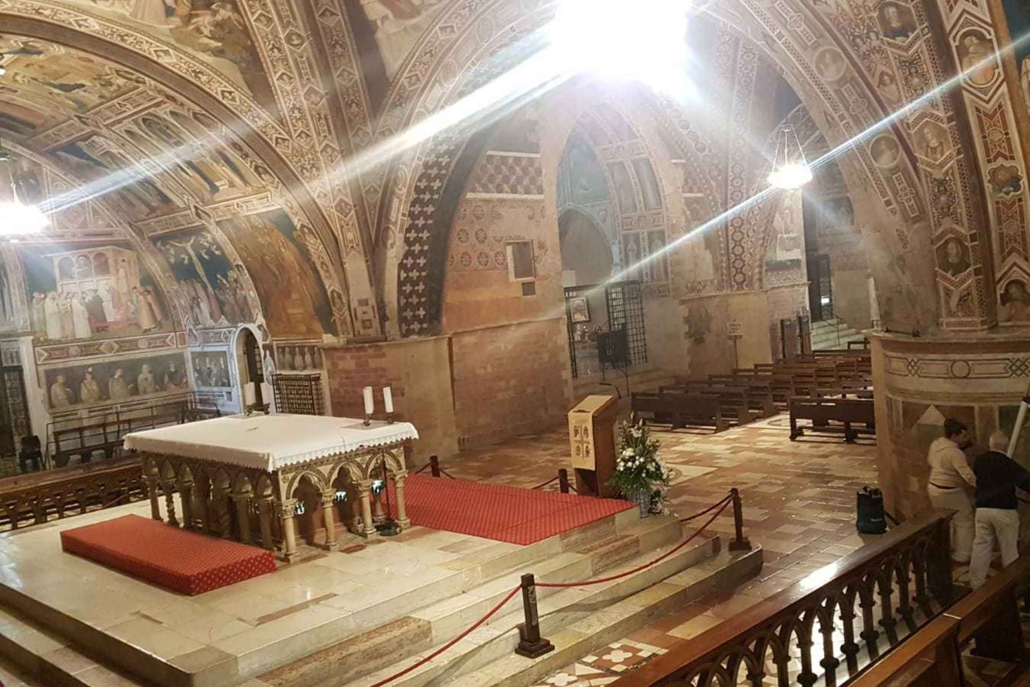 Fuggi dal trambusto di Roma per un giorno con un tour di un giorno in Umbria, una delle regioni più pittoresche d'Italia. Ricca di vigneti, ulivi e villaggi in cima alle colline, il sito più famoso della regione è la città di Assisi, patrimonio mondiale dell'umanità UNESCO. All'arrivo in questo luogo mistico, scoprirai la storia di San Francesco passeggiando tra le antiche mura. Costruite sulle verdi pendici del Monte Subasio, le case colorate in pietra color inchiostro, le strade strette, i balconi fioriti e i palazzi nobiliari offrono panorami meravigliosi. Il momento clou del tuo soggiorno ad Assisi sarà la visita alla Basilica di San Francesco per ammirare i capolavori rinascimentali di Giotto e Cimabue. Dopo pranzo, prosegui per Orvieto per ammirare la magnificenza della sua cattedrale, un capolavoro di architettura gotica con una facciata scintillante di vetrate, mosaici e sculture. Assapora il fascino di Orvieto e ammira le innumerevoli chiese sparse per il suo centro storico. Torna a Roma per il rientro in hotel in serata.Includes