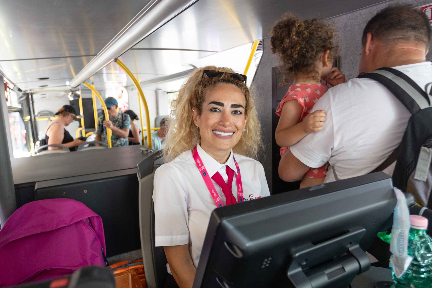 - Il servizio hop-on hop-off è disponibile solo per i percorsi specificati. Non puoi salire e scendere con il biglietto flessibile. Potrebbero esserci ritardi, riduzioni della frequenza e modifiche al percorso a causa del traffico o della chiusura delle strade. Gli autobus del percorso panoramico (autobus rosa) sono autobus a due piani scoperti con tetto rimovibile, quindi funzionano con qualsiasi condizione atmosferica. Le sedie a rotelle possono essere sistemate al piano inferiore. A bordo sono ammessi solo cani di piccola taglia in gabbia. Dai un'occhiata alle descrizioni delle opzioni del tour per informazioni specifiche su ogni tour in autobus.
