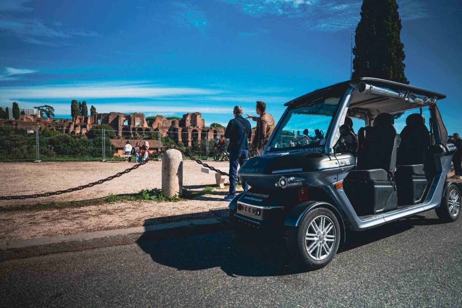 Scopri i punti salienti di Roma in poche ore con un tour in golf cart. Personalizza il tuo itinerario per vedere i luoghi che più ti interessano e ascolta la storia della città dalla tua guida. Incontra la tua guida e sali a bordo della tua golf cart. Parti alla scoperta della città, percorrendo le antiche strade romane. Esplora la Città Eterna, rinomata per la sua ricca storia e la sua atmosfera vibrante. Visita i monumenti più importanti della città o personalizza le tue preferenze per massimizzare il tuo tempo prezioso.Includes
