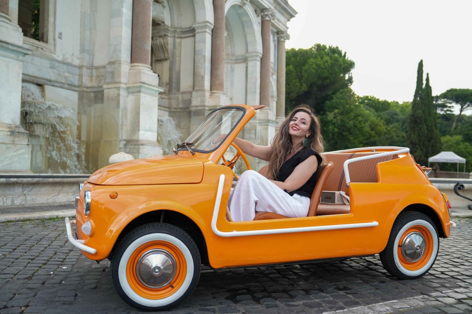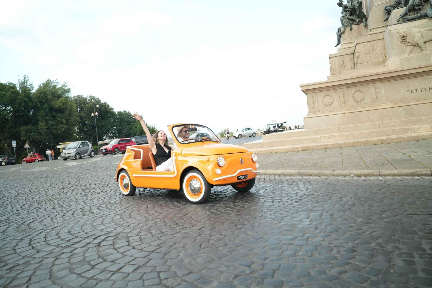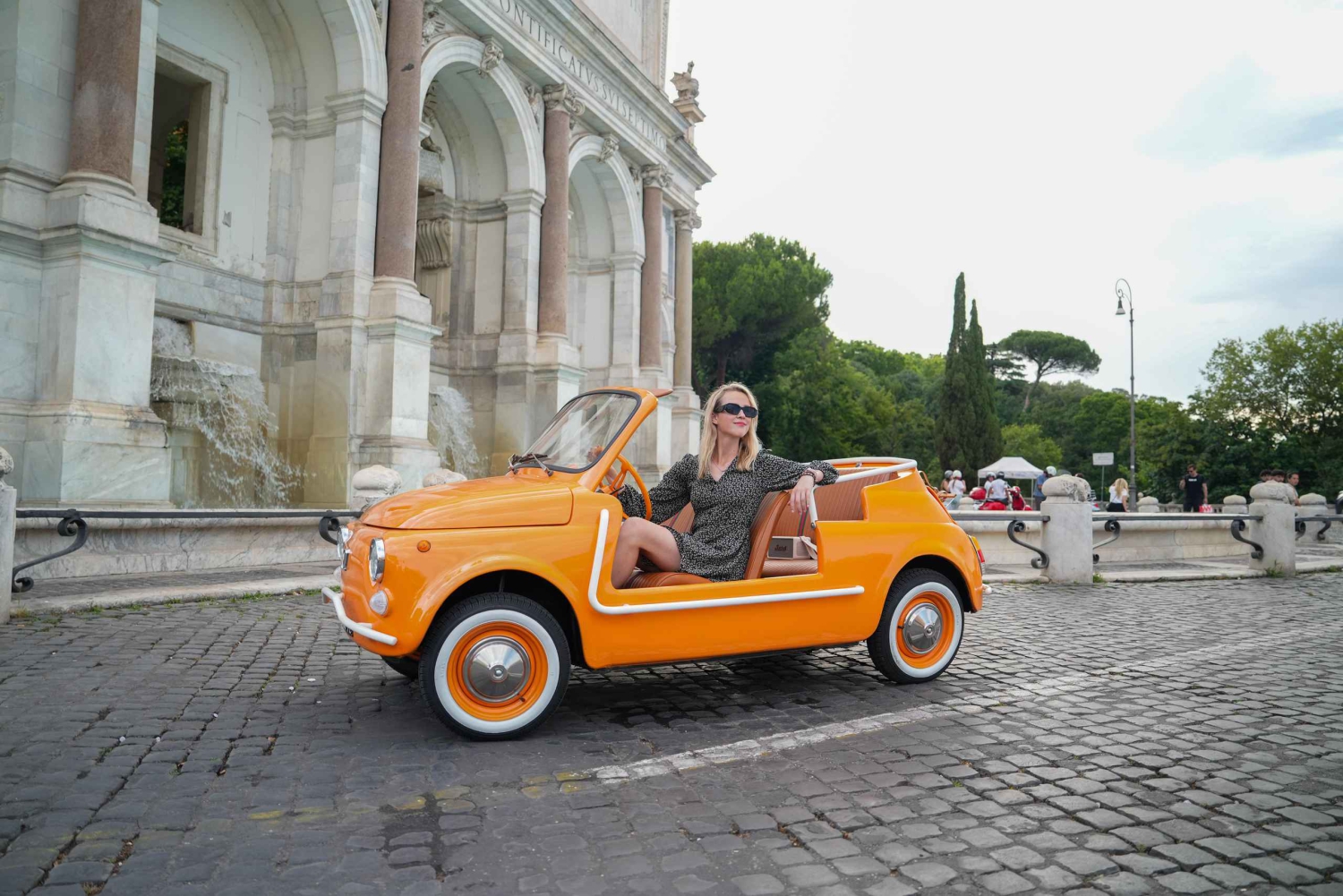 38 Reviewsユニークなラグジュアリーヴィンテージフィアット500カブリオレでローマを散策。3つの名所を訪れ、プロのフォトセッションをお楽しみください。永遠の都をスタイリッシュに駆け巡るあなたを、すべての視線が注ぎます。