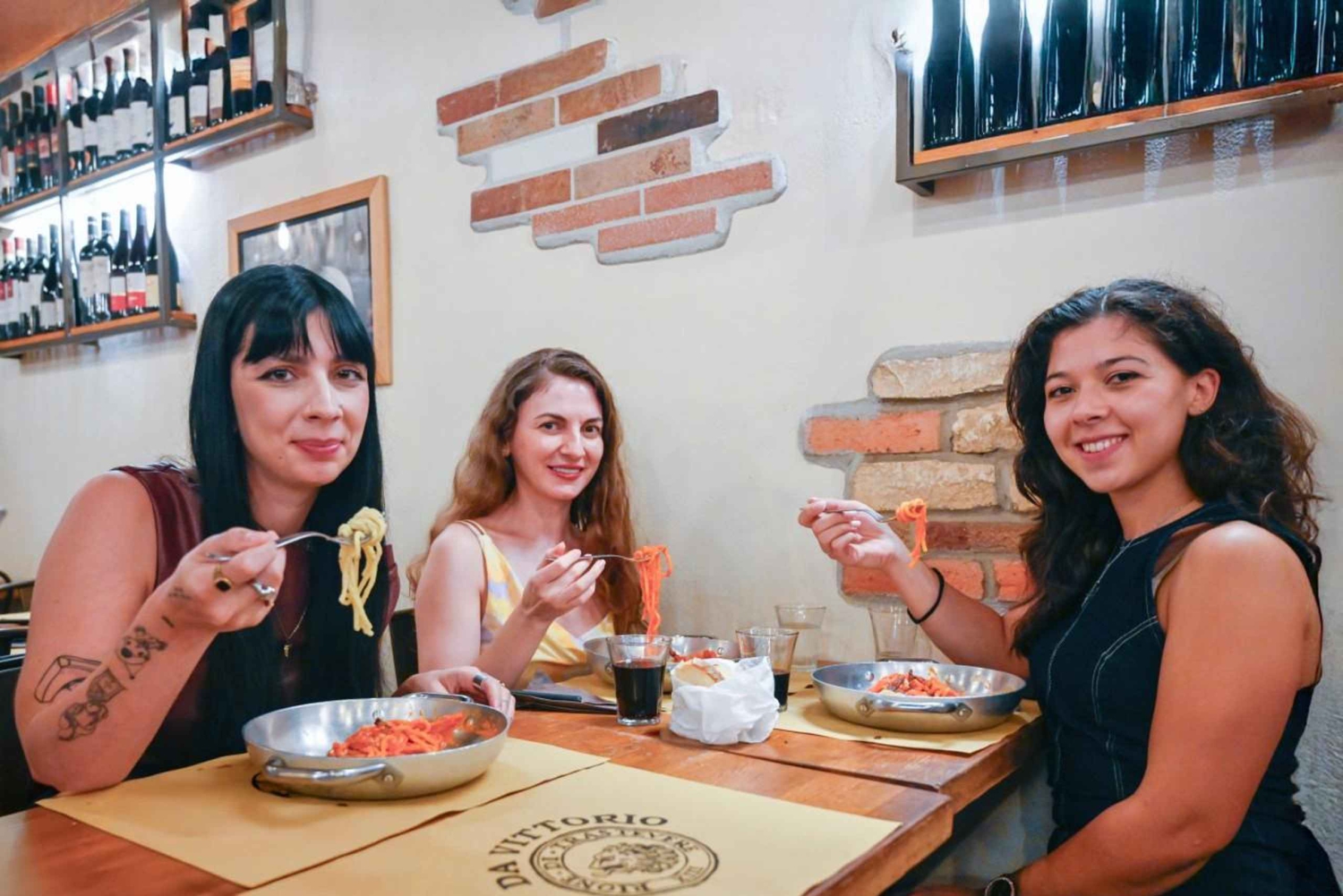 永遠の都ローマを味わい尽くしたいですか?私たちがお手伝いします!カンポ・デ・フィオーリと魅力的なトラステヴェレ地区を巡る3時間のウォーキングツアーに参加して、地元のグルメガイドと一緒にローマ料理の最高峰を探しましょう。 旅は本格的なイタリアのアペリティーボスタイルのセットアップから始まり、生ハム、サラミ、さまざまなチーズなどの地元のコールドカットを、最高級の地元産ワインとともに味わいます。1世紀以上にわたり地域社会に貢献してきたこの店は、その技術を誇ります。手間をかけずに、ただおいしい料理だけを提供します! 次に、ローマの最高のストリートフードを味わってみませんか?地元の人気料理、バッカラまたはスプリとも呼ばれる、サクサクでふわふわの揚げタラをお試しください(訪問した場所によって異なります)。本格的な店に立ち寄り、なぜこれらの手軽に食べられる軽食がローマ料理で愛されているのかを見ていきます。もちろん、あなたを放っておくわけにはいきませんし、また別の素晴らしいワインを試飲することもできます。 ツアーのハイライトの時間です! 本格的なローマ料理をご紹介します。ここでは、フレンドリーな地元のレストランに座ってリラックスしながら、ローマで人気のパスタ 2 種類と肉料理を試食します。すべて込みのおいしいワインでそれを流し込み、リラックスして、新しい料理好きの友人と一緒にローマ文化をさらに吸収してください。おいしいリモンチェッロで食事を締めくくります。 最後に、最後の立ち寄り先では、ローマで最高の職人技のジェラート店を訪れます。イタリア人はこの夜の儀式を一年中大切にしており、偽物ではなく本物のジェラートを見分ける秘訣をお教えします。Includes