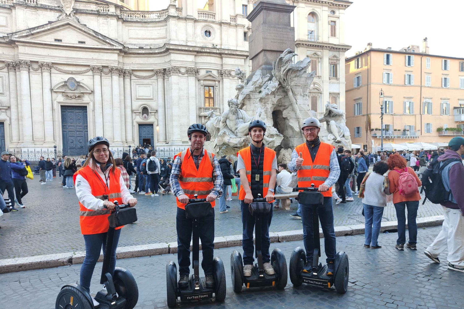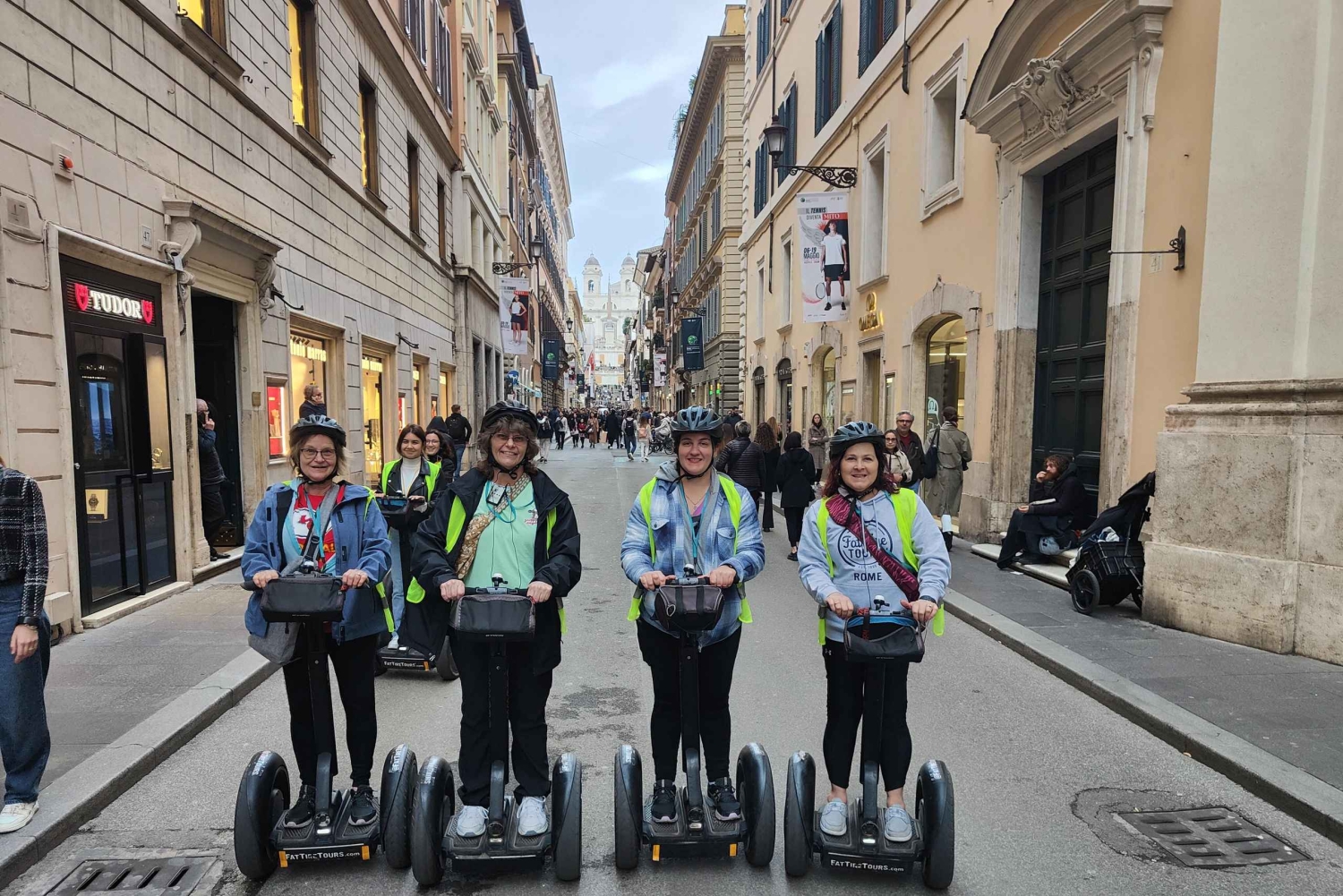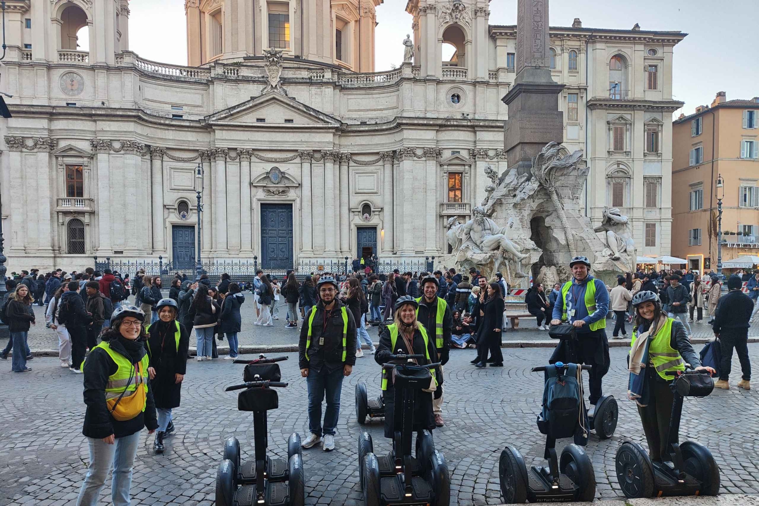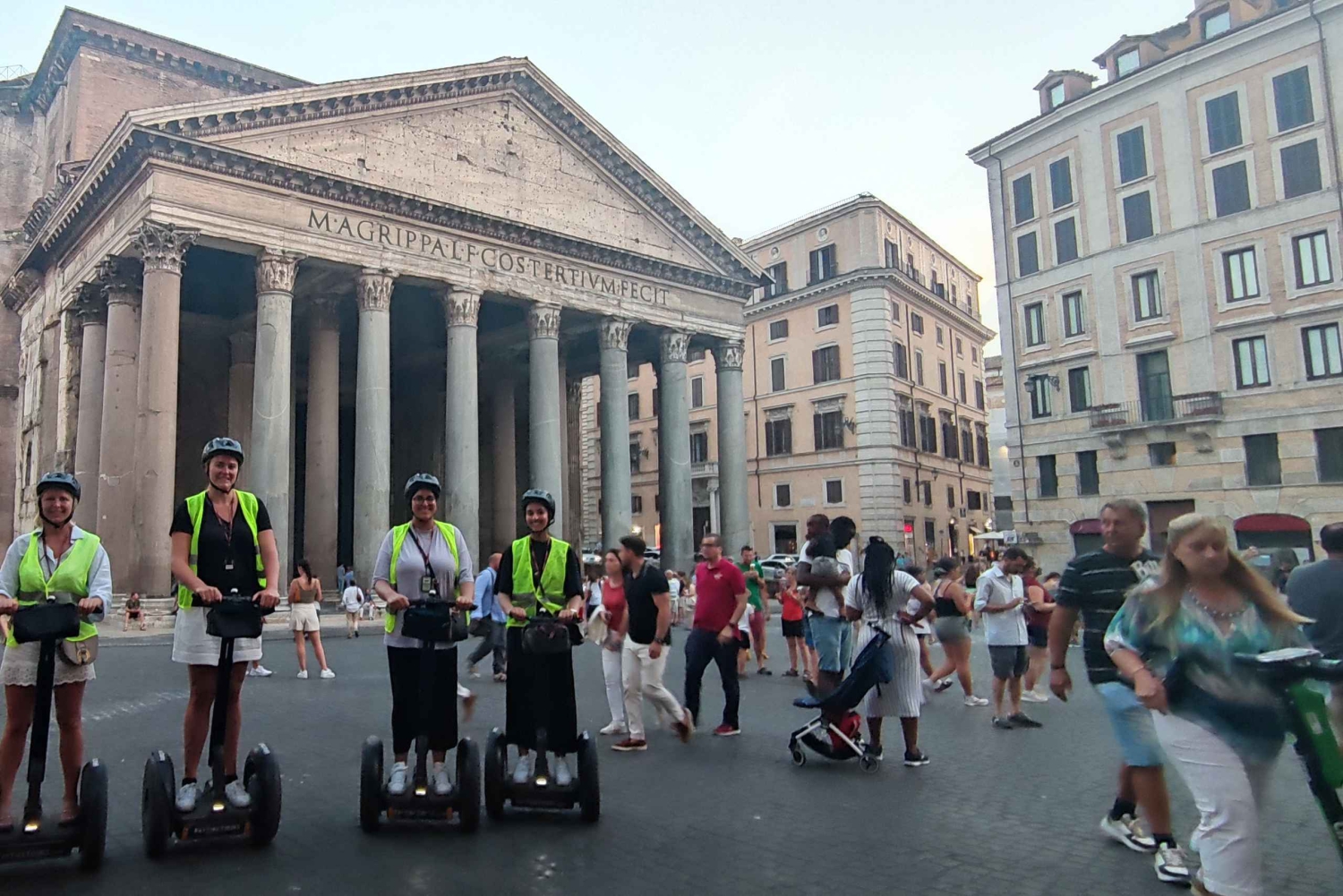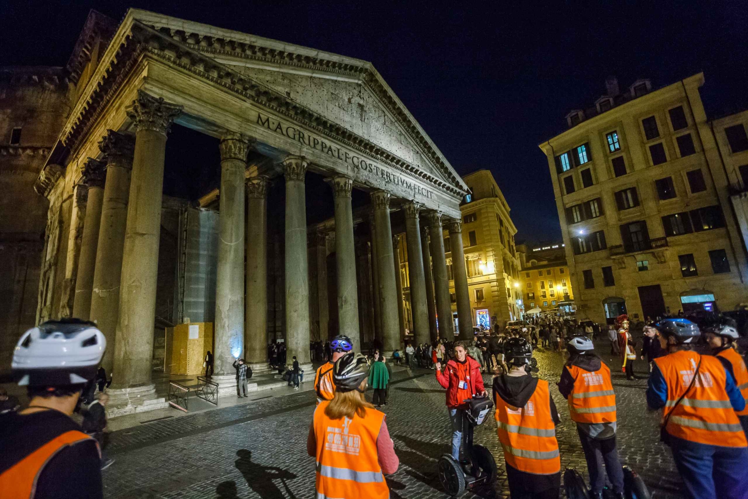 ローマの最も歴史的な名所を巡る2.5時間のセグウェイツアーで夜のローマを体験し、暗くなってからの「甘い生活」の伝染力に浸りましょう。 デルフィニ通りでセグウェイリーダーに会い、短いオリエンテーションセッションとブリーフィングを受けます。使いやすいセグウェイに慣れたら、最後の帝国のフォーラムであるトラヤヌスのフォルムから、ローマの伝説的な7つの丘の1つであるカンピドリオ(カピトリーノの丘)まで滑走します。 セグウェイリーダーがツアー中ずっとお世話をし、ローマの歴史と文化に関する興味深い話を聞かせてくれます。 ナヴォーナ広場に行き、ローマの最も激しいエネルギーを体験してください。その後、すべての神々の神殿であるハドリアヌス神殿とパンテオンを訪れてください。歴史的な路地に沿ってスペイン階段までクルーズします。最後の目的地はトレビの泉です。ここでコインを投げ入れて、いつかローマに戻ることを約束します。Includes