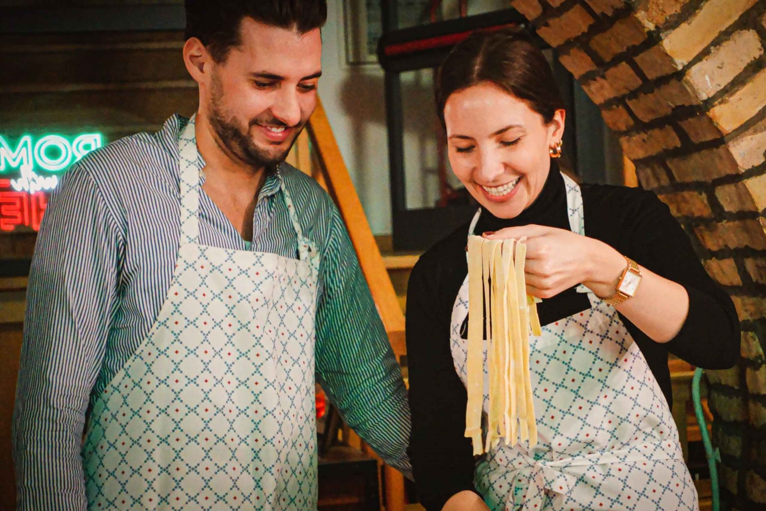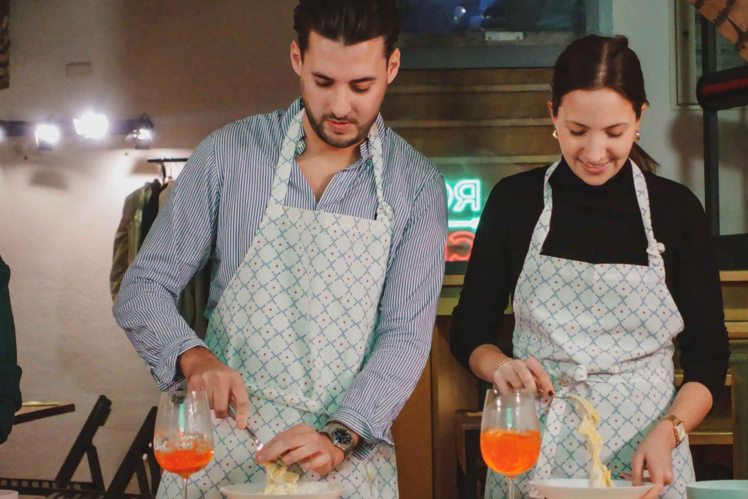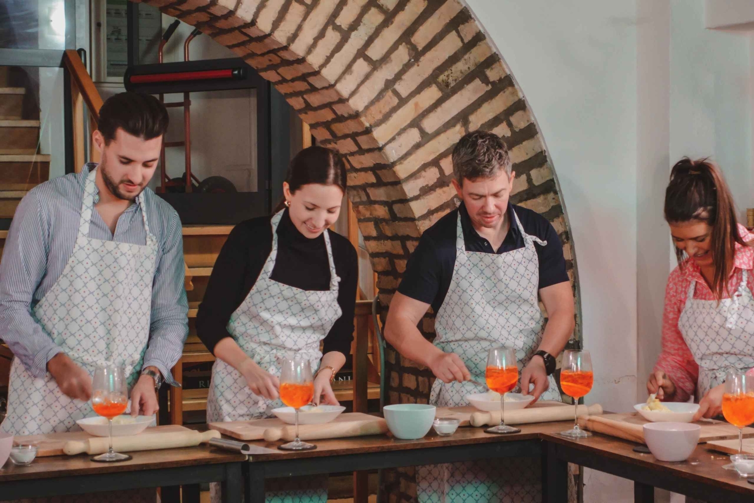 このような料理教室は、今までにない体験となるでしょう。永遠の都ローマで、3時間の楽しい時間、ドリンク、そして素晴らしい食事をお楽しみください。パートナーや友人との完璧な時間をお過ごしください。休暇を過ごすのにこれ以上の方法はありません! このクラスでは、イタリアの定番ドリンクである3種類のスプリッツと、伝統的なソースを使った手作りの生パスタの作り方を学びます。地元の熟練シェフがご案内する3時間の体験です。 まずは、クラスの皆さんとシェフと知り合うのに最適なドリンク、アペロール・スプリッツから始めましょう。皆様の準備が整いましたら、料理を始めます! 地元産の新鮮な食材を使って、フェットゥチーネを伸ばし、切り、調理します。また、究極のカルボナーラやカチョ・エ・ペペソースの作り方も学びます。料理をしている間、ヒューゴスプリッツもお楽しみいただけます。 すべての準備が整いましたら、シェフや新しい友人と一緒にお食事をお楽しみください。食後の締めくくりに、美味しいリモンチェッロ・スプリッツをどうぞ。 さあ、料理を始めましょう!Includes
