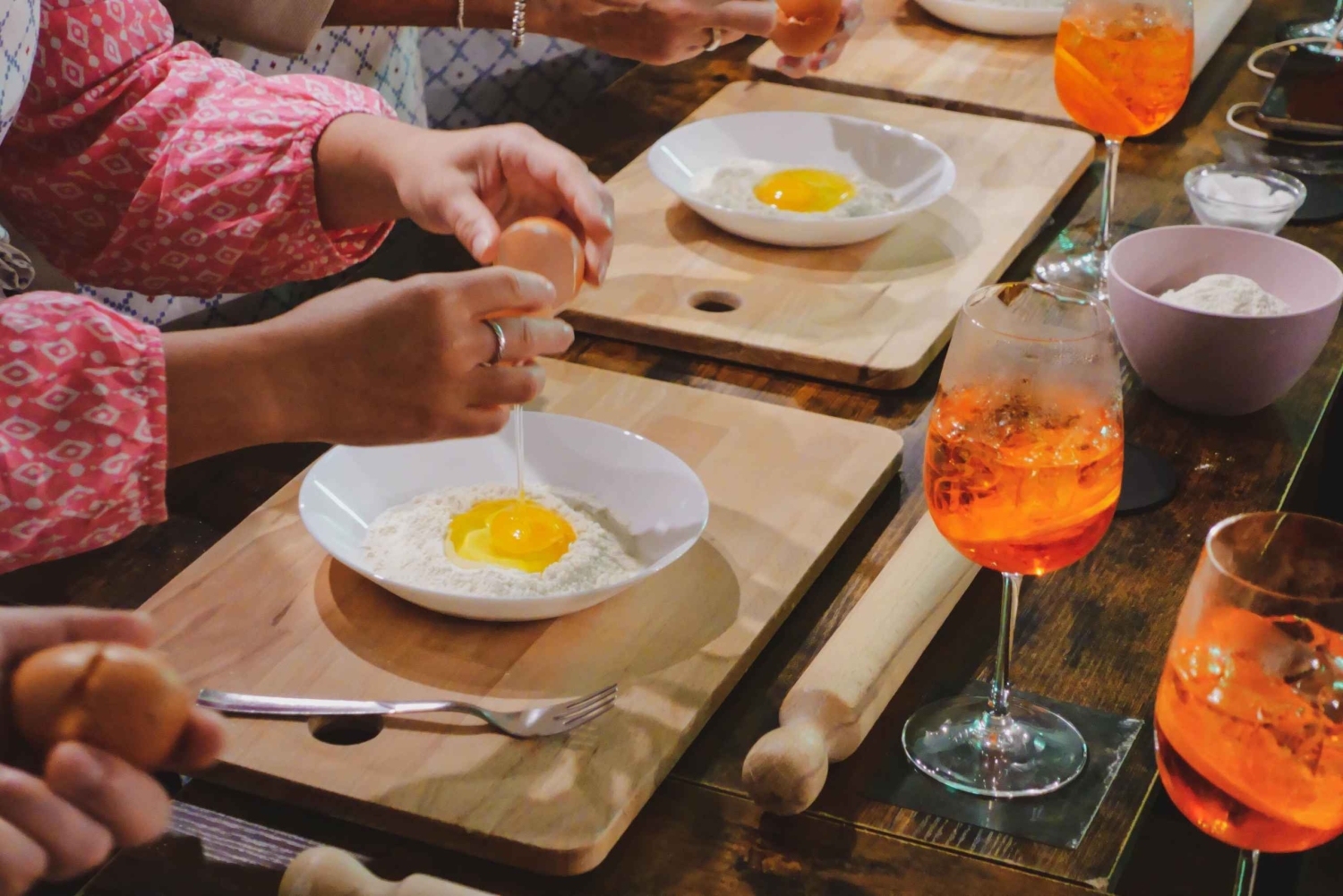 シェフ指導のスパークリングワインとパスタワークショップ 1 アペロール・スパークリングワイン 1 ユーゴ・スパークリングワイン 1 リモンチェッロ・スパークリングワイン 手作りパスタとソース(ベジタリアンオプションあり) ドリンク飲み放題(水・ソフトドリンク) 現地シェフ 持ち帰り用レシピ フレッシュな地元食材Important Information