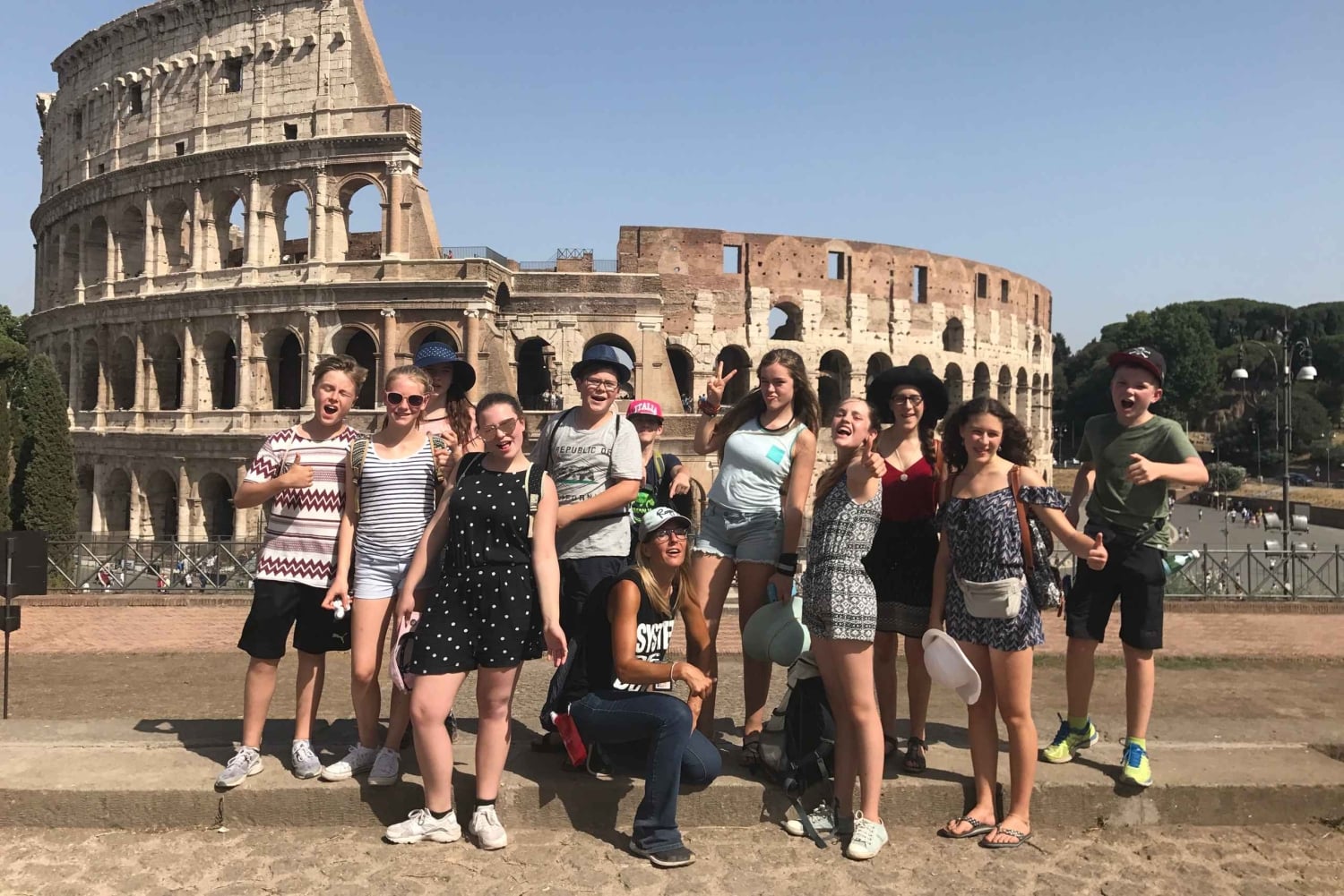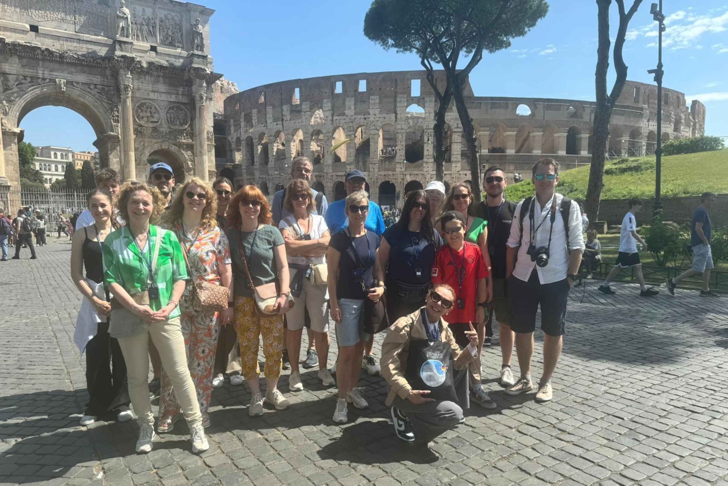 訓練を受けたドイツ人ガイドと一緒に古代ローマに旅して、物語を生き生きと体験しましょう。 ツアーはコロッセオとフォロ ロマーノの 2 つの部分から構成されています。コロッセオのツアーは約 1 時間半かかります。この時間には、剣闘士の生活、剣闘士の正体、競技場での日常生活、皇帝の秘密と権力争い、女性が 5 階に座らなければならなかった理由、独創的な建築、表面、巻き上げ技術などについて学ぶことができます。 次に、フォロ ロマーノを散策しながら、寺院、裁判所、商店を通り過ぎ、「ロムルスとレムス」の建国伝説を探索し、ジュリアス シーザーを本当に殺害したのは誰かを学びます。 ツアーが始まる前に、ツアー ガイドからヘッドセットが提供されます。これにより、混雑の中でも歩きながらすべての音が聞こえるようになります。コロッセオへの優先入場権を持つ少人数のグループで名所を体験し、不要な待ち時間を避けることができます。Includes