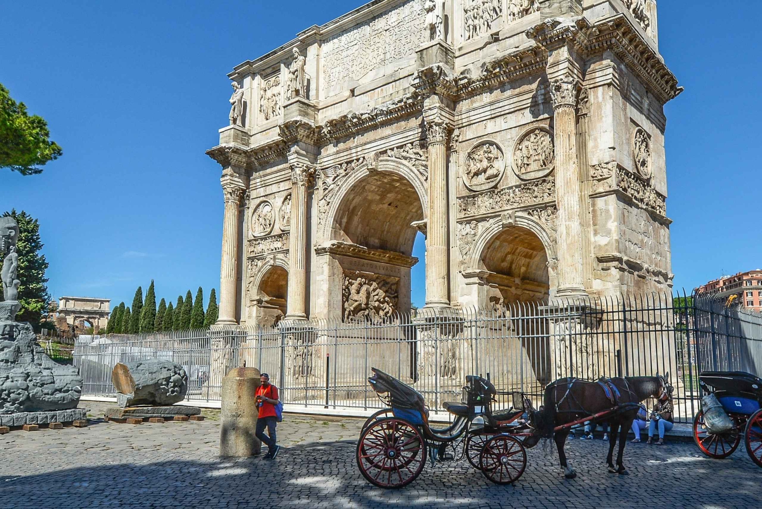 - このツアーは雨天決行です。 このツアーはコロッセオ、フォロ・ロマーノ、トラヤヌスの市場の外で行われます。入場券は含まれておりません。