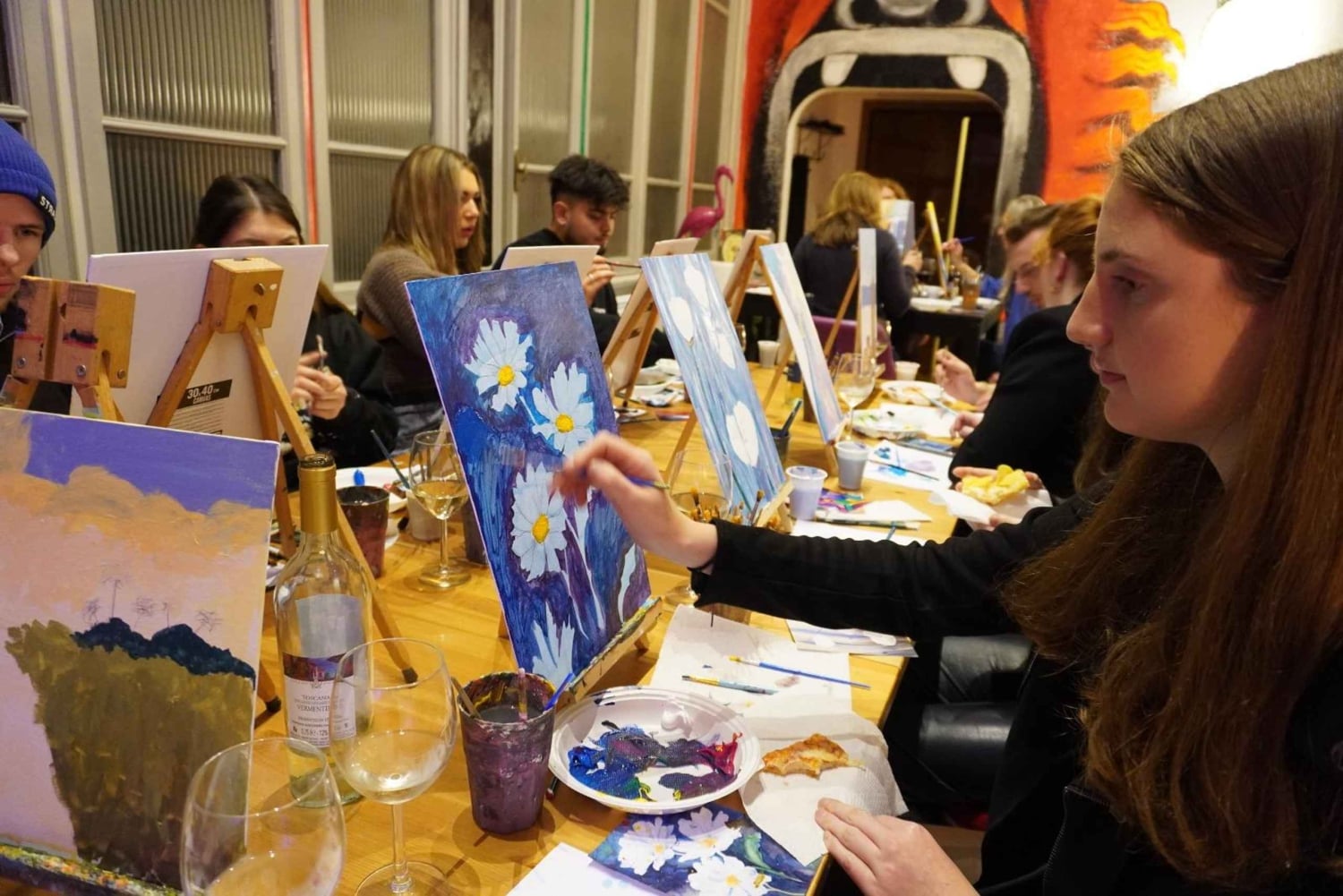 ローマでユニークでリラックスできるアクティビティをお探しですか?歴史的な市内中心部のナヴォーナ広場からすぐ近くにある、魅力的な17世紀のアートスタジオで、ペイント&シップ体験にご参加ください。 このペイント&シップ体験は、高級な芸術ではなく、楽しさ、自由、そしてつながりを求めるものです。グラスにイタリアワインを無制限に注ぎ、テーブルには本場のローマ風ピザを並べ、目の前に白いキャンバスを置いて、創造性を解き放つ夜をお楽しみください。地元のプロのアーティストが簡単なヒントを提供しながらセッションをご案内いたしますが、本当の目的はリラックスし、笑い、楽しむことです。 お一人でも、パートナーやお友達と一緒でも、この体験は人々を結びつけるためにデザインされています。筆を運び、ワインを飲み、ピザを食べながら、永遠の都でゆっくりと楽しむ喜びを発見していただけます。 夜が明けると、カラフルな傑作だけでなく、忘れられない思い出や新しい友達も手に入れて帰ることができます。Includes
