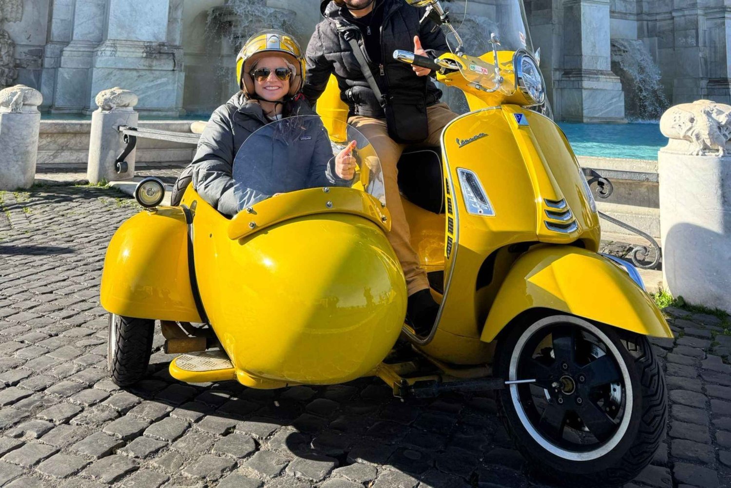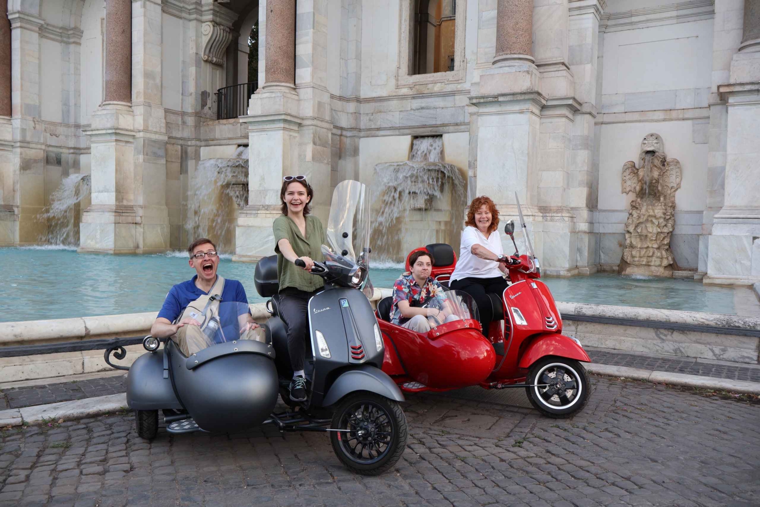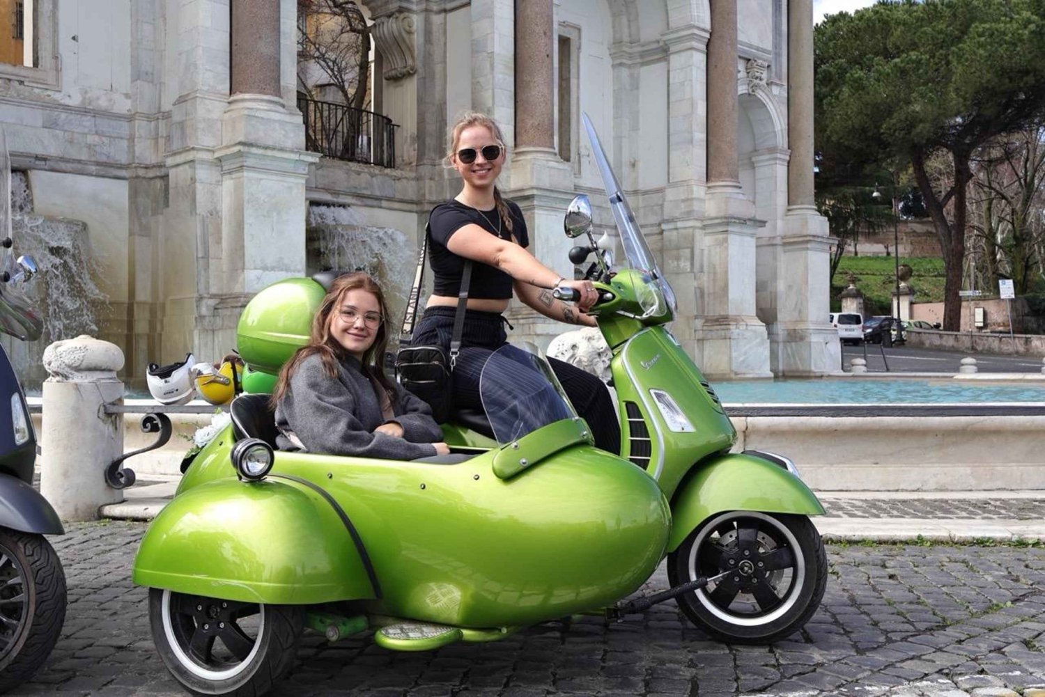 ベスパ・サイドカー・ツアーで、ユニークで爽快なローマを探索しましょう。個人にもグループにも最適なこの3時間のガイド付きツアーは、永遠の都の通りをスリル満点に駆け抜けながら、ローマを代表するランドマークを巡ります。 ローマを代表するランドマーク、コロッセオから冒険を始めましょう。この古代円形闘技場の壮大さに驚嘆しながら15分間を過ごし、専門ガイドが剣闘士競技やローマ工学に関する魅力的な歴史的洞察を語ります。 次にヴェネチア広場に向かうと、堂々としたヴィクトル・エマニュエル2世記念碑が迎えてくれます。この壮大な広場の歴史的意義とイタリア現代史における役割について学びましょう。 古代ローマ建築の見事な例であるパンテオンへ。保存状態の良いこの寺院を15分かけて見学し、知識豊富なガイドからその豊かな歴史を学びます。 次にスペイン階段では、絵のように美しいローマの景色をお楽しみいただけます。15分間くつろぎながら、この人気の待ち合わせスポットの歴史的、文化的意義について学びましょう。 サンタンジェロ城もツアーで必見のランドマークです。このそびえ立つ円筒形の建物は、霊廟から要塞まで、歴史を通じて様々な役割を果たしてきました。ここで15分間、歴史に浸り、テヴェレ川の眺めを楽しんでください。 バチカン市国のサン・ピエトロ広場に立ち寄らずしてローマ観光は終われません。ガイドがサン・ピエトロ大聖堂の建築のすばらしさやバチカンの歴史について15分間の停車中に解説します。 ツアーの最後には、イル・フォンタノーネ(Il Fontanone)としても知られるフォンタナ・デル・アクア・パオラ(Fontana dell'Acqua Paola)を訪れます。この美しいバロック様式の噴水からはローマを一望でき、ベスパの冒険を締めくくるのにぴったりのスポットです。Includes