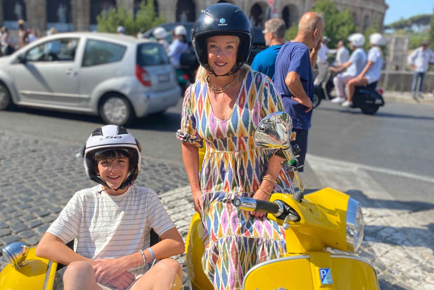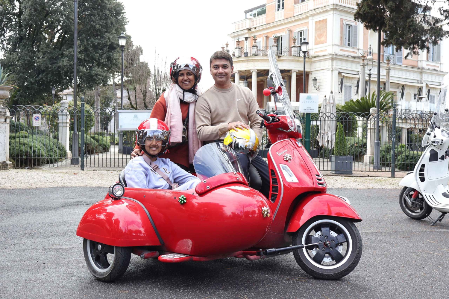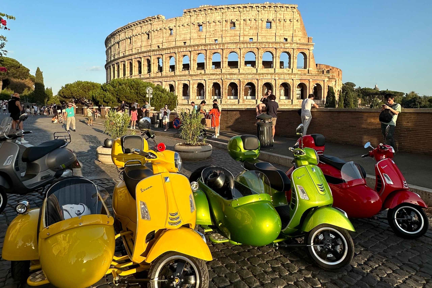 - 天気予報を確認し、適切な服装をする 安全な体験のためにガイドの指示に従ってください。 ベスパは2人乗りです。1人はサイドカーに、もう1人はドライバーの後ろに乗ります。