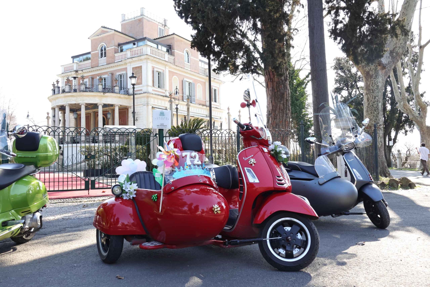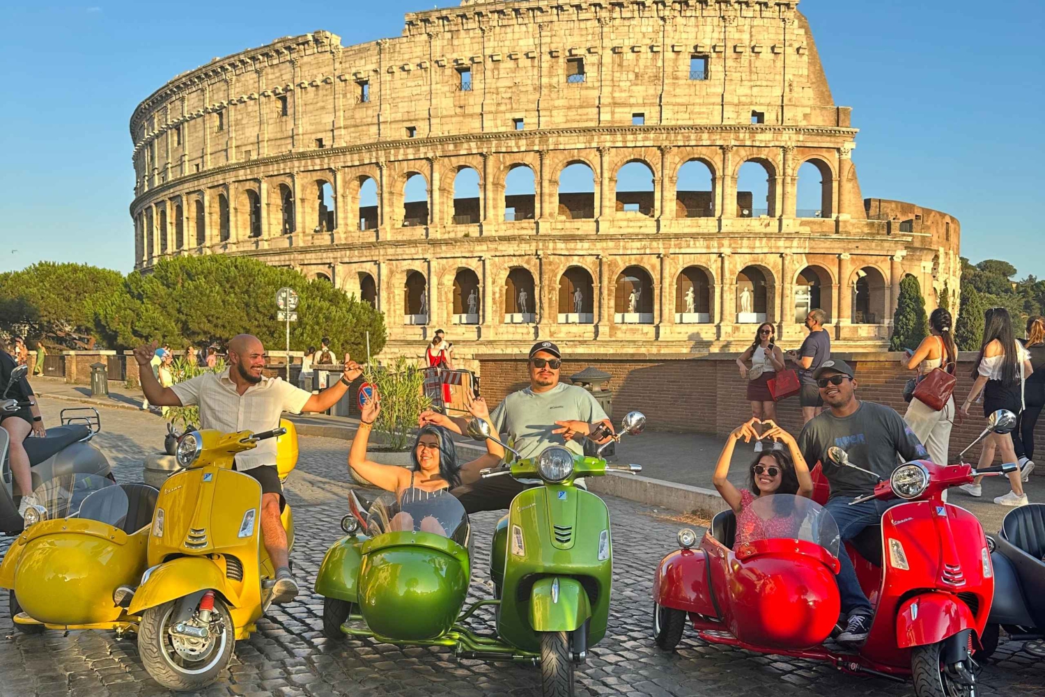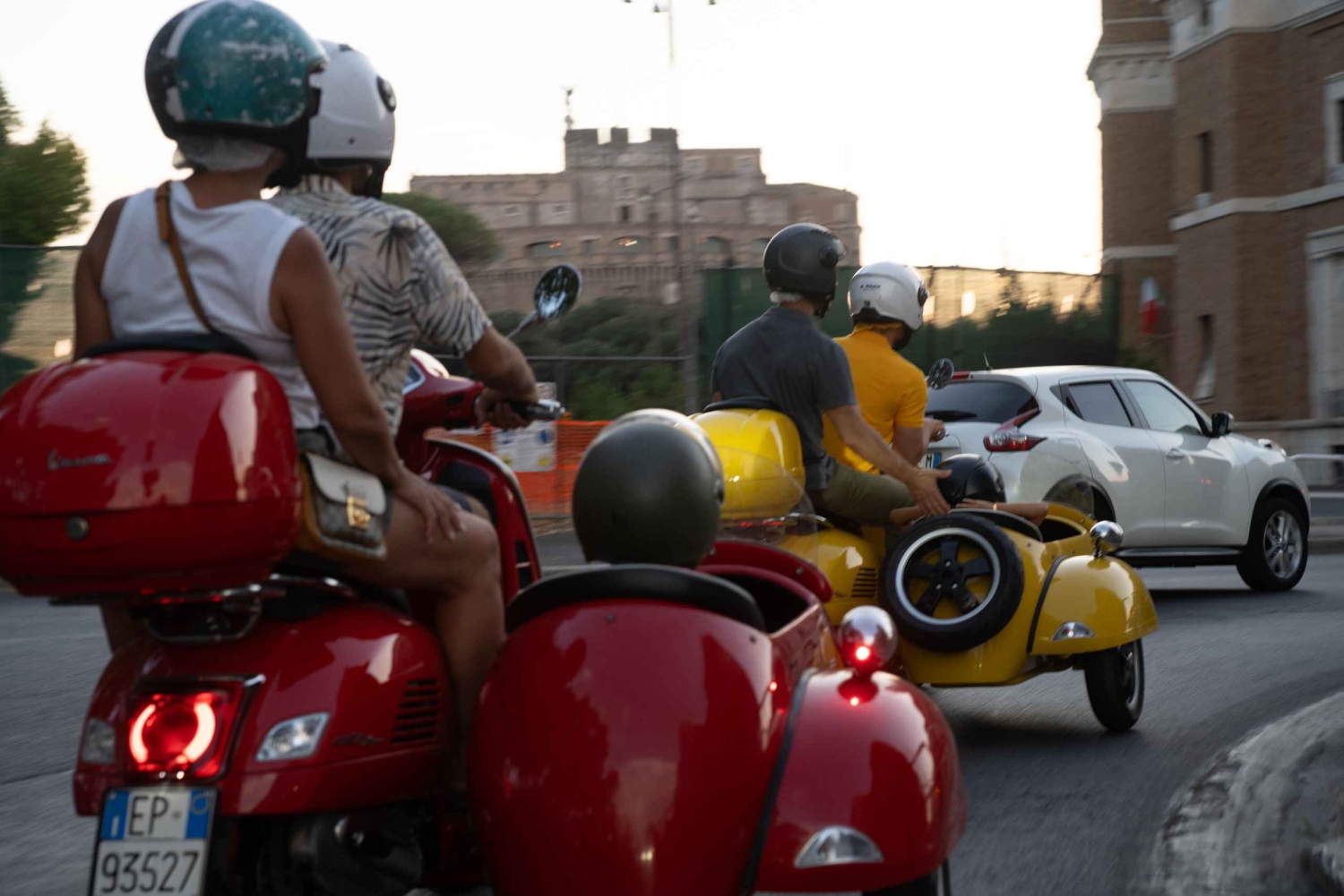 - 天気予報を確認し、適切な服装をする 安全な体験のためにガイドの指示に従ってください。 ベスパは2人乗りです。1人はサイドカーに、もう1人はドライバーの後ろに乗ります。