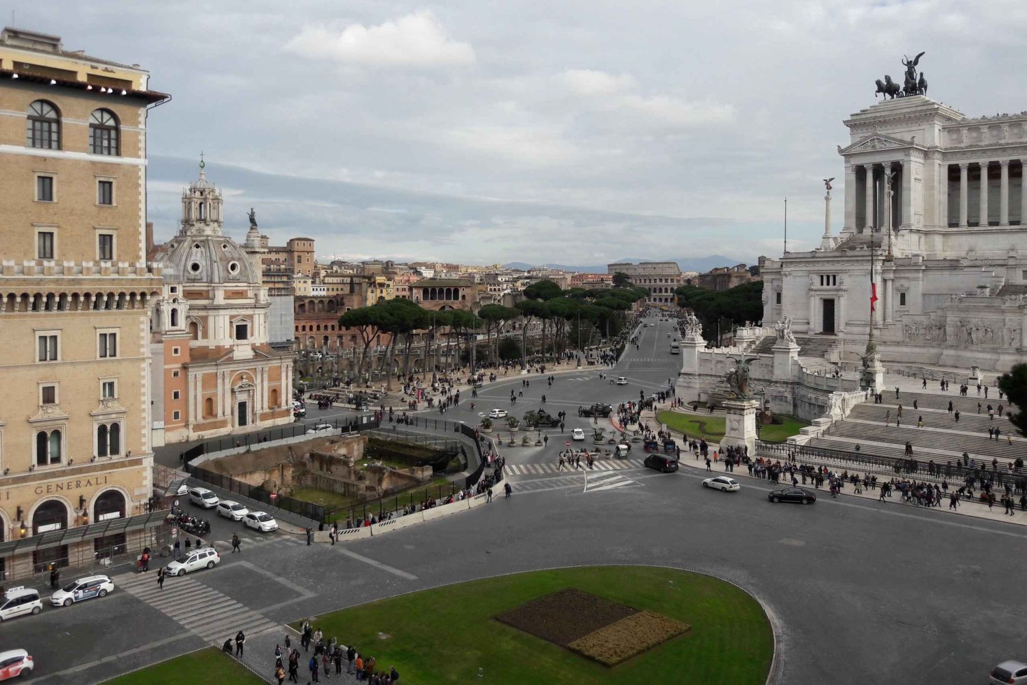 ヴェネツィア広場の近くで待ち合わせ、私たちは訪問者が気づかないことが多い第二次世界大戦時代の痕跡を探ります。ローマは20年間ファシズムの首都であり、9か月間ナチスに占領され、最終的に1944年6月に連合軍によって解放されました。ローマ中心部のウォーキングツアーでは、市内の多くの有名な場所で起こった歴史的出来事を説明し、その時代の記念碑が目立たない場所に隠れていることがよくあることを紹介します。ツアーはトラヤヌスの記念柱から始まり、すぐにヴェネツィア広場に移動します。ここはファシストイタリアの中心地であり、有名なバルコニーからムッソリーニが下の広場に集まった何千人もの信者に演説した場所です。次に古代ローマのフォーラムに移動します。ここでは、ムッソリーニの古代ローマへの執着が街に与えた影響を今でも見ることができます。ユダヤ人ゲットーに進み、ローマのユダヤ人コミュニティの歴史について話し、そこからナヴォーナ広場を通ってテヴェレ川まで移動し、ファシスト時代と戦争中の教会とその立場について話します。最後に、1944 年 6 月、ナチスが街から逃げ出し、アメリカ第 5 軍が街に侵入し、大衆の歓喜が巻き起こった日を思い出します。Includes
