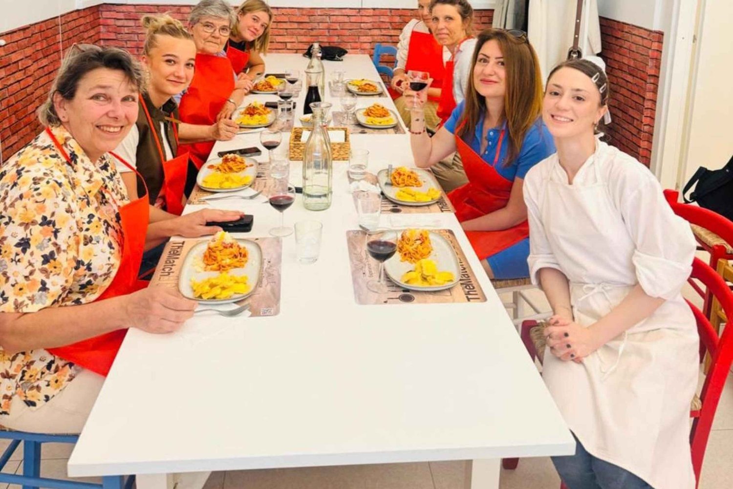 パンテオンやヴェネツィア広場から徒歩わずか数分の「永遠の都」ローマの中心部にある歴史的なパラッツォ・グラツィオーリ内で、ローマで最高の生パスタスクールで文化、味、そして陽気さを組み合わせたユニークな体験がお待ちしております。 プロのインストラクターの案内で、本物のイタリア料理の世界にご入っていただけます。この体験は、パスタ作りの芸術に浸るための魅力的なイントロダクションから始まり、すぐにラビオリ、トルテッリ、フェットチーネの伝統的な準備の実践的な練習に移ります。生パスタをこねたり、伸ばしたり、形を整えたりする主役はあなたです。 各参加者は自分でパスタを作り、本物のイタリアの家庭のように、同じ鍋で一緒に調理していただきます。数時間かけて煮込んだ特製トマトソースを使い、インストラクターが目の前でラビオリとトルテッリ用の繊細なバターとセージのソースを準備する様子をご覧いただけます。 これは単なる料理教室ではありません。理論、伝統、創造性が織り成す旅です。3時間の体験は、みんなで大きな共用テーブルに集まって、自分たちが作った料理を味わい、本物のイタリアの家族のように話をしたり笑ったりすることで最高潮に達します。 私たちの農場「Dalle Nostre Mani」で生産されたオーガニックのトスカーナワインを飲みながら、他の参加者とおしゃべりをし、温かいイタリアの雰囲気をお楽しみください。デザートと伝統的なリモンチェッロショットで、料理の冒険を締めくくってください。 詳細なレシピブックレット(英語)をお持ち帰りいただけますので、ご自宅のキッチンでもこの本格的な体験を再現していただけます。 魅力的なガッタ通りに位置する私たちの入口は、グラツィオーリ宮殿の裏手にあります。ここでは、この魅力的なローマの通りの名前の由来となった伝説の大理石の猫の像という隠れた宝石をご覧いただけます。 ローマの最も愛される宝物のひとつ、料理を通じてローマを知りたい個人、カップル、友人グループ、家族、学生、企業チームの皆様に、楽しく魅力的な体験をお楽しみいただけます。Includes