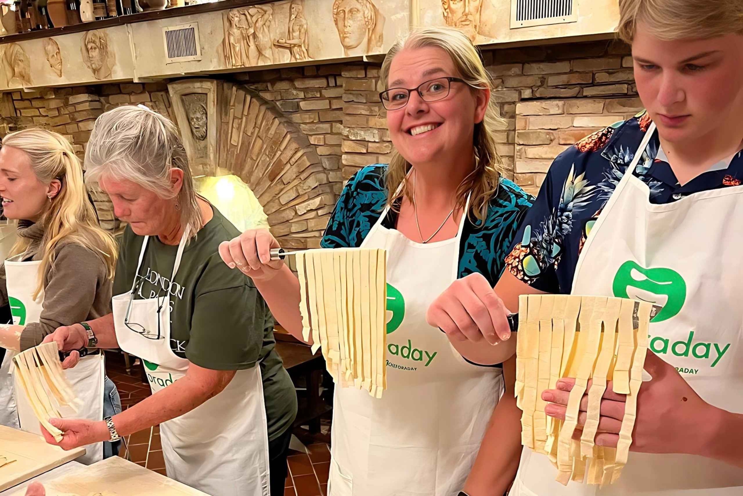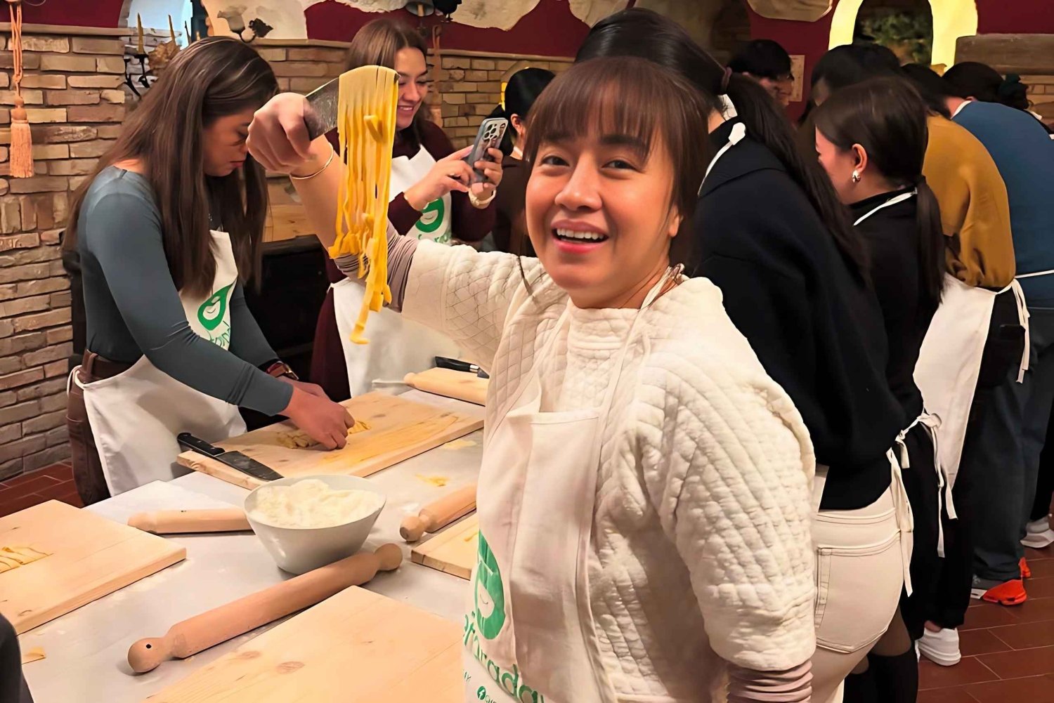 Doe mee met CHEFORADAY voor een hands-on Italiaanse culinaire ervaring op een steenworp afstand van de iconische Spaanse Trappen! Onder deskundige begeleiding leer je hoe je een eenvoudig ei en een handvol bloem kunt omzetten in perfecte fettuccine pasta, waarbij je alleen je handen gebruikt. Met verse ingrediënten, liefde en een passie voor lekker eten ontdek je ook de geschiedenis achter enkele van de beroemdste gerechten van Italië. Dompel jezelf onder in traditie in een van onze restaurants met airconditioning, waar originele 19e-eeuwse muurschilderingen je terugvoeren in de tijd. Leer de kunst van het maken van authentieke tiramisu om thuis indruk te maken op je vrienden en familie. Ontmoet nieuwe mensen, maak plezier en geniet van een heerlijke maaltijd en een dessert dat helemaal door jou is gemaakt, vergezeld van een glas wijn. Sluit je ervaring af met een verfrissende limoncello en neem een prijscertificaat mee naar huis als aandenken aan je onvergetelijke tijd bij ons!Includes