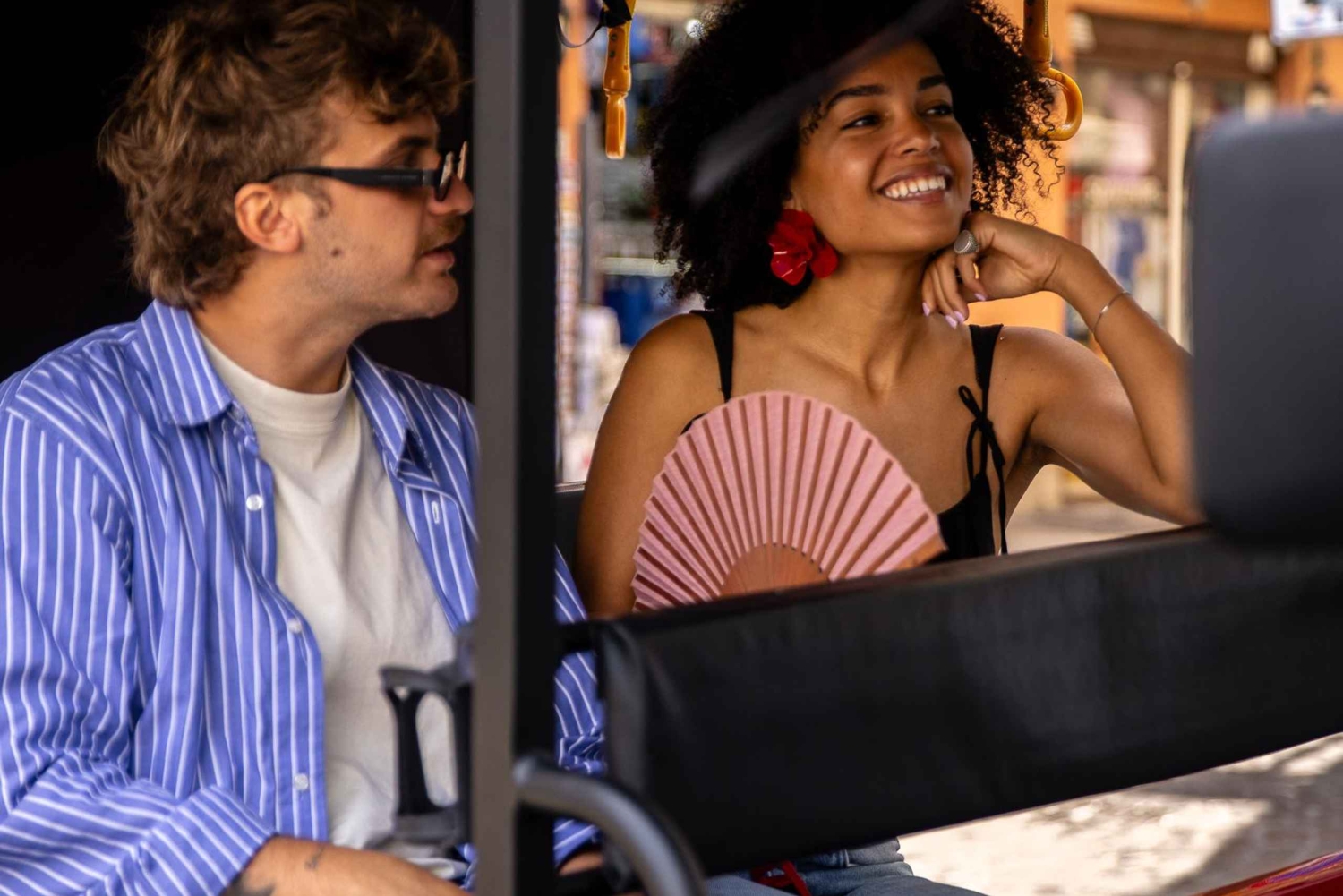 Oppdag den evige stad i dybden på en heldagstur (8 timer) med elektrisk E-Tuk, utformet for å tilby en komplett og oppslukende opplevelse av Roma på én dag. Denne turen kombinerer byens mest kjente landemerker med historiske nabolag og mindre kjente høydepunkter, og følger en jevn, gatevennlig reiserute med minimal gange og et avslappet tempo. Reis komfortabelt om bord på en elektrisk E-Tuk, ideell for å navigere i Romas smale gater mens du nyter detaljerte kommentarer og hyppige fotostopper. Start i de elegante omgivelsene til Piazza di Spagna og den ikoniske Trevi-fontenen, og fortsett deretter gjennom byens kunstneriske hjerte på Piazza Navona og det tidløse Pantheon. Utforsk den livlige atmosfæren i Campo de' Fiori og den historiske karakteren til den jødiske gettoen, før du passerer gjennom de monumentale områdene i det keiserlige Fora og Piazza Venezia. Beundre utsikten over Colosseum og Palatinerhøyden, og oppdag hvor Romas historie tok form. Reisen inkluderer også skjulte perler som det fantastiske interiøret i kirken Sant'Ignazio di Loyola, og avsluttes i de storslåtte omgivelsene på Piazza del Popolo. Med tid til å ta en pause, utforske og nyte byen, tilbyr denne heldagsturen en raffinert og komplett måte å oppleve Roma på i løpet av én ufortglemmelig dag.Includes